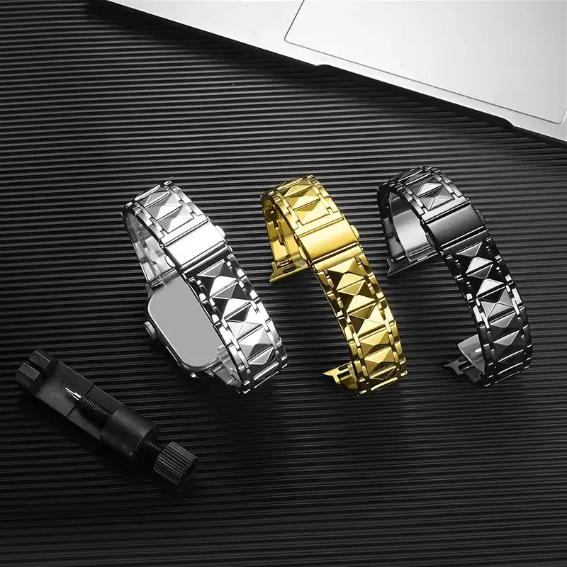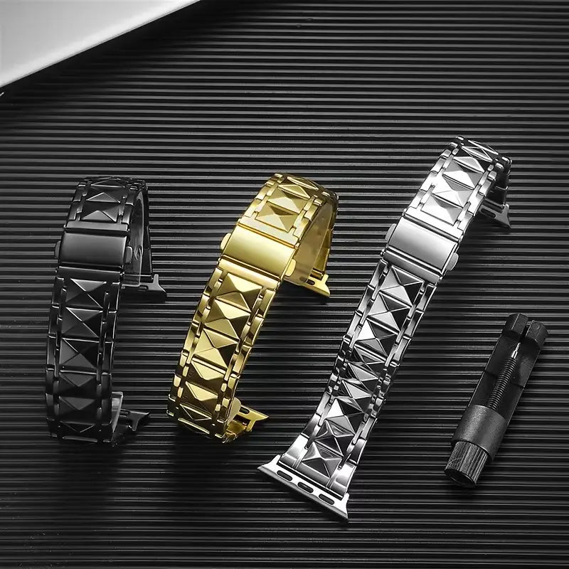 The Titan Edge Watch Strap is built for bold, modern style with uncompromising strength. Featuring a precision-crafted metal design with sharp geometric detailing, this strap delivers a powerful, industrial aesthetic that elevates any timepiece.