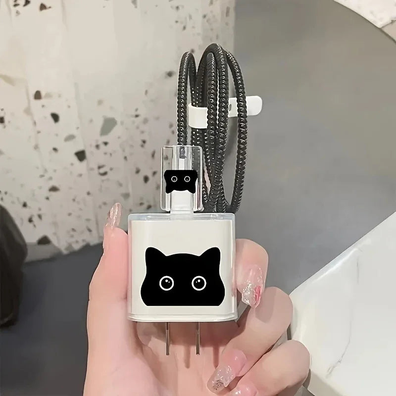 Keep your charging setup sleek and stylish with this minimal character adapter kit. Designed in a monochrome color palette with a cute, simple face detail, it blends playful charm with a clean, modern aesthetic.
