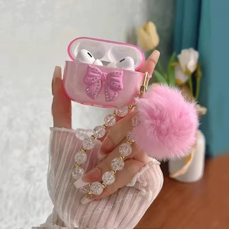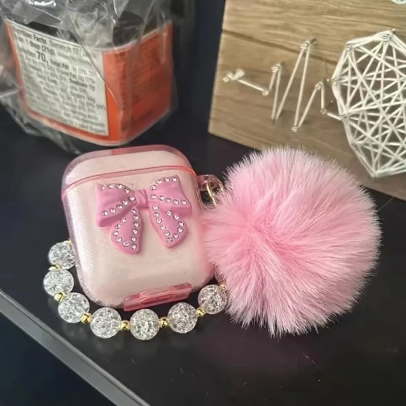 Step into your soft glam era with the Princess Pom Puff Ribbon Case. Designed in a dreamy blush pink, this enchanting AirPods case features a sparkling rhinestone bow centerpiece that radiates princess energy.