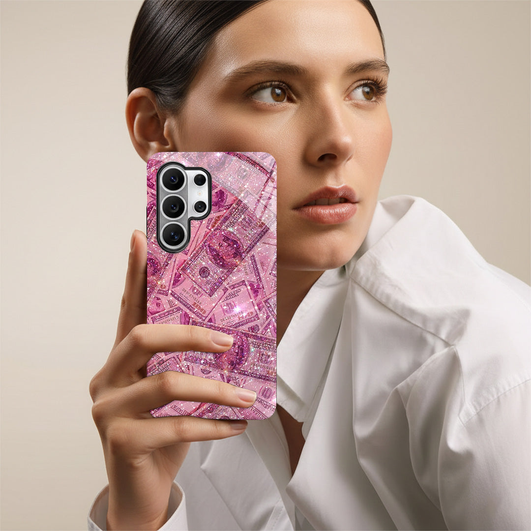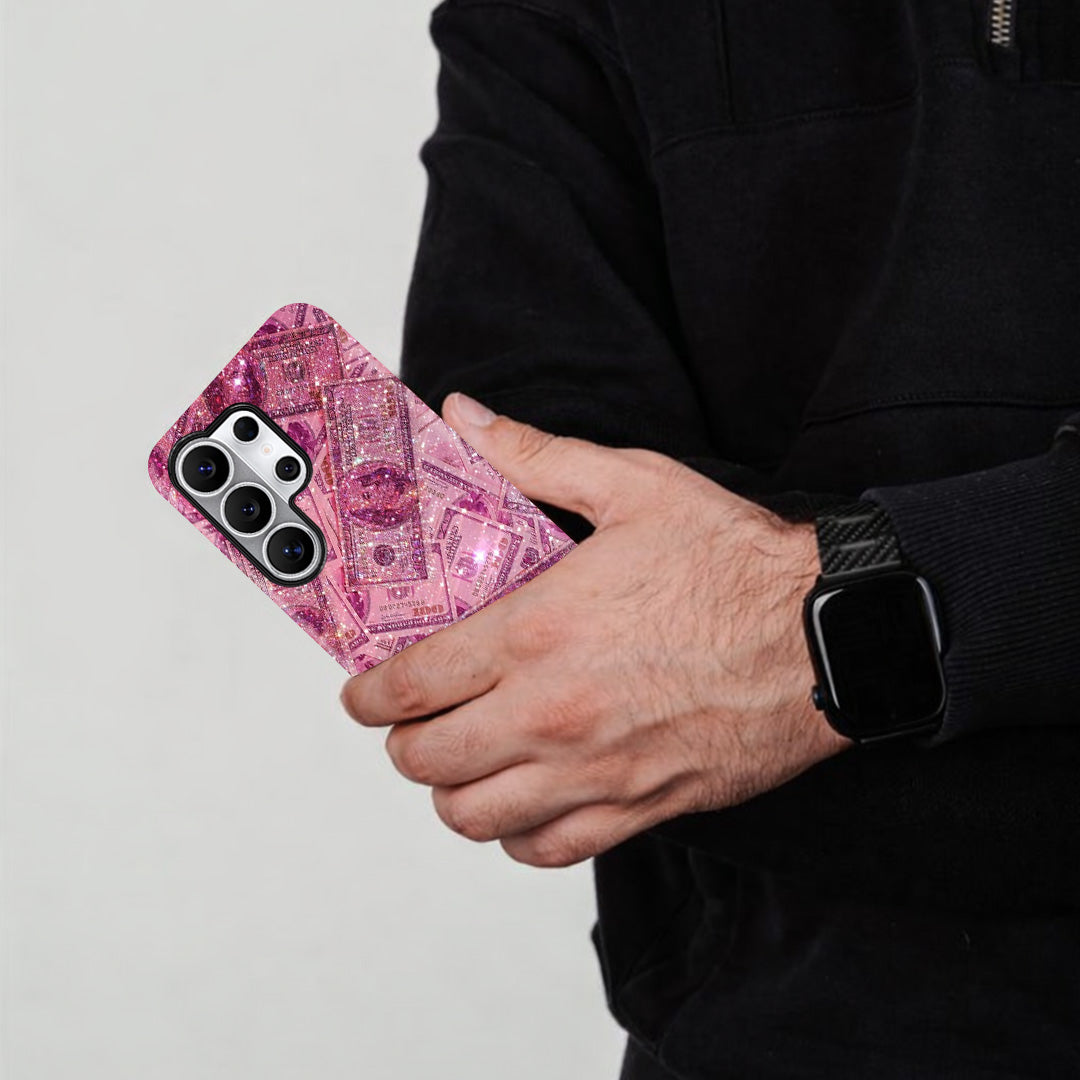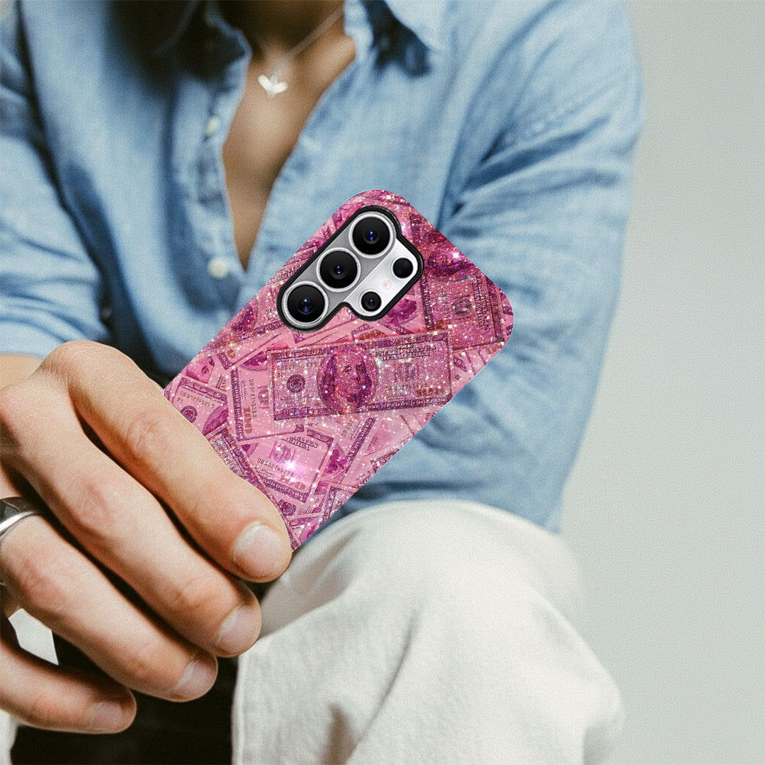 It’s pink, it’s fierce, and it’s dripping in style. The Barbie Cash case is made for the ones who hustle in heels and sparkle while stacking bills. With glittering dollar prints and a sassy aesthetic, this case turns your phone into a fashion statement and a mood. Flaunt your inner boss babe energy — because luxury looks better in pink.
