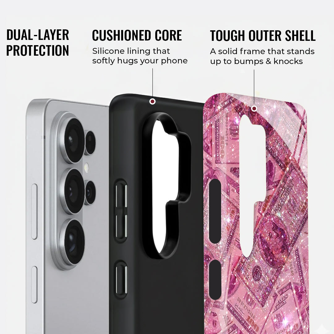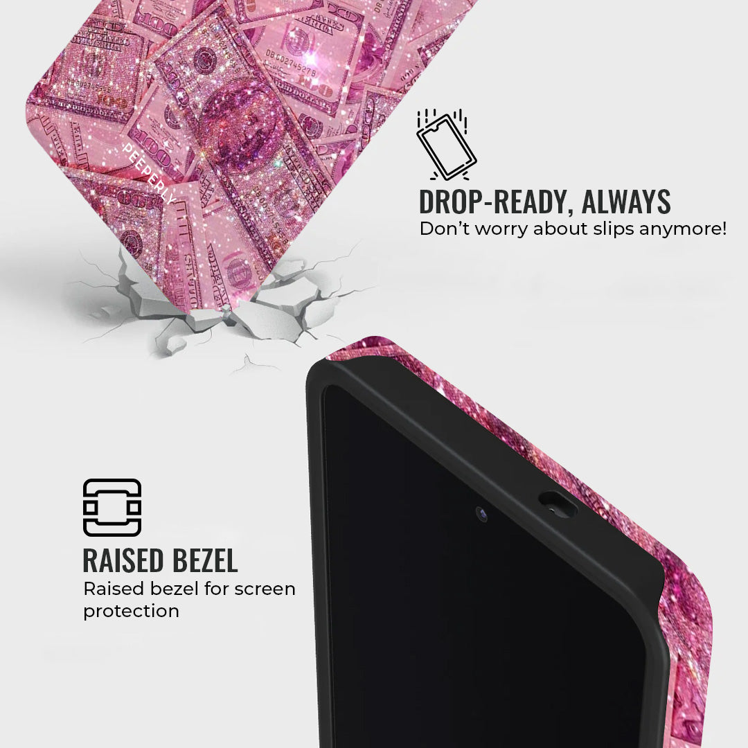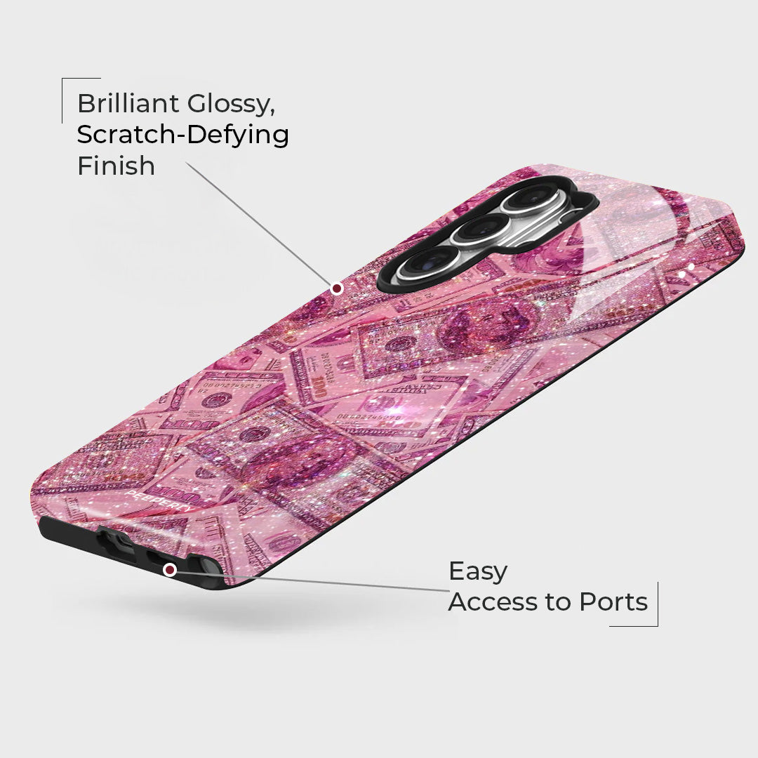 It’s pink, it’s fierce, and it’s dripping in style. The Barbie Cash case is made for the ones who hustle in heels and sparkle while stacking bills. With glittering dollar prints and a sassy aesthetic, this case turns your phone into a fashion statement and a mood. Flaunt your inner boss babe energy — because luxury looks better in pink.