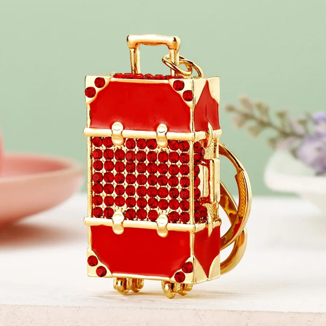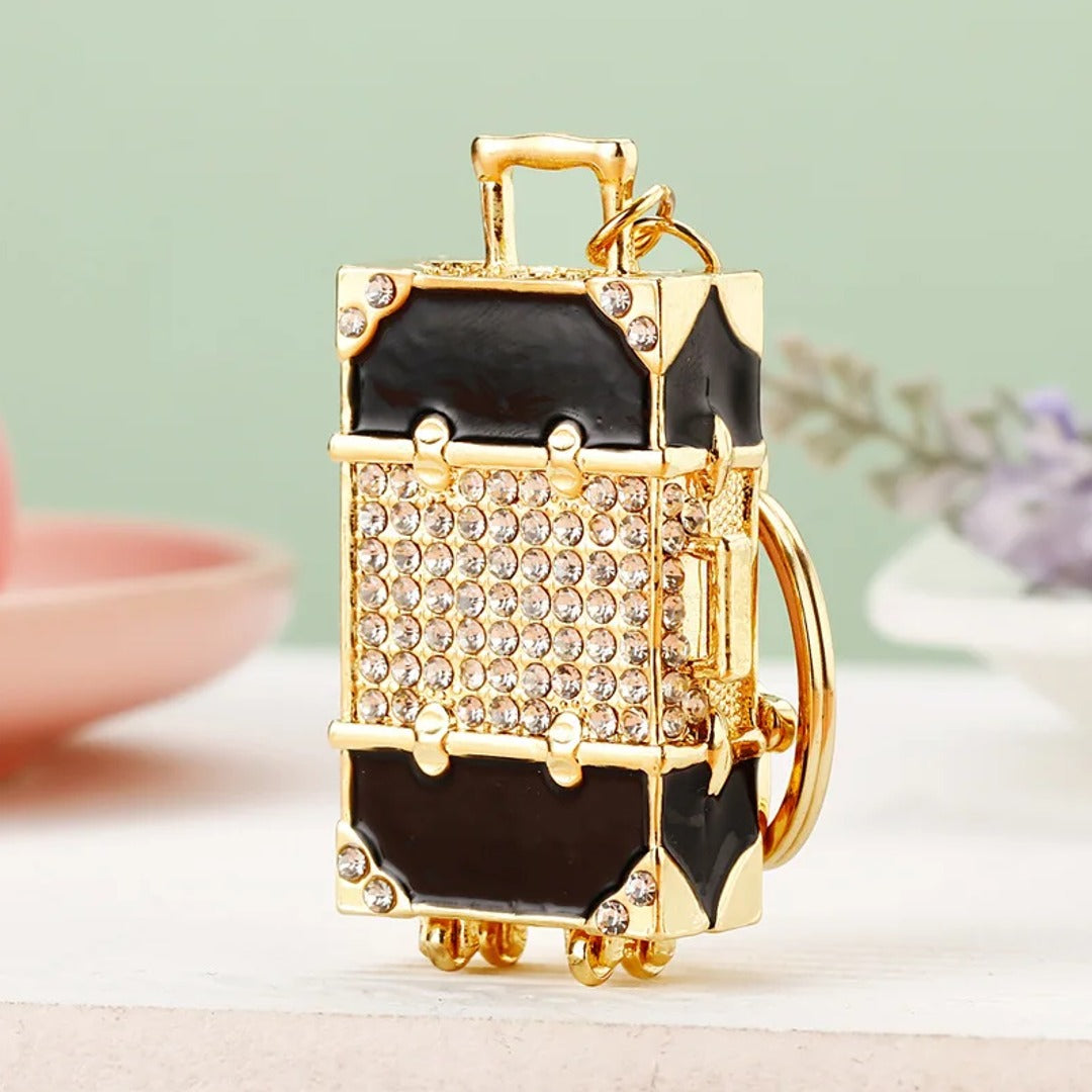 Carry a little extra sparkle wherever you go with our Crystal Elegance Suitcase Jewel Keychain. This charming accessory features a miniature suitcase design adorned with elegant crystals, perfect for glamming up your keys or bags. A playful yet stylish addition to your accessory collection.
