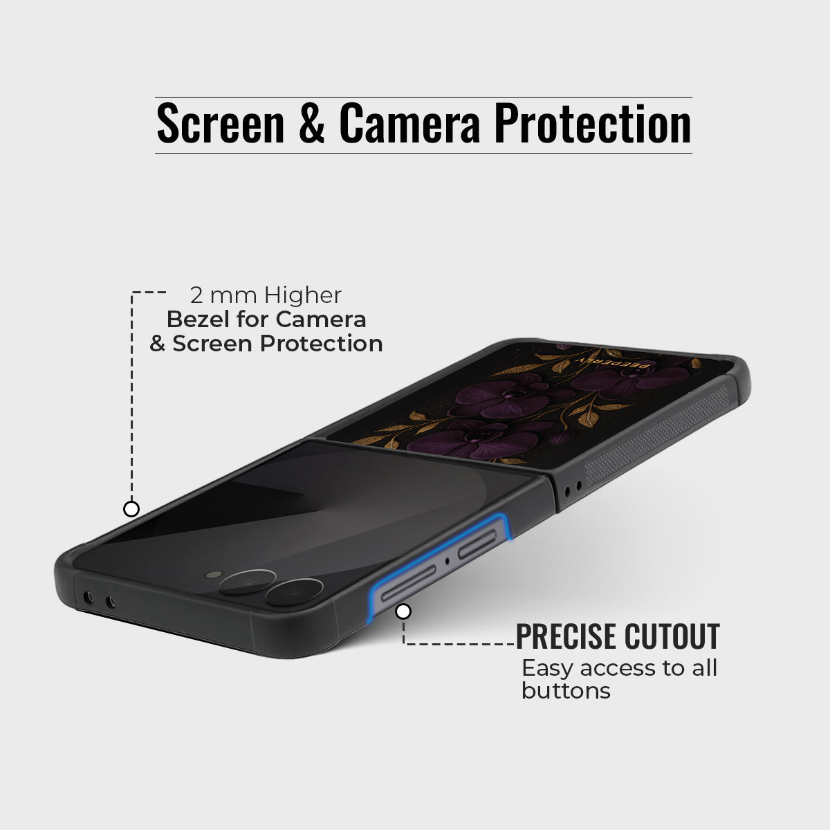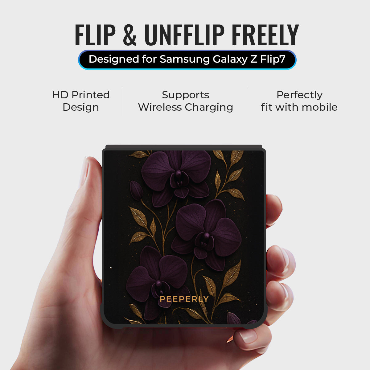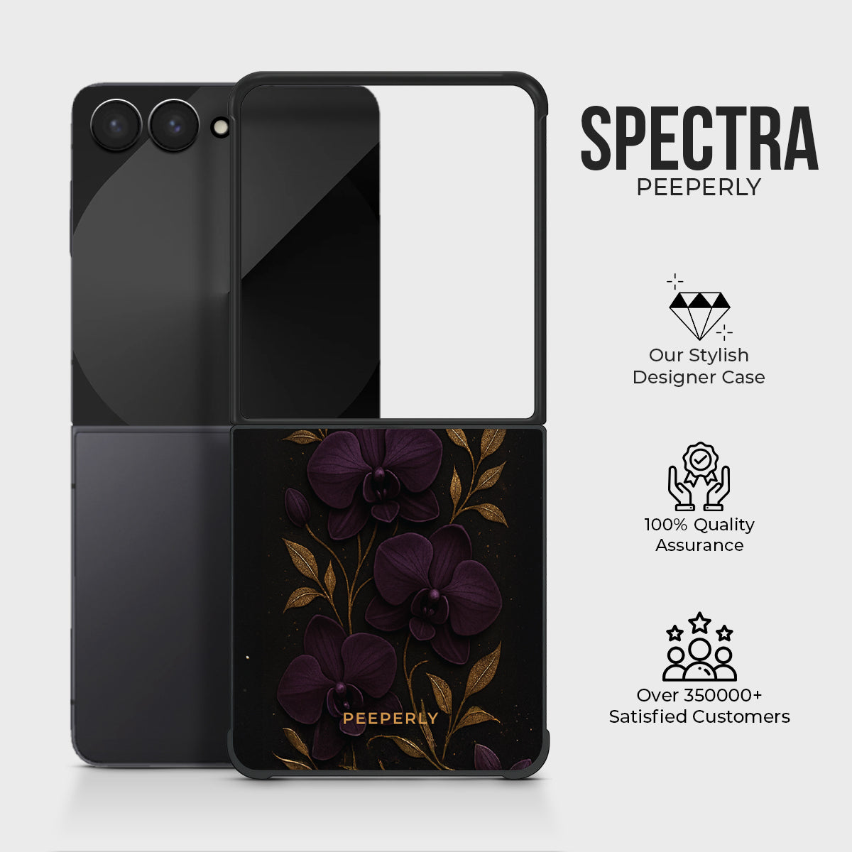 Indulge in understated elegance with the Luxe Bloom phone case. This design pairs deep, rich purple orchids with subtle gold accents, creating a sophisticated fusion of luxury and nature. Set against a sleek black backdrop, the flowers seem to blossom out of the darkness, exuding an air of refined beauty.