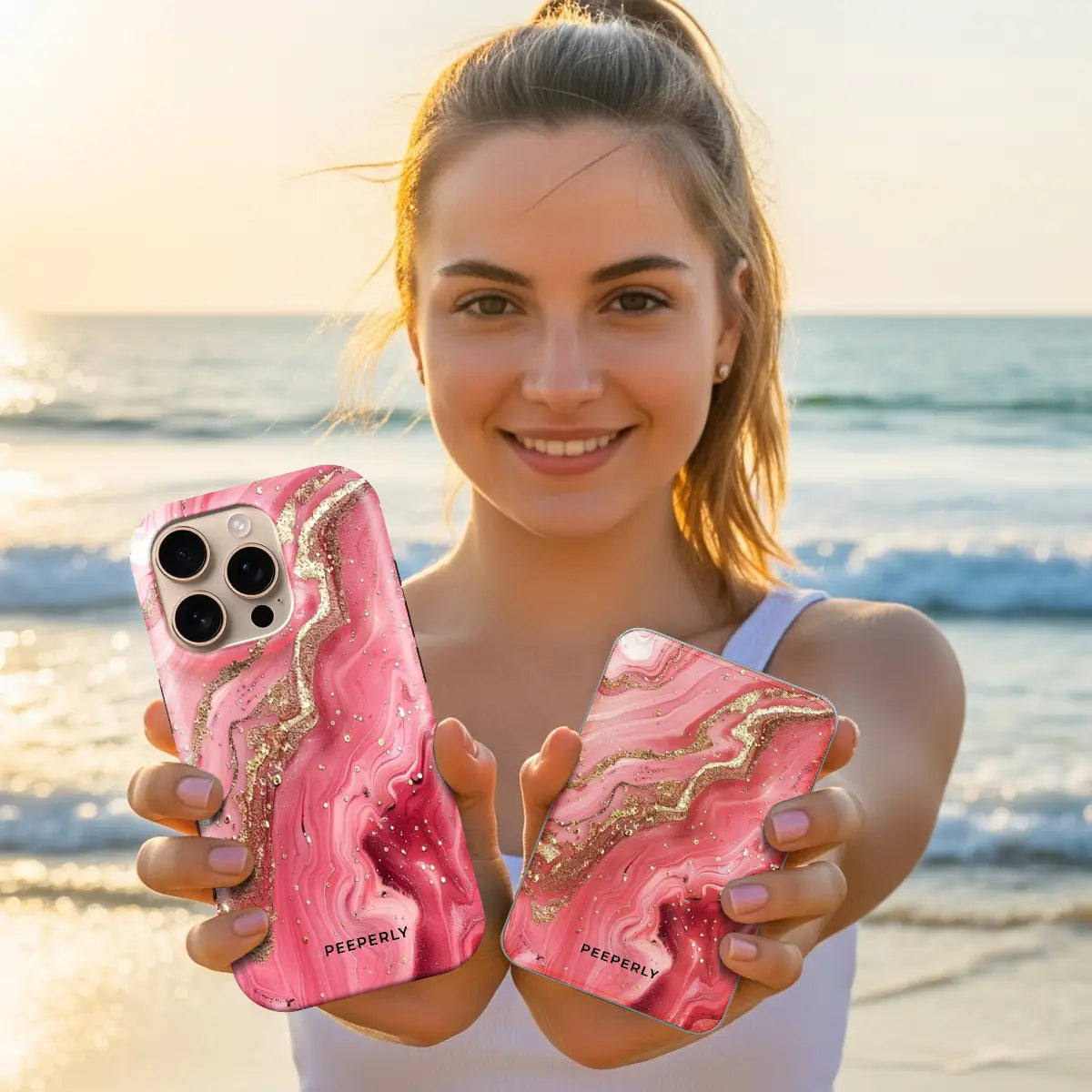 Soft, radiant, and effortlessly luxurious. Rosy Quartz blends delicate blush pinks with flowing marble swirls and shimmering gold accents, creating a design that feels both elegant and feminine. The subtle sparkle details add depth and movement, giving the surface a refined, gemstone-inspired glow.