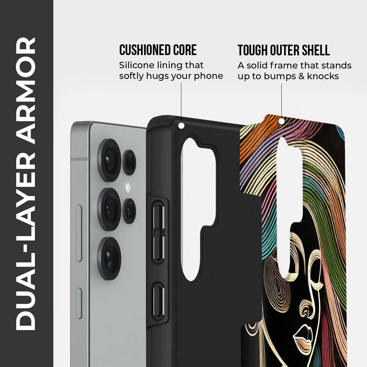 "Soul in Strokes" is a title that captures the essence of the design through an elegant yet abstract lens. The combination of flowing, colorful lines that form the face evokes a sense of deep expression and emotion.