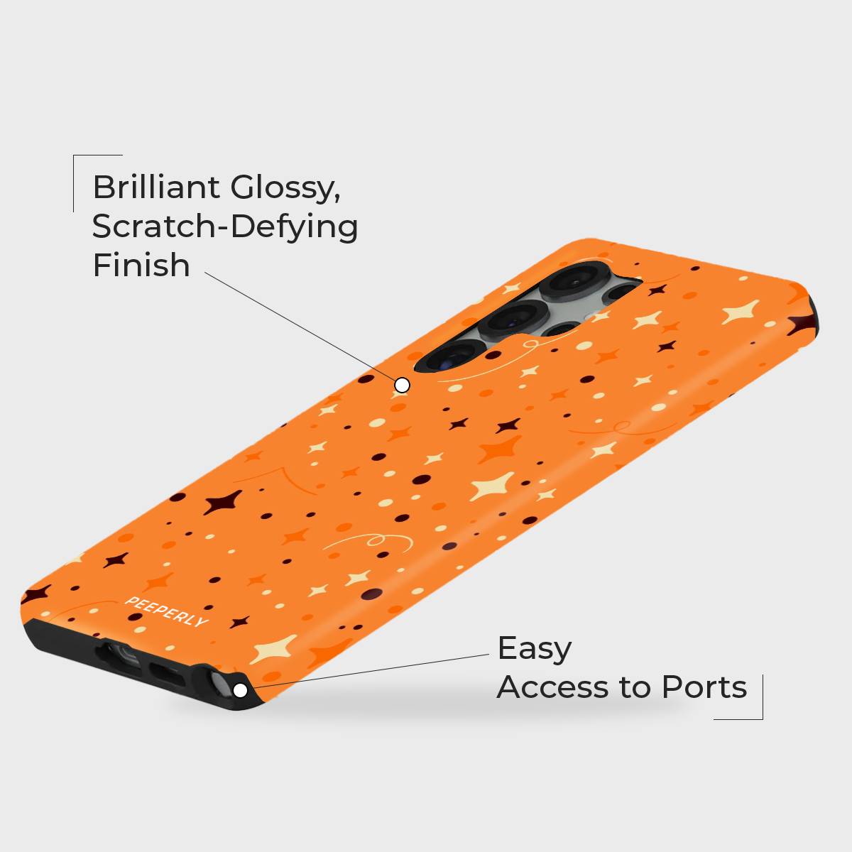 Stardust Flame is where fiery energy meets celestial wonder. Featuring a glowing orange canvas sprinkled with star-like patterns and cosmic sparks, this case brings the magic of the night sky to your fingertips. Its vibrant design captures the essence of starlit embers dancing in space, making it the perfect blend of bold style and dreamy charm.