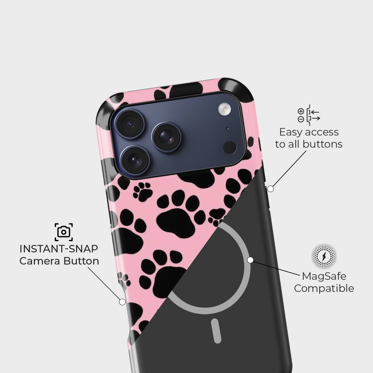 Turn your phone into a celebration of cuteness with Paw Parade — a fun and fierce design featuring bold black paw prints on a vibrant pink backdrop. Perfect for pet lovers, playful spirits, and anyone who wants their style to stand out with charm and personality. Let every step you take leave a paw-sitive impression!
