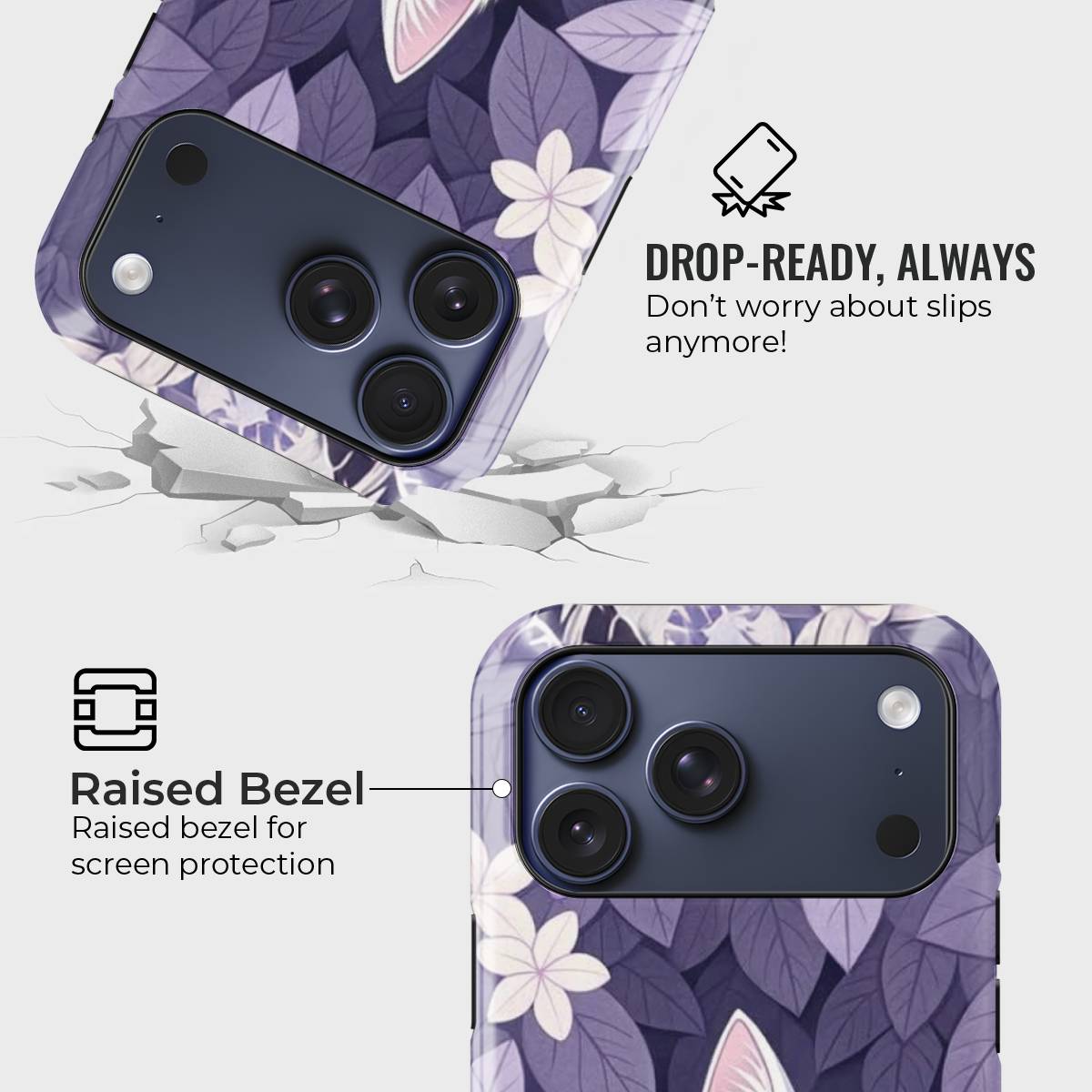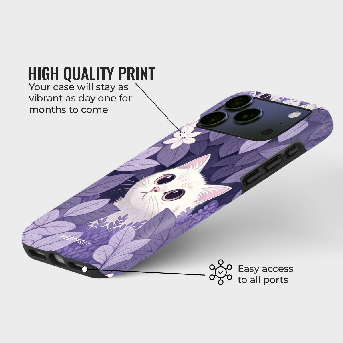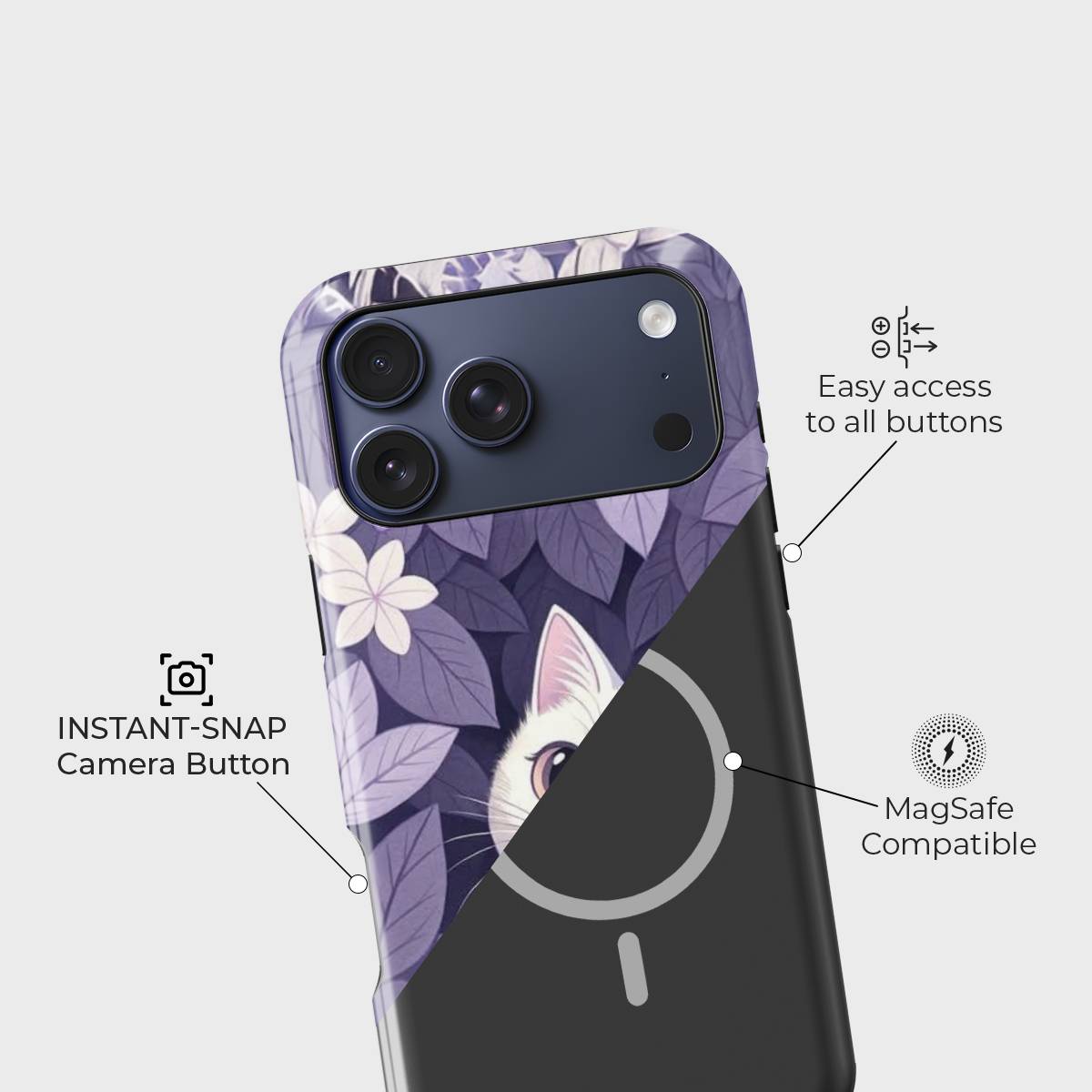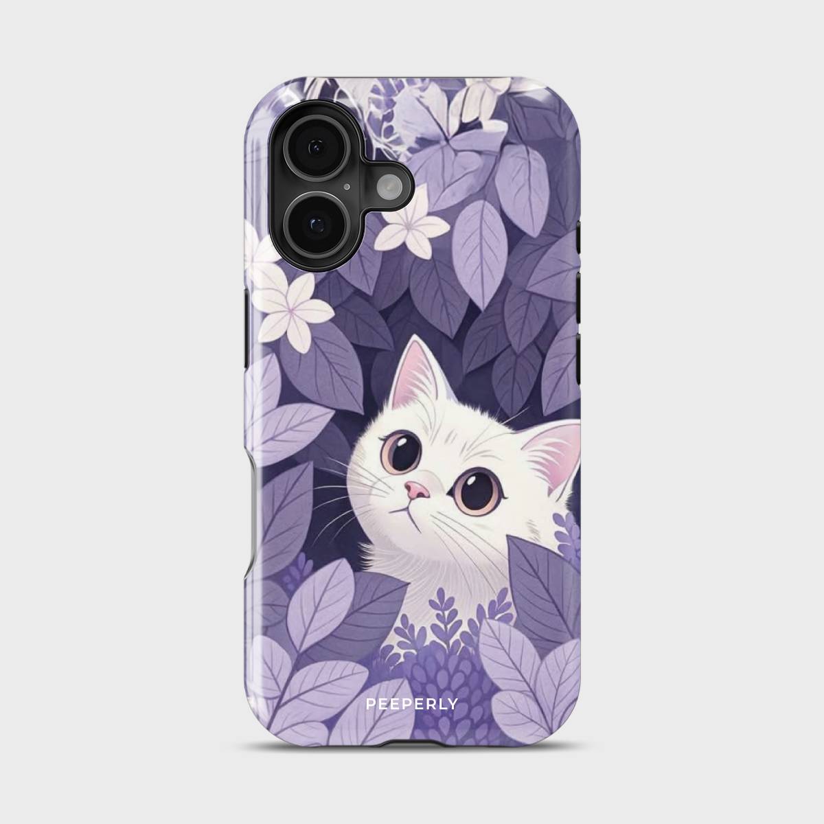 Step into a dreamy meadow with Secret Kitty Garden, a whimsical phone case that captures the curiosity of a wide-eyed white kitten nestled amidst a lush bed of violet leaves and florals. This case is a perfect blend of cuteness and elegance, making it ideal for cat lovers and nature enthusiasts alike.