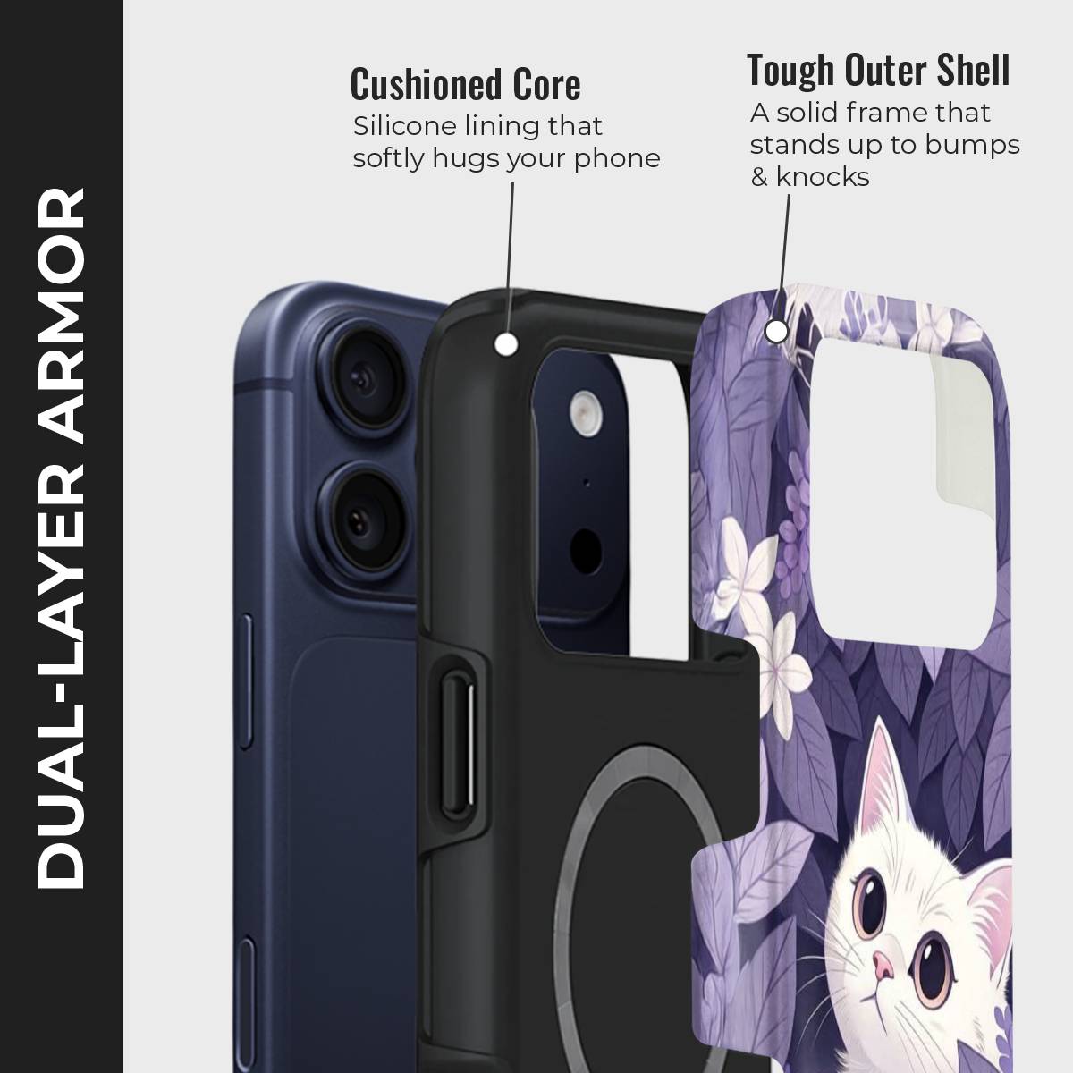 - Double-Layer Protection: Silicon interior cushions impacts + rigid PC exterior shields against drops and scratches.