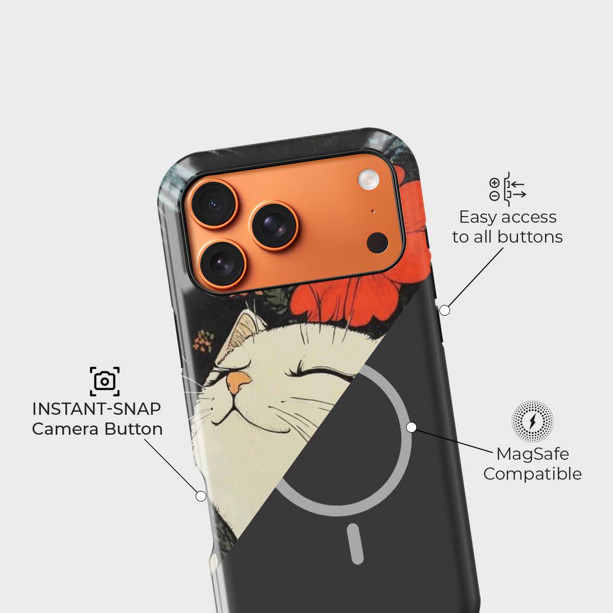 SereniKitty is a peaceful celebration of calm, charm, and feline grace. Featuring a blissful white cat basking in floral serenity, this phone case captures the pure joy of living in the moment. With a rich, artistic background of soft blooms and natural tones, it blends elegance with a touch of whimsy.