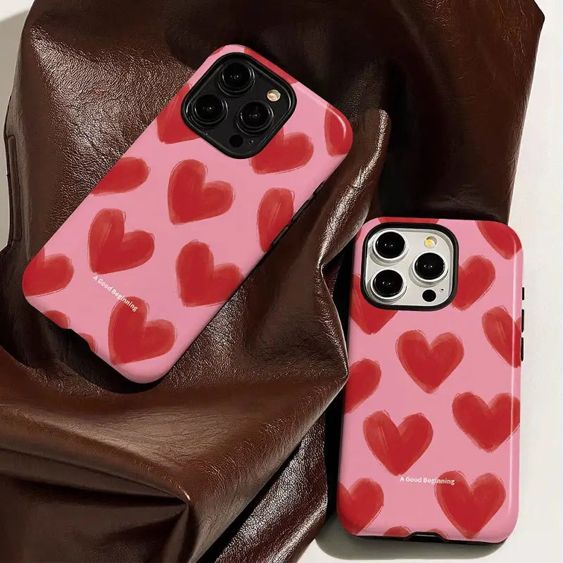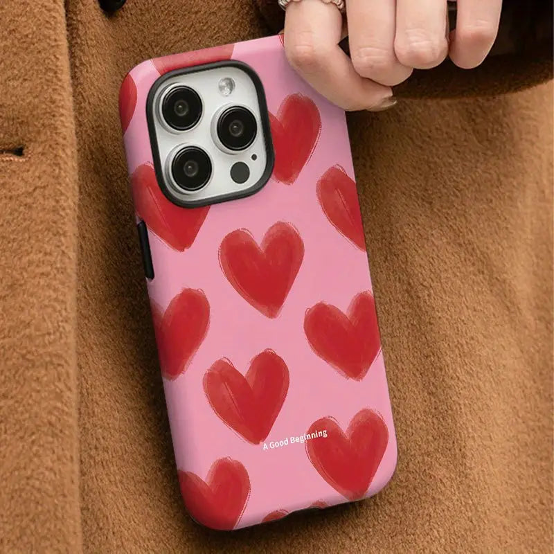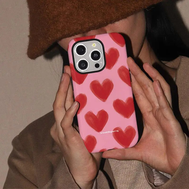 Fall head over heels for the Heart Rush Case — a bold expression of love, style, and positivity. Featuring a vibrant pattern of hand-painted red hearts on a soft pink background, this case instantly lifts your mood and turns your phone into a statement of joy and affection.