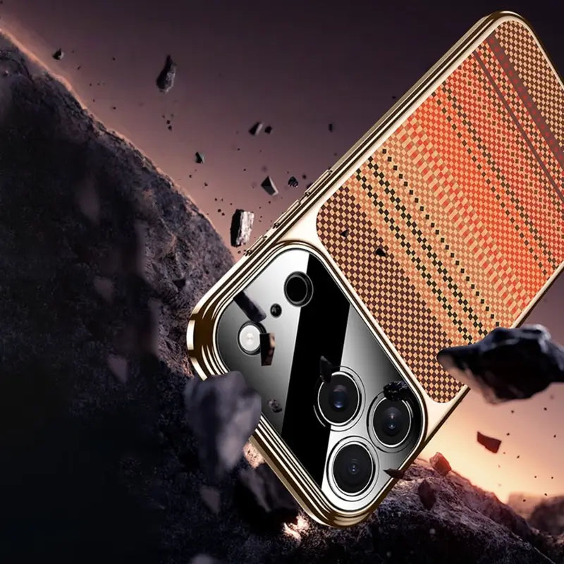 Experience the perfect fusion of sophistication and durability with the Retro Woven Stripes Electroplating Case. Designed for those who appreciate both luxury and performance, this case features a distinct woven-texture panel complemented by a polished metallic frame for a truly modern aesthetic.