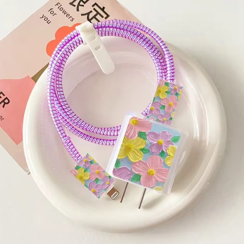 Safeguard your charger in style with the Tiny Bloom Guardian Charger Protector Kit. This compact kit offers robust protection against scratches and dust, adorned with delightful floral designs for added charm.