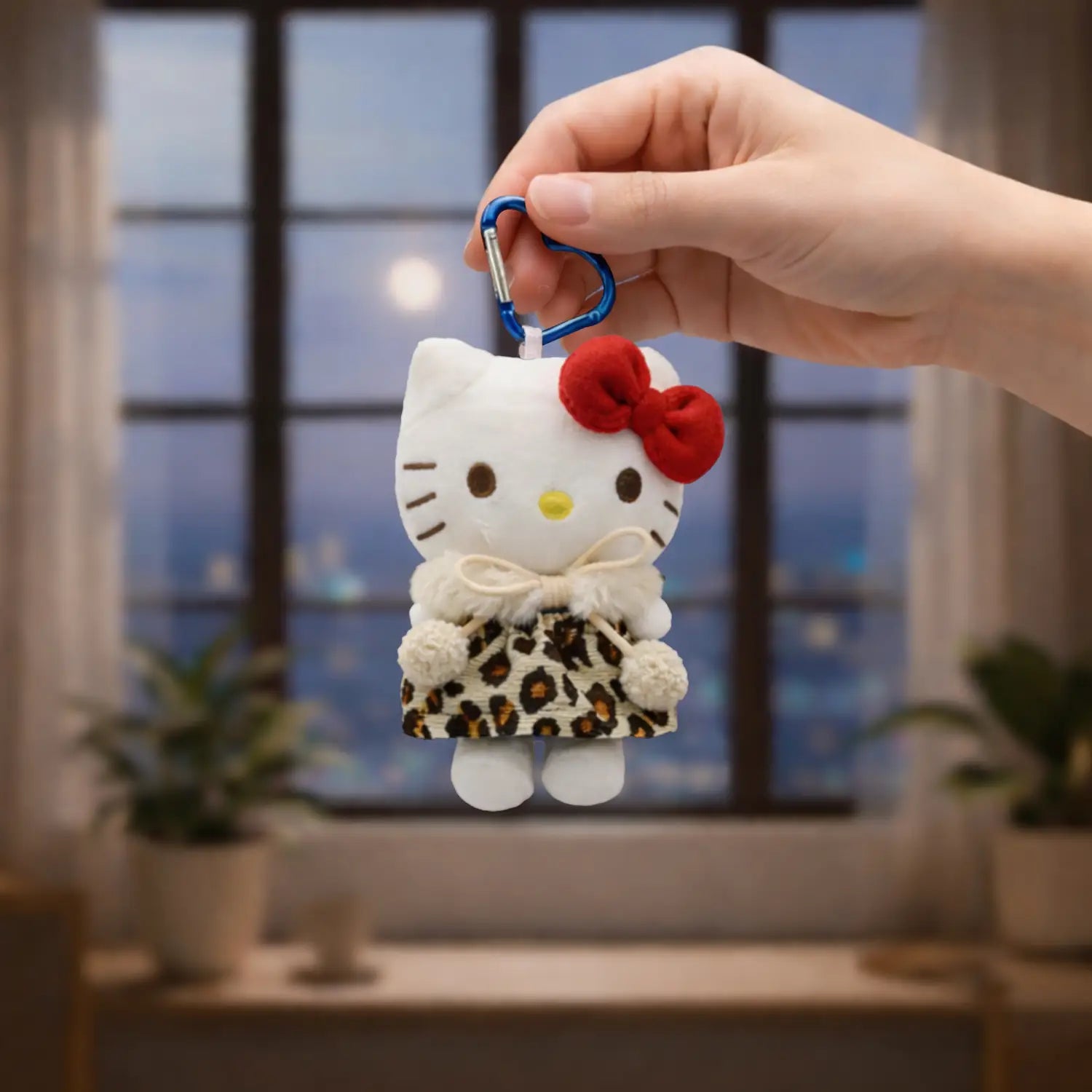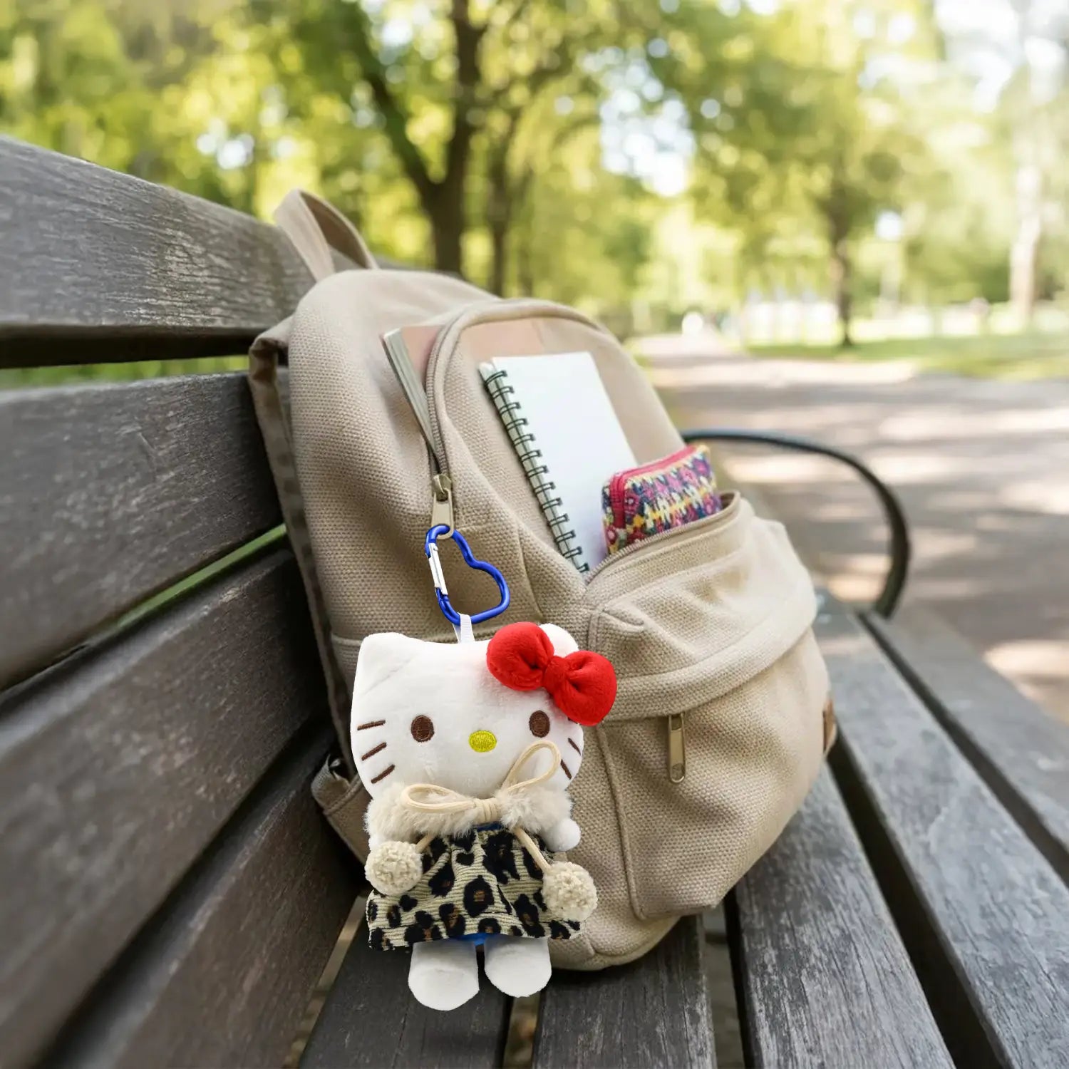 - Soft plush Hello Kitty bag charm with stylish outfit details