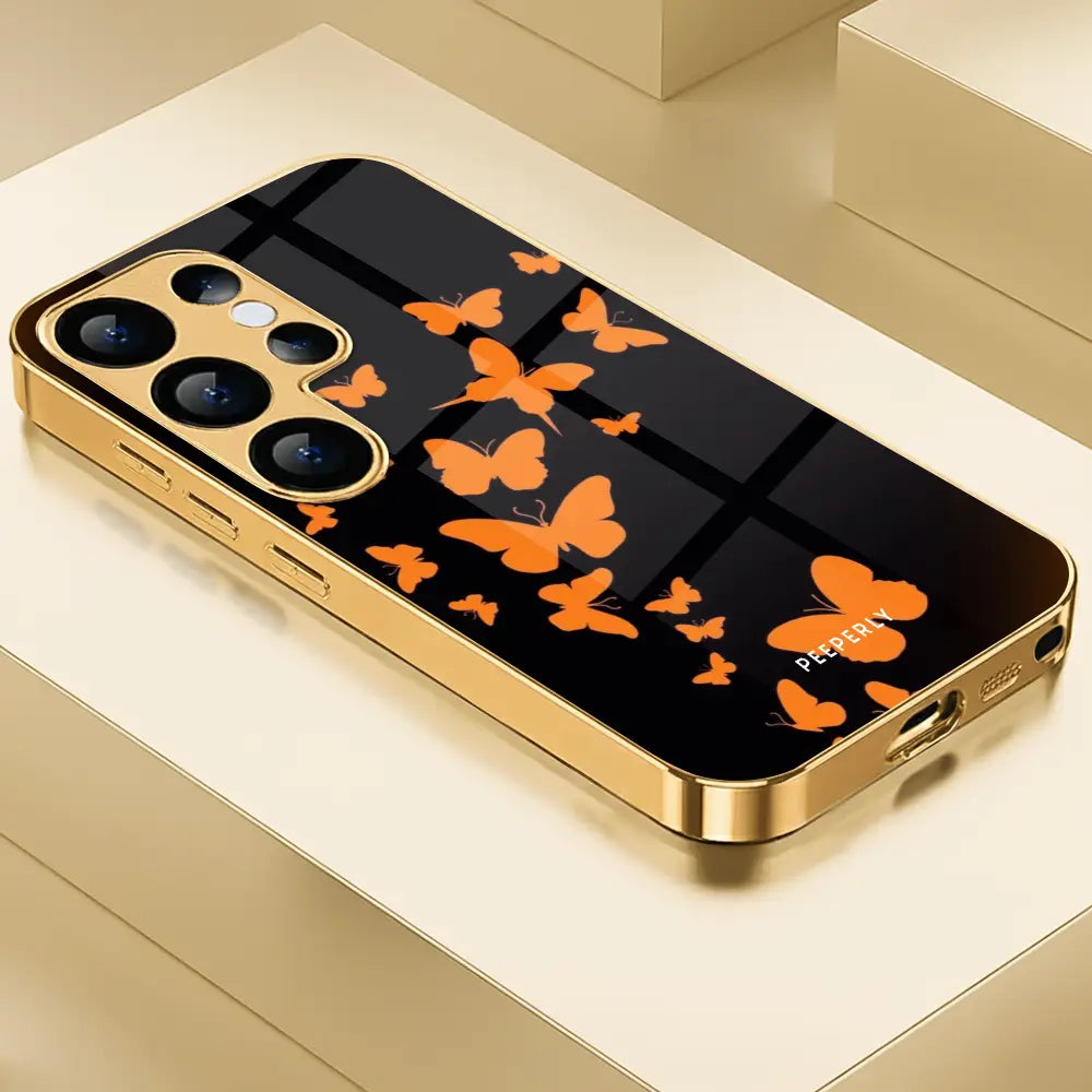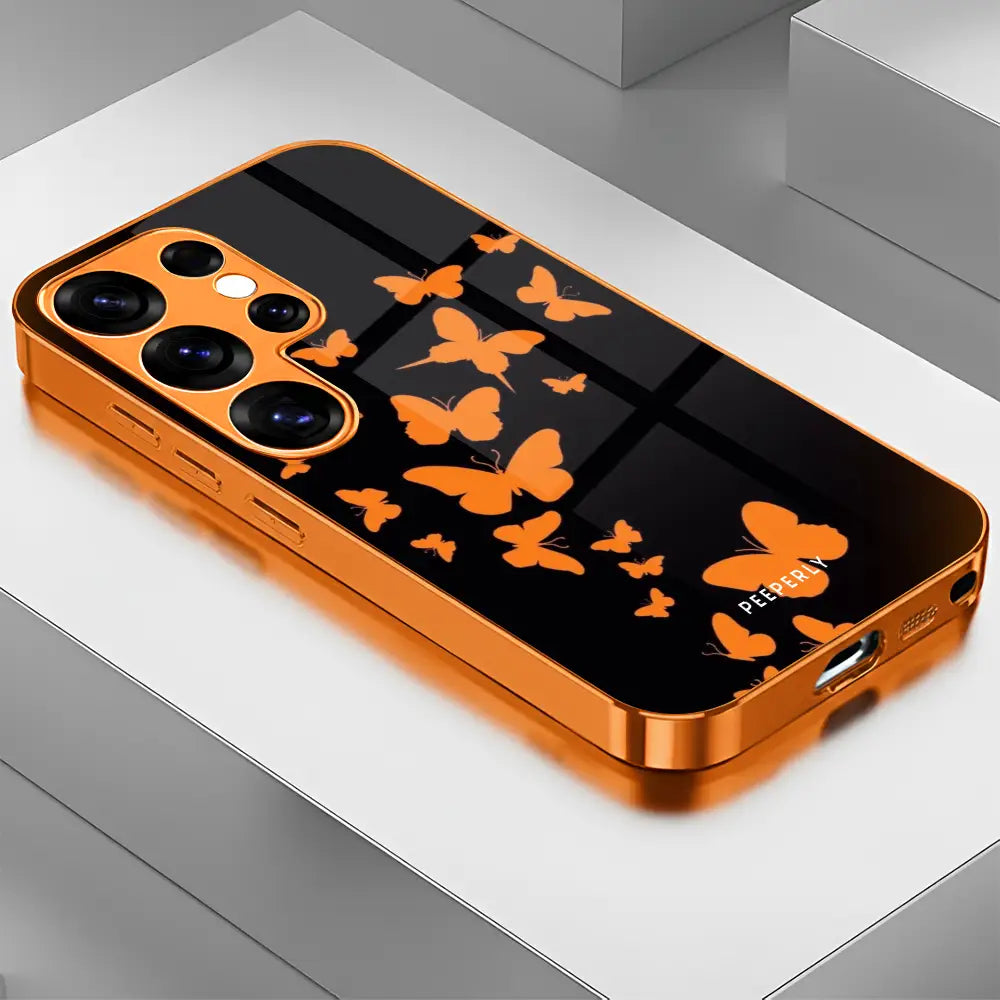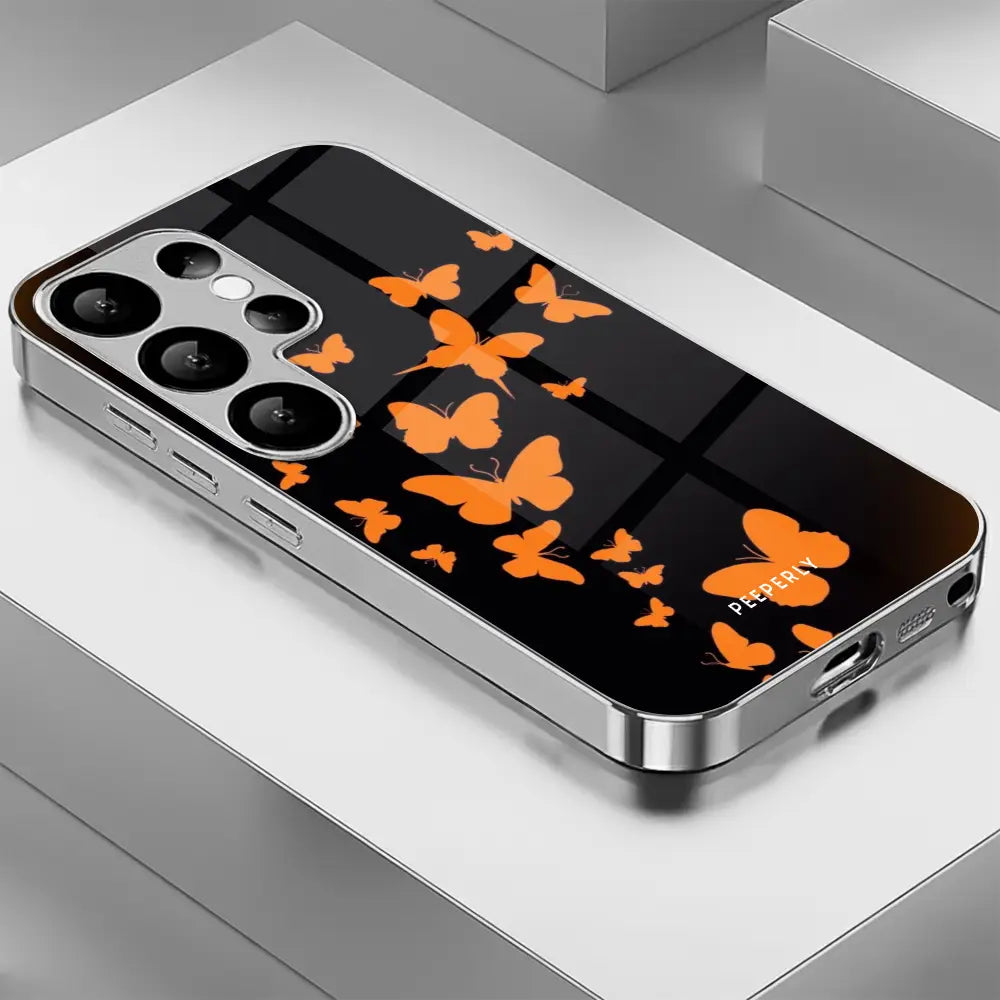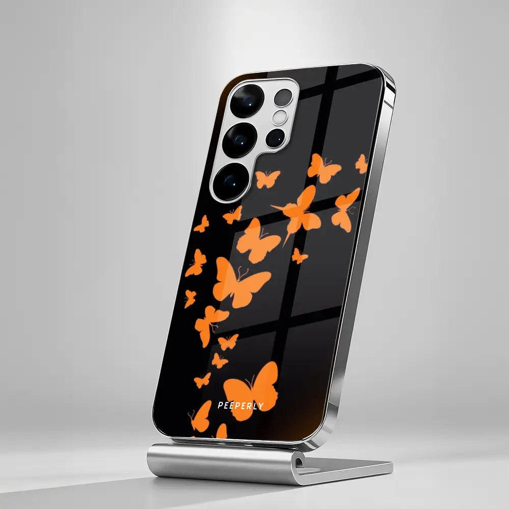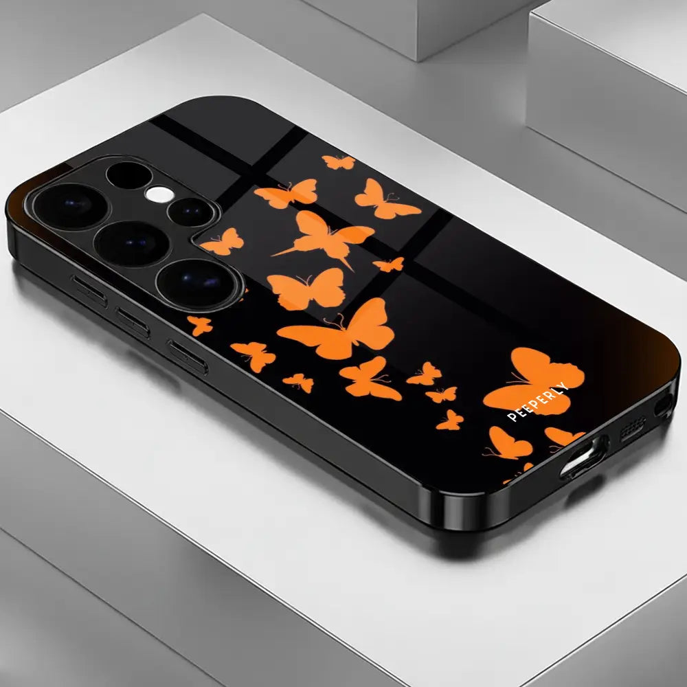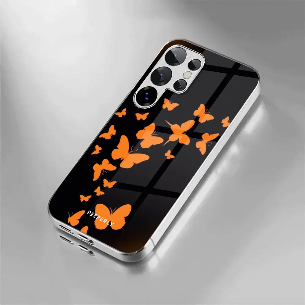 The Bright Butterflies Case brings your phone to life with a dazzling display of vibrant butterfly silhouettes set against a sleek glossy background. Designed in a radiant metallic frame, this case blends artistic charm with modern protection. The contrasting orange butterflies add a bold, uplifting aesthetic, turning your device into a stylish expression of positivity and motion.