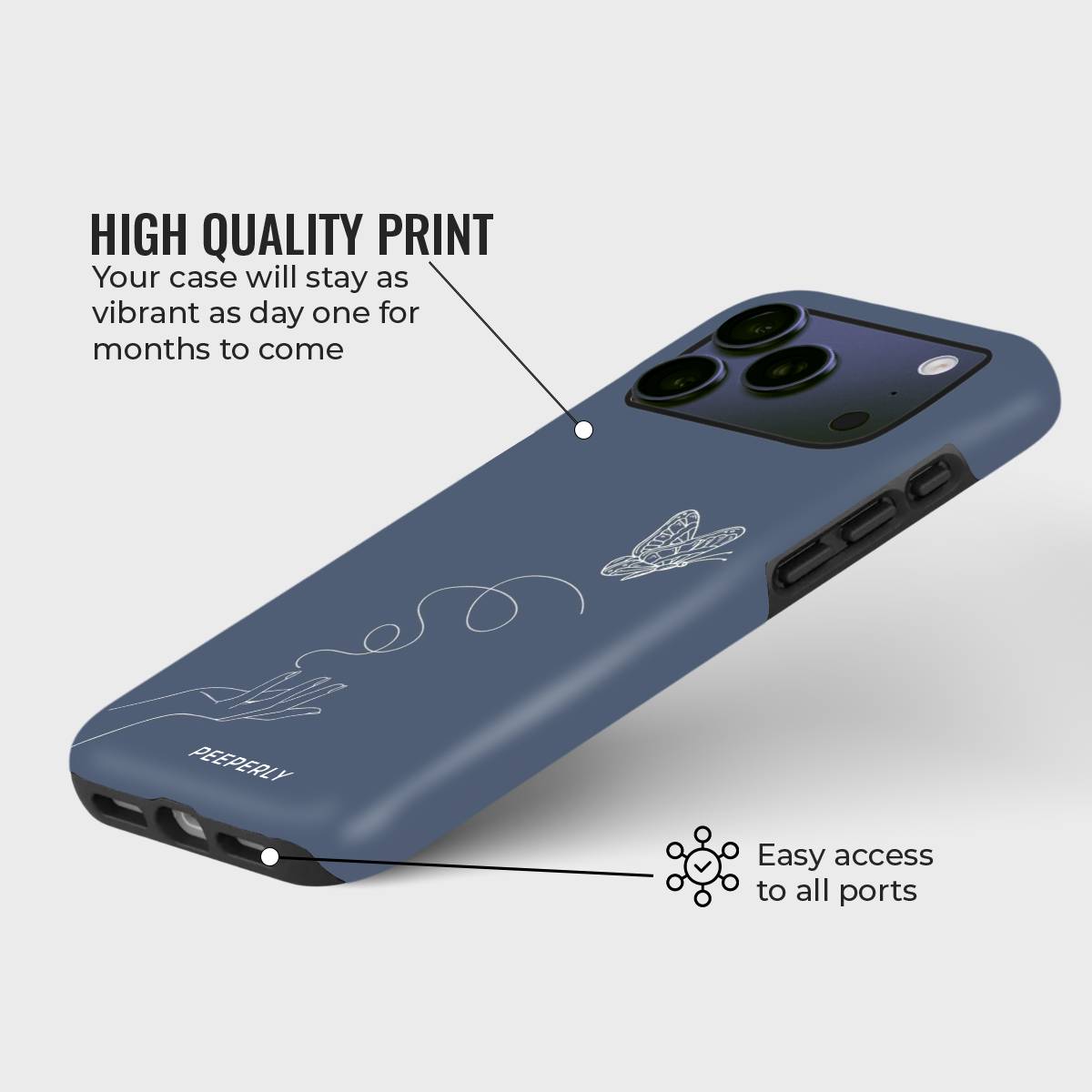 A tribute to fleeting beauty and quiet moments, Chasing Light captures the essence of freedom and transformation. With a delicate line-drawn hand releasing a butterfly into open space, this case symbolizes growth, hope, and the pursuit of light — whatever it may mean to you.