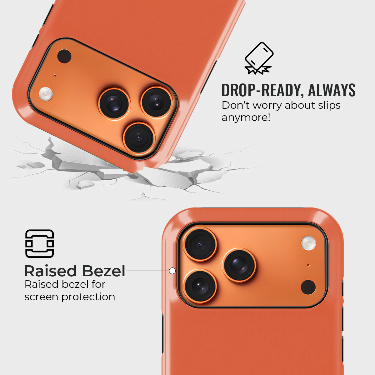 The Amber Surge case radiates warmth and confidence through its vivid orange finish — a perfect balance of elegance and vitality. Its smooth, matte texture gives a premium touch, while the vibrant tone captures the essence of unstoppable momentum.