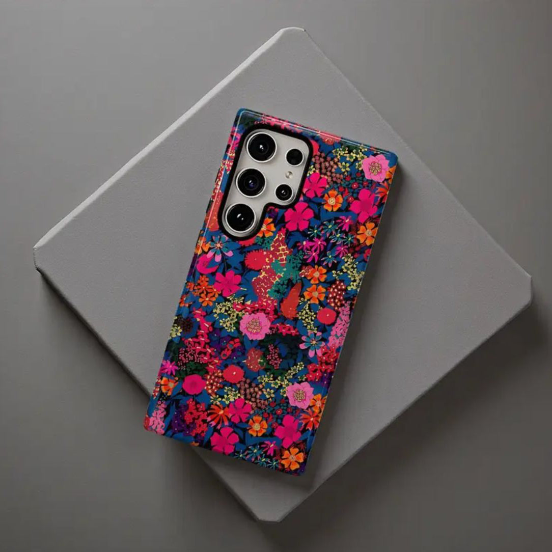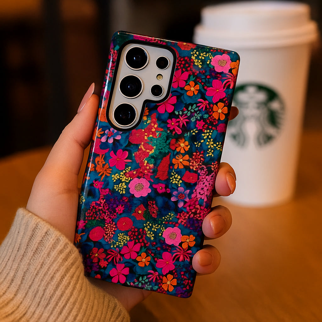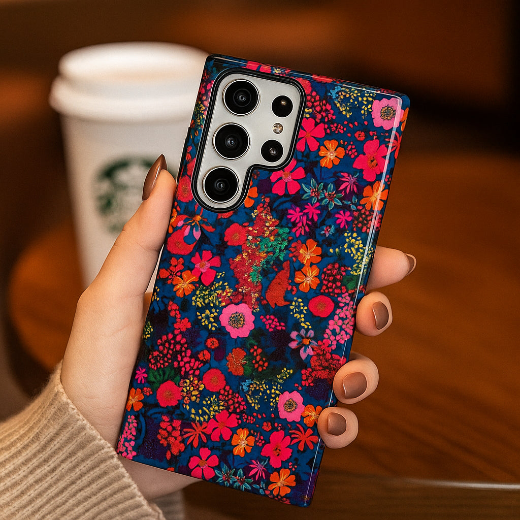 The Bloom Mirage case is where artistry meets vibrance — an explosion of florals that seem to dance under shifting light. With a kaleidoscope of bold hues — magenta, coral, teal, and gold — this design evokes the magic of a blooming paradise glimpsed through a dream.