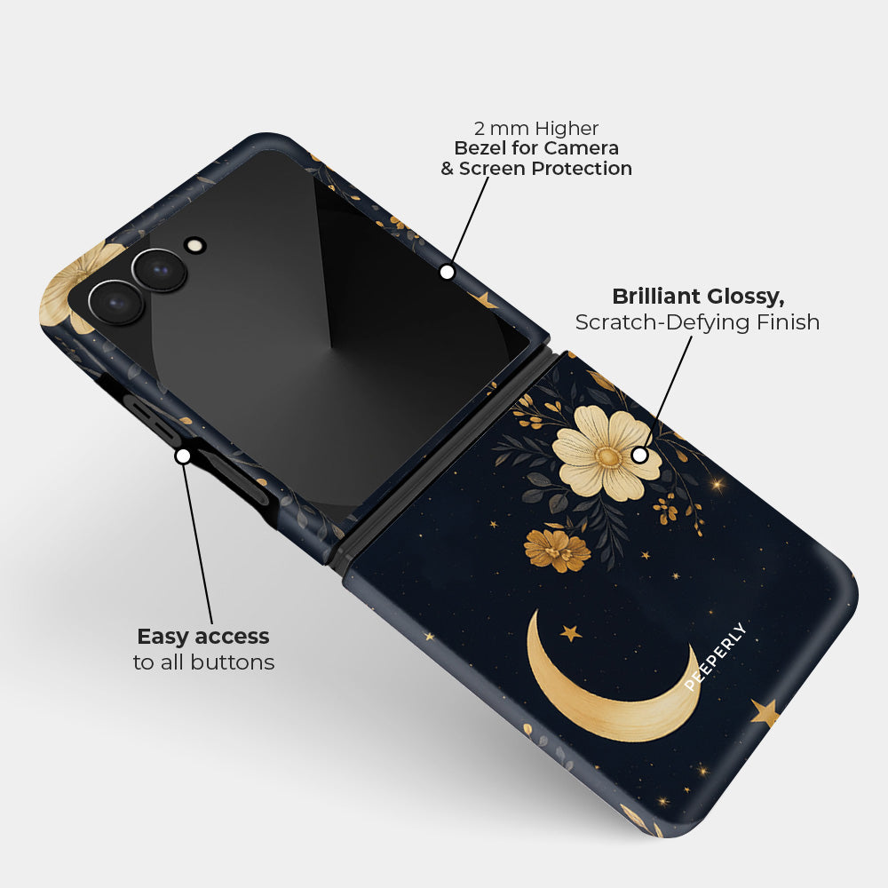 Unleash celestial charm with the Cosmic Spells phone case - where delicate florals entwine with shimmering moons and stars for an otherworldly vibe. This design blends ethereal botanicals with mystical cosmos, perfect for Grden, flower lovers, dreamers, and anyone who believes in a little magic.