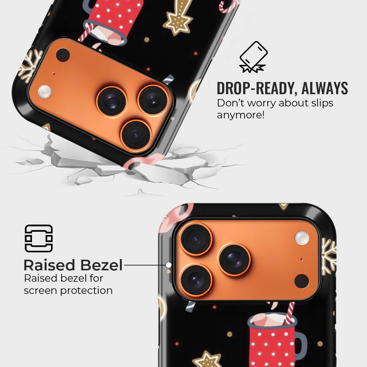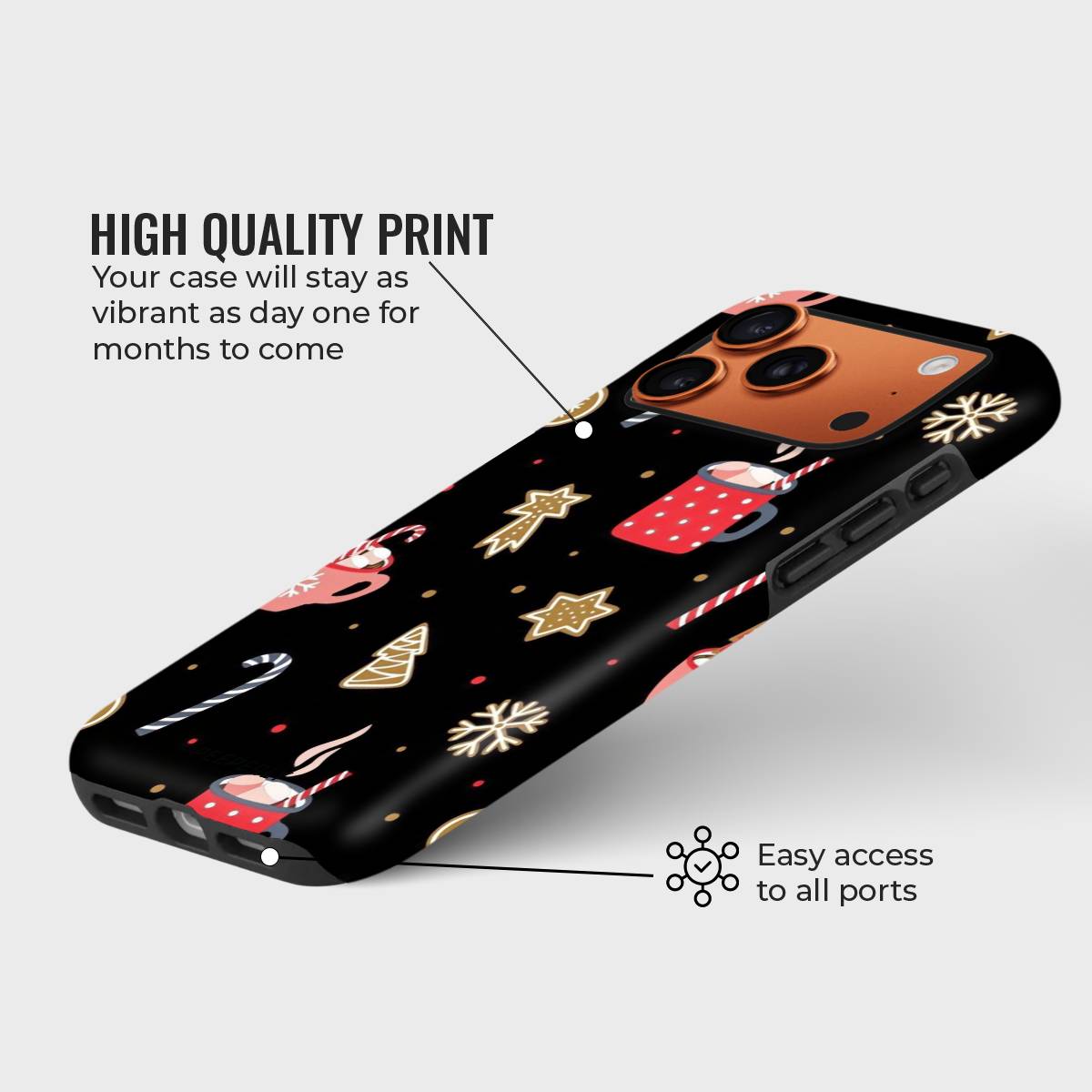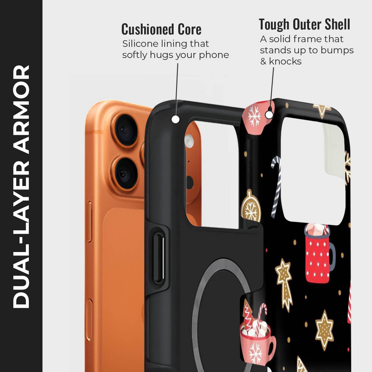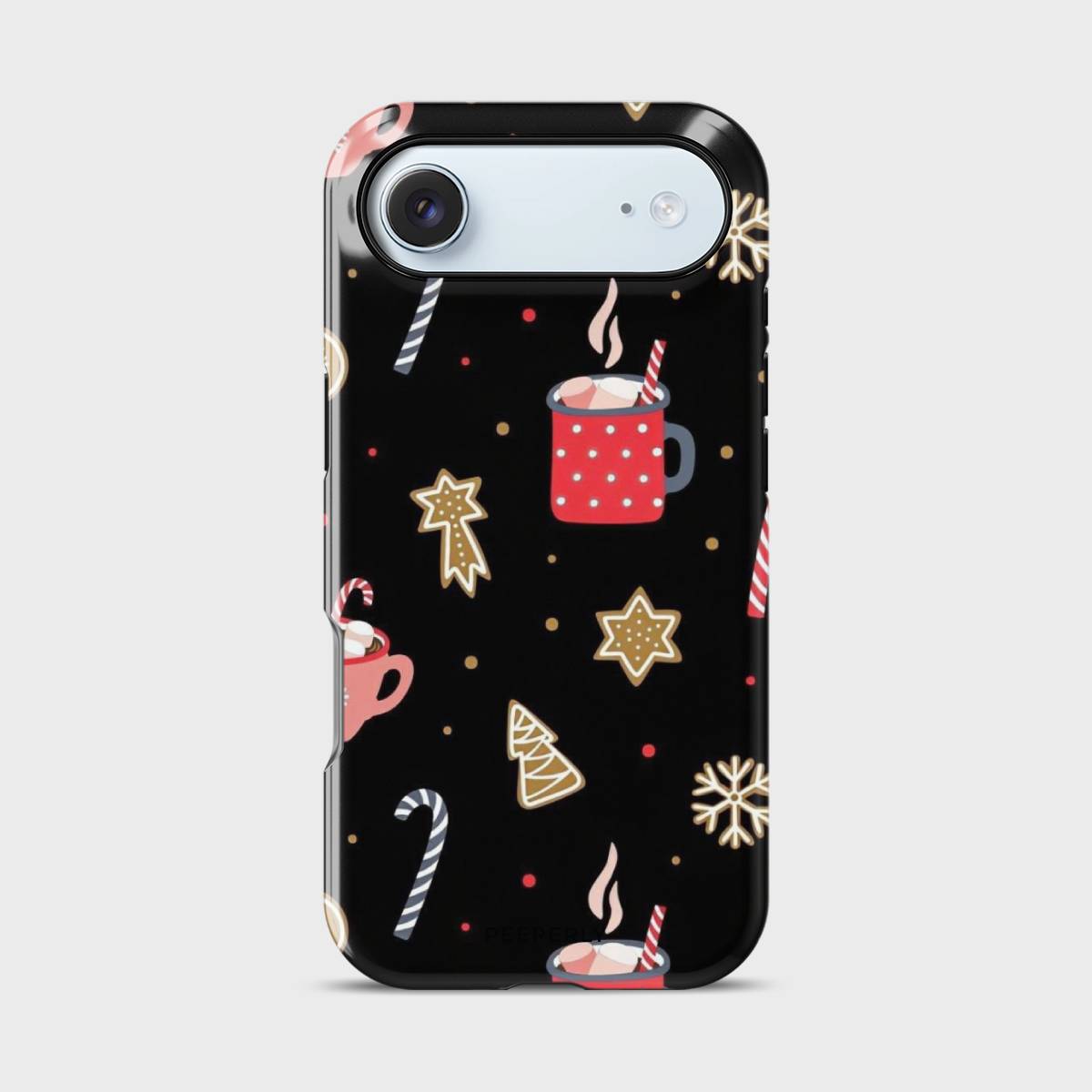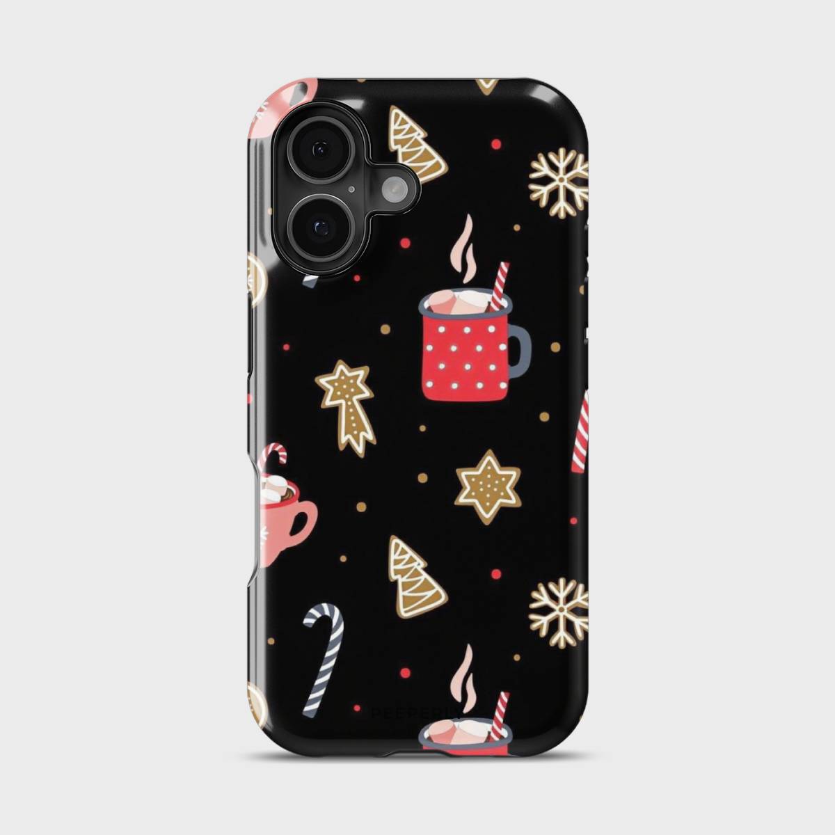 Wrap your phone in the sweetness of the season with this charming holiday-themed case. Featuring festive mugs of hot cocoa, candy canes, gingerbread cookies, and sparkling snowflakes, it captures the cozy joy of winter nights spent savoring your favorite treats.