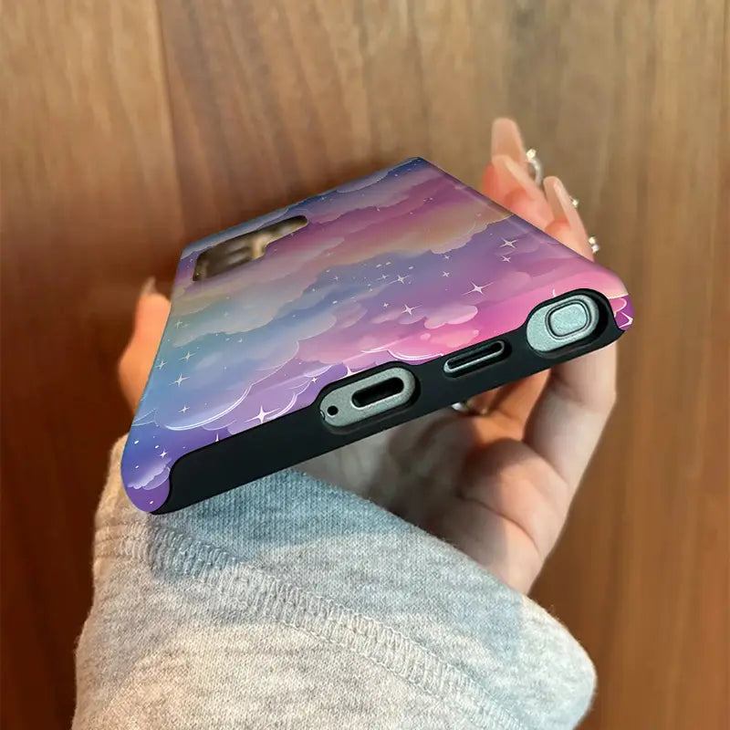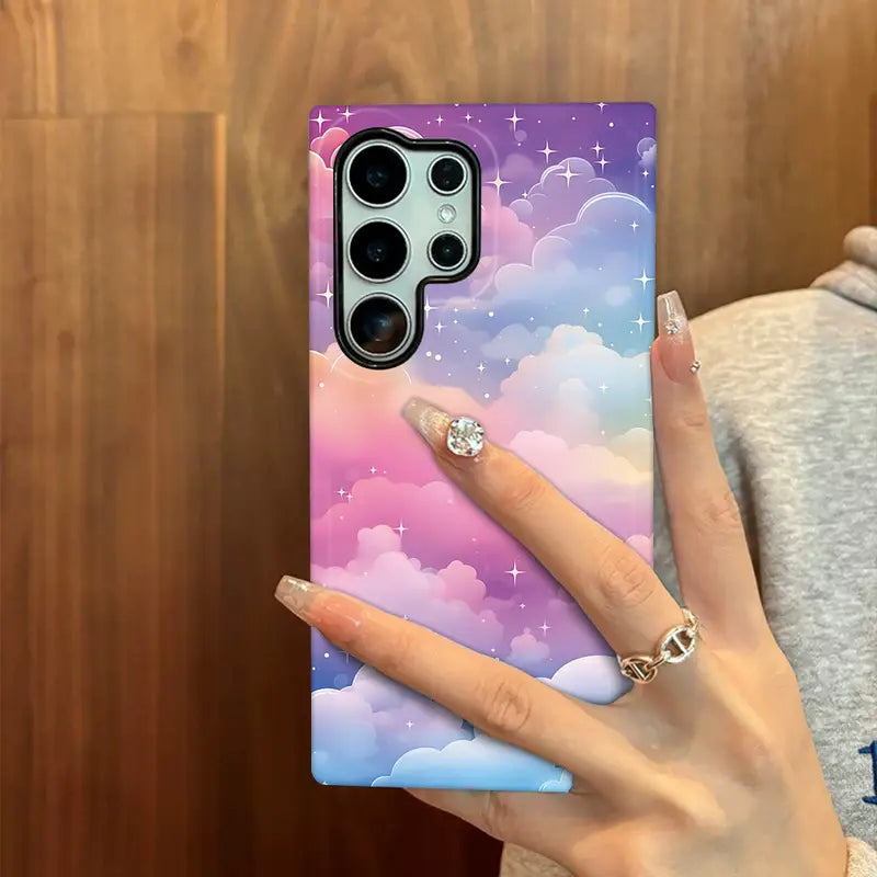 Let your phone drift into a world of serenity and wonder with the Magic Skies Case. Inspired by pastel sunsets and dreamy cloudscapes, this case captures the enchanting beauty of a twilight sky — soft hues of pink, lavender, and blue blending seamlessly with twinkling star-like sparkles.