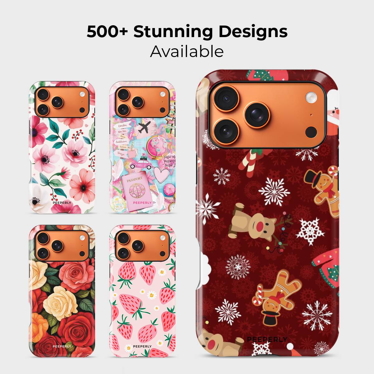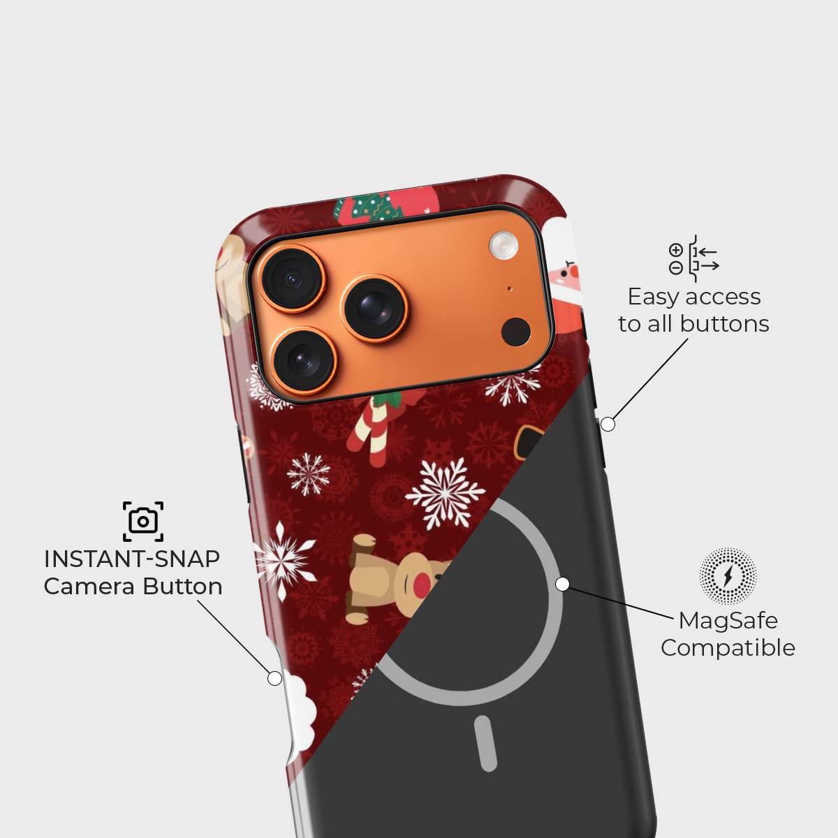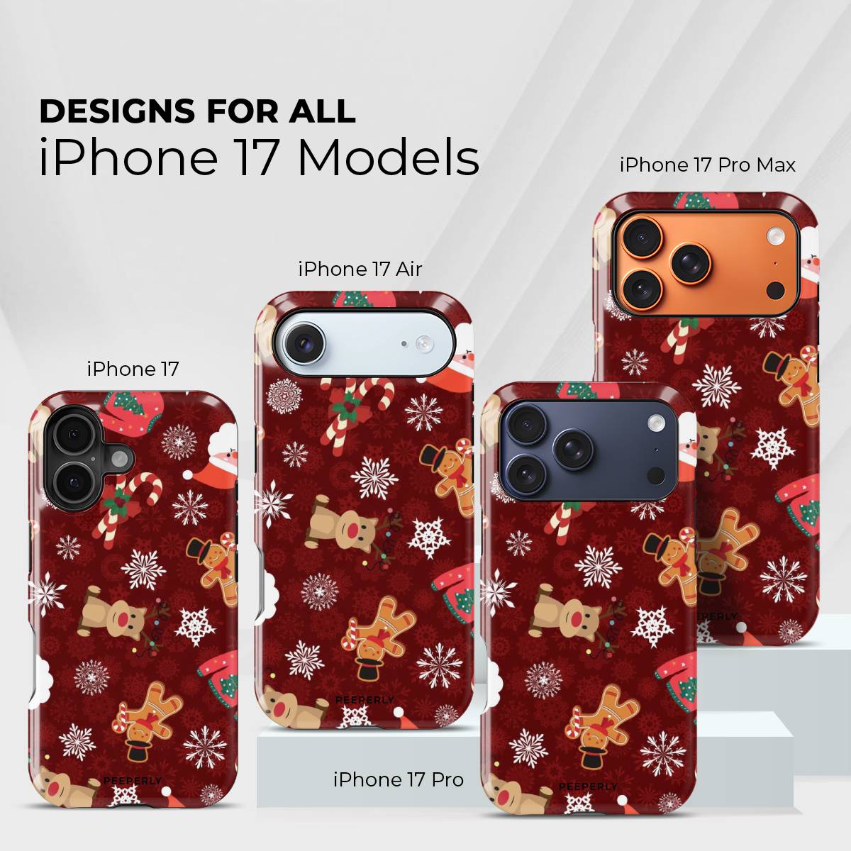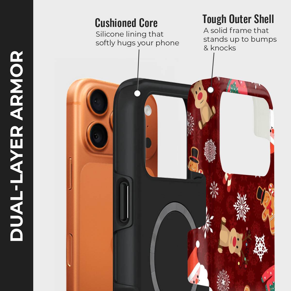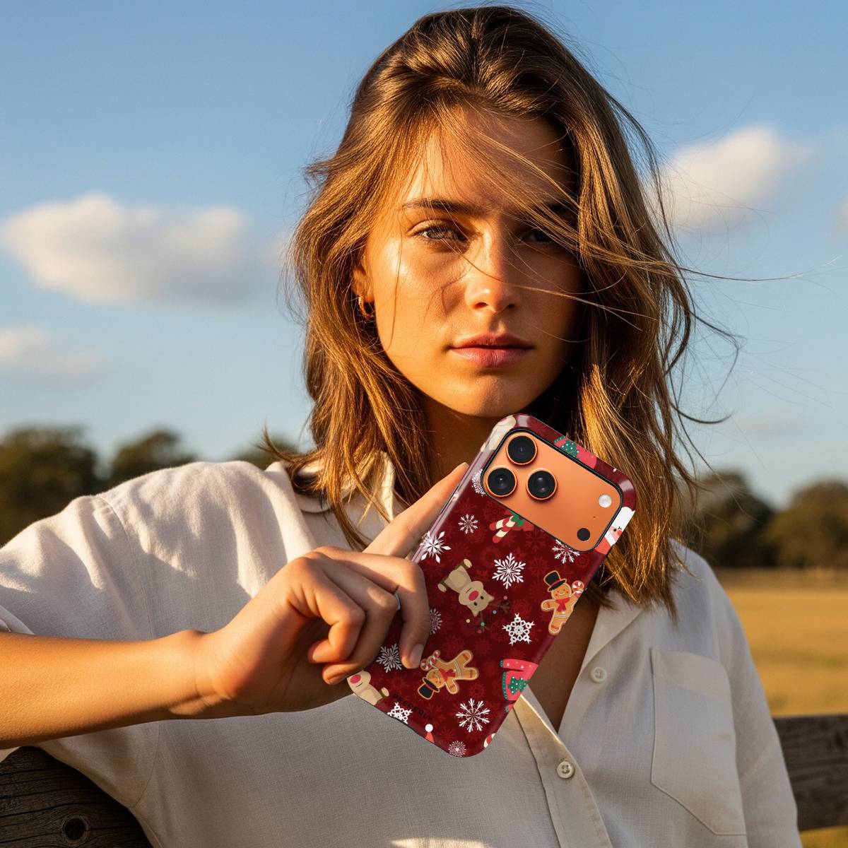 Celebrate the sweetest side of the holidays with this adorable Christmas-themed phone case. Featuring cheerful gingerbread men, playful reindeer, candy canes, and sparkling snowflakes scattered across a rich red background, it captures the cozy, cookie-filled joy of the season.