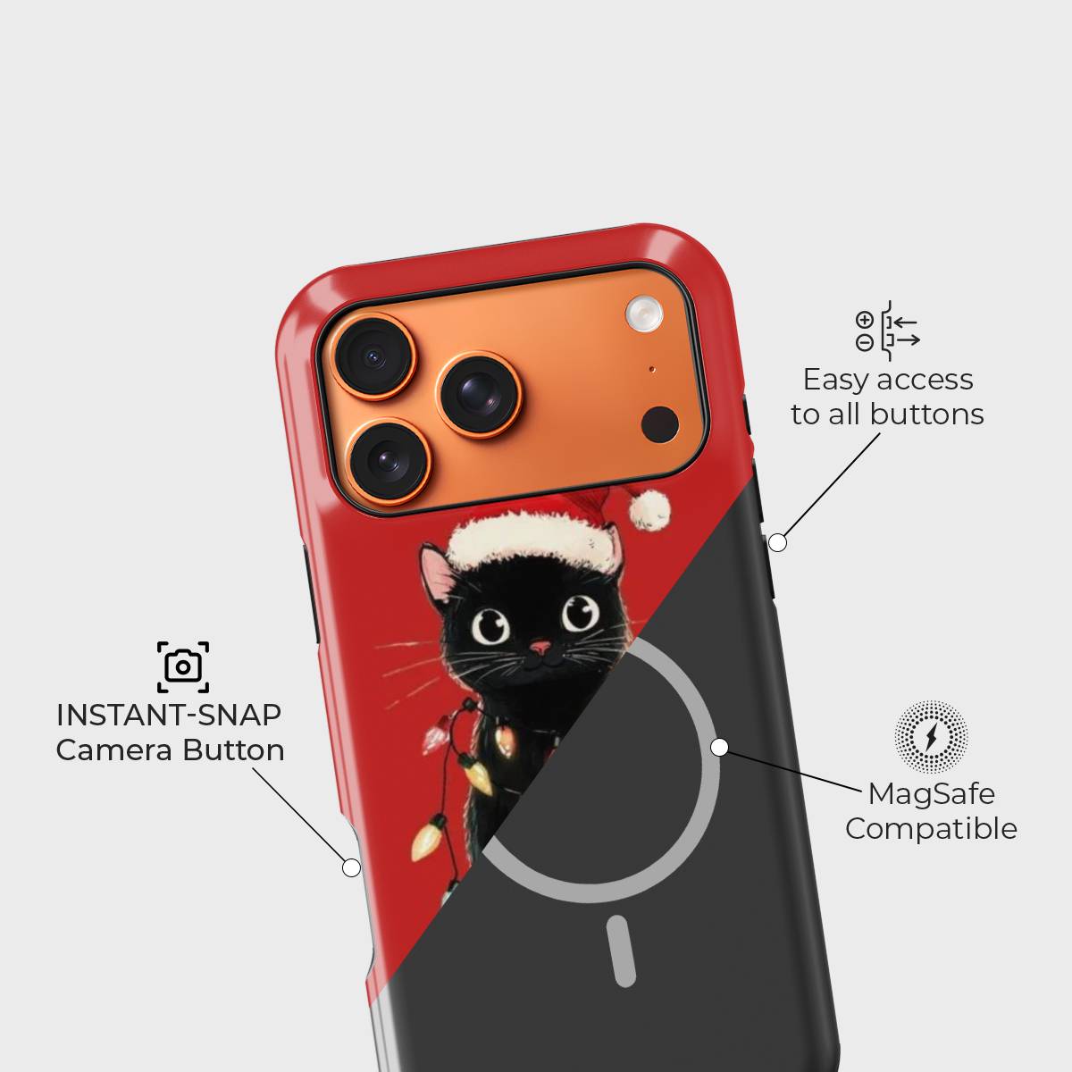 Set against a bold red backdrop, every detail pops with festive warmth and personality. Lightweight, protective, and irresistibly cute, Merry Meow is perfect for cat lovers and anyone who enjoys a touch of whimsical Christmas magic.