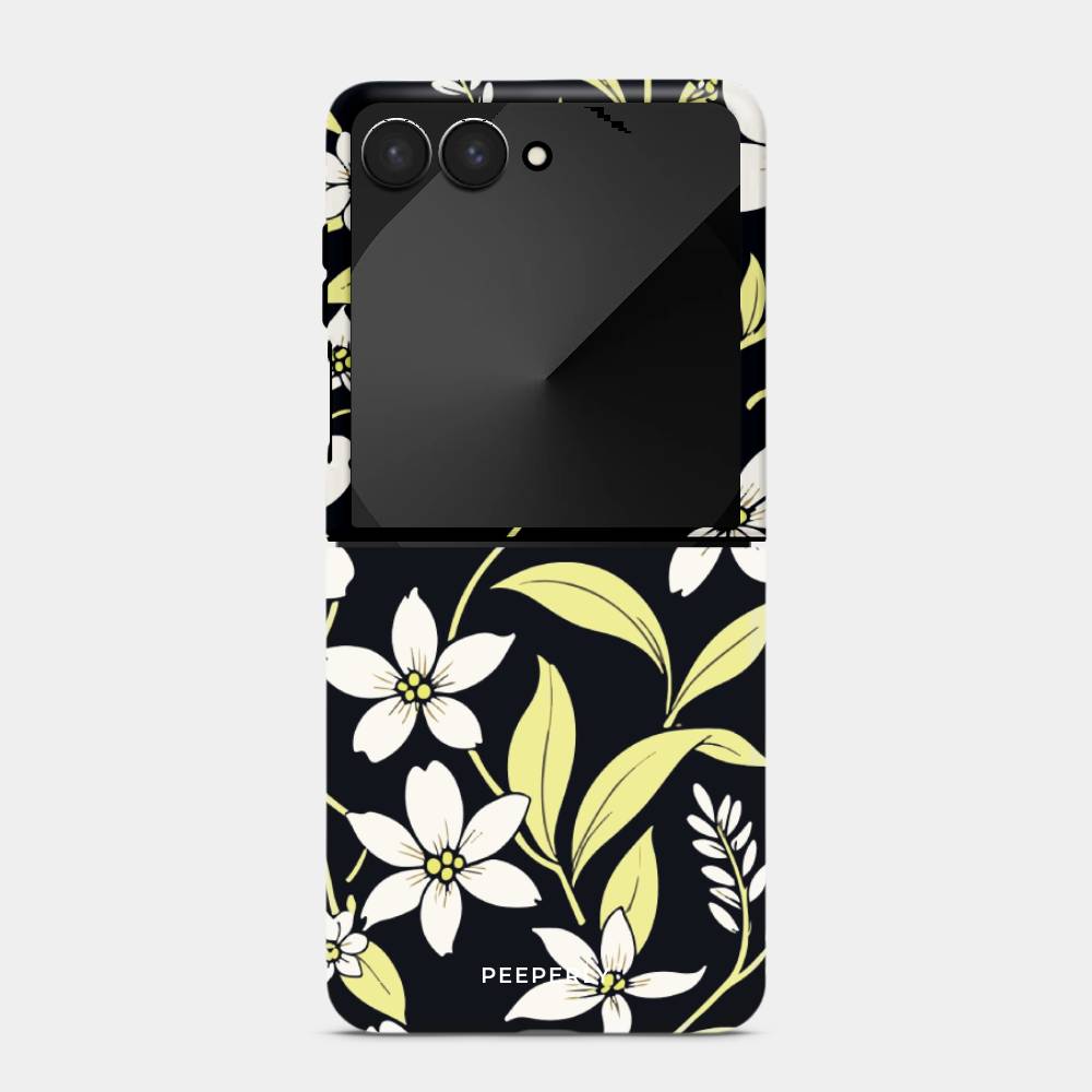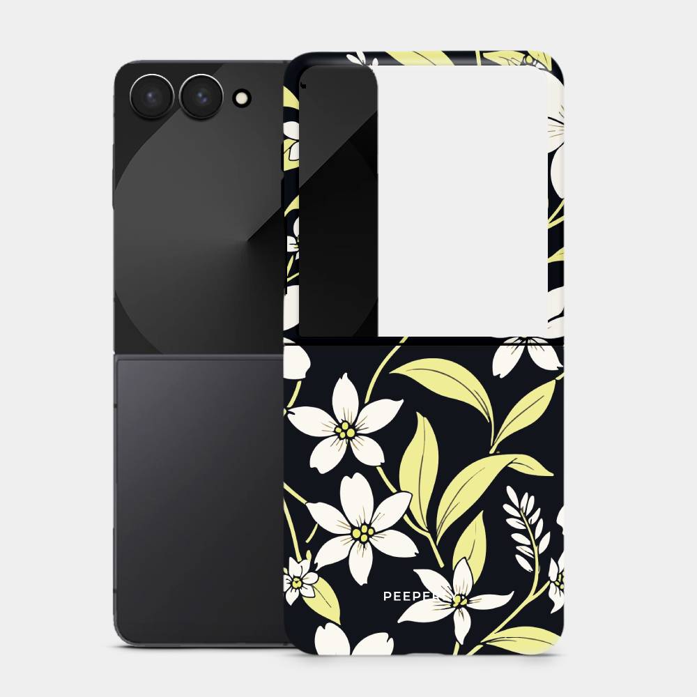 Embrace the elegance of nature after dusk with the Mystic Grace mobile case. Featuring a delicate arrangement of soft white blossoms and pale green leaves against a deep, midnight backdrop, this case captures the serene charm of a moonlit garden. Designed for those who love beauty with a bold edge, Mystic Grace blends sophistication with subtle mystique.