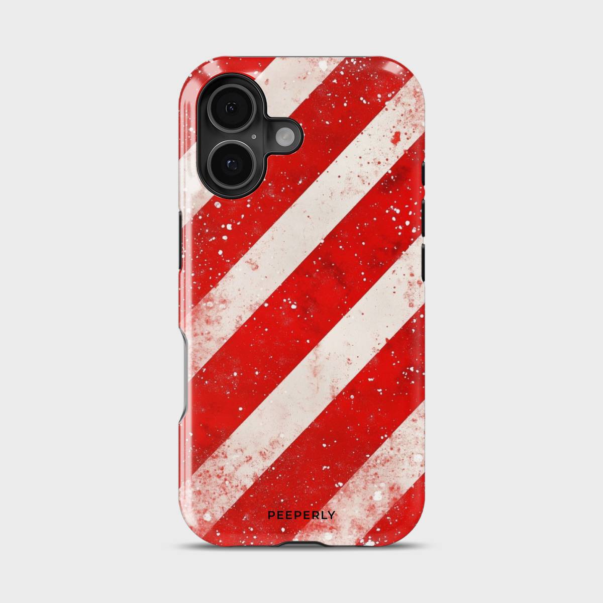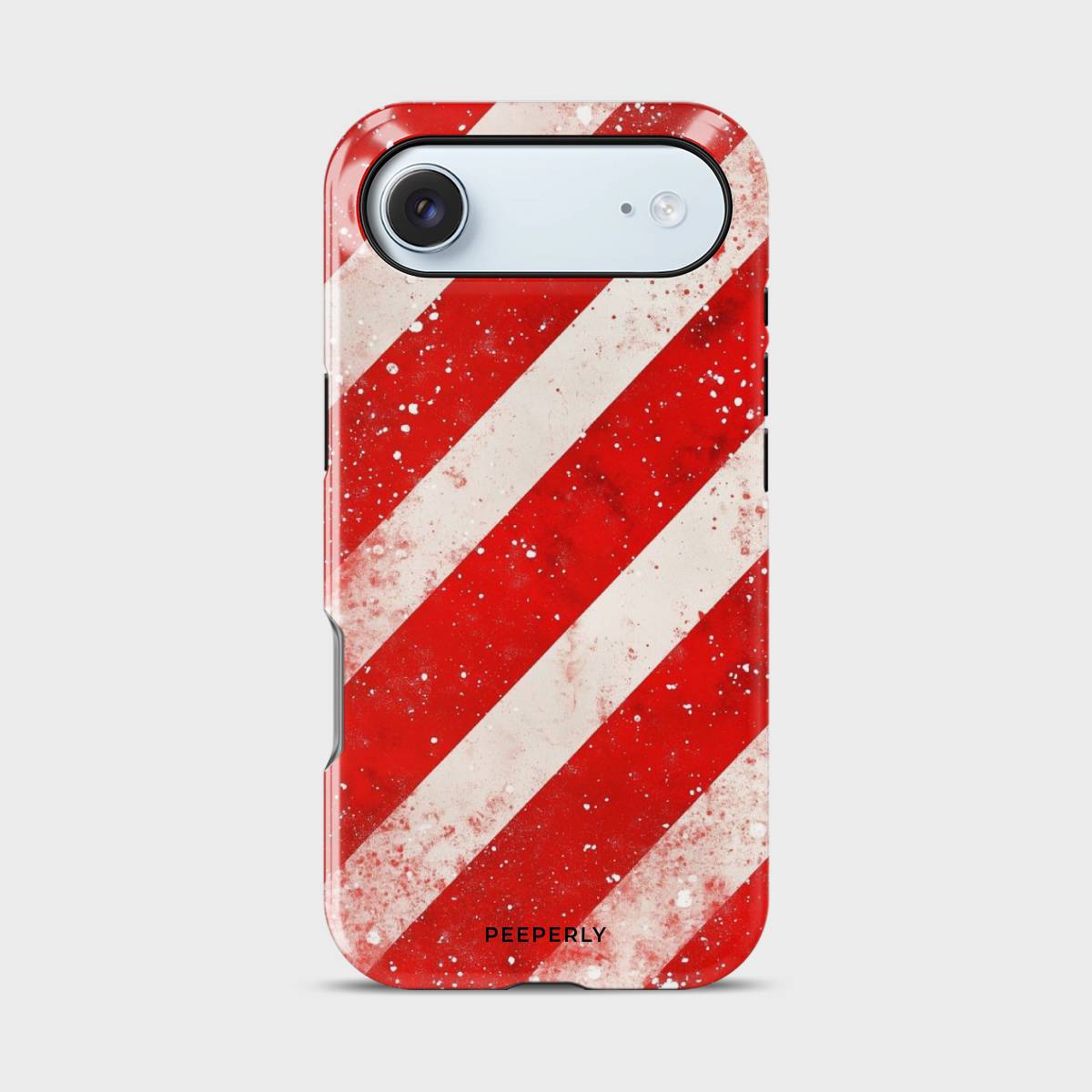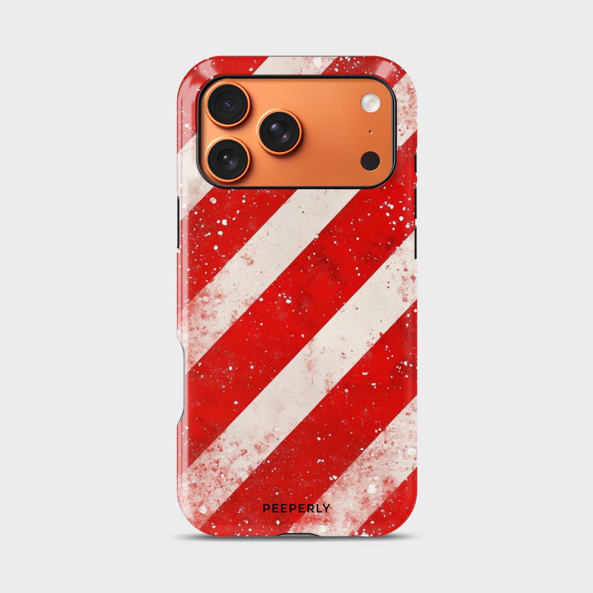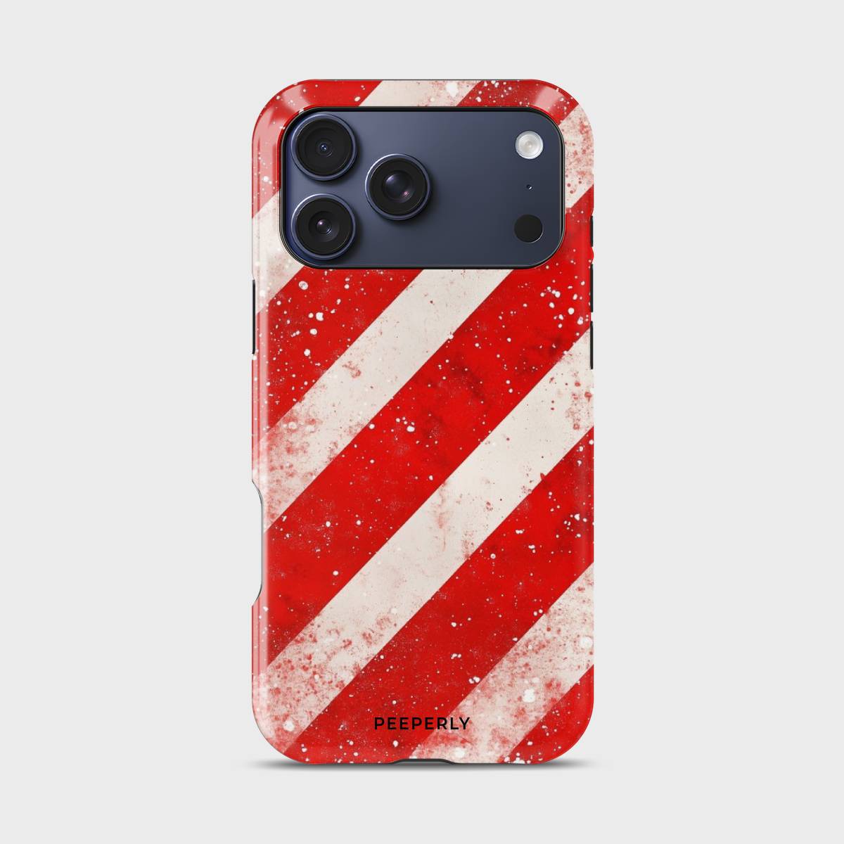 Add a burst of holiday cheer to your phone with this bold candy-cane–inspired case. Featuring vibrant red and white diagonal stripes dusted with a snowy, textured finish, it captures the sweet, playful spirit of the season.