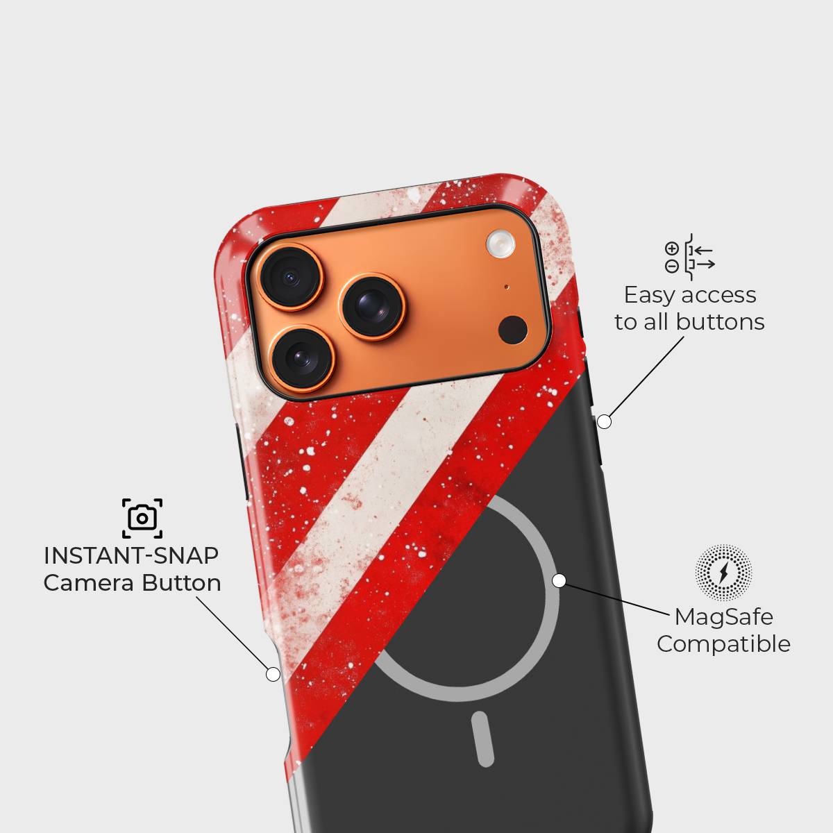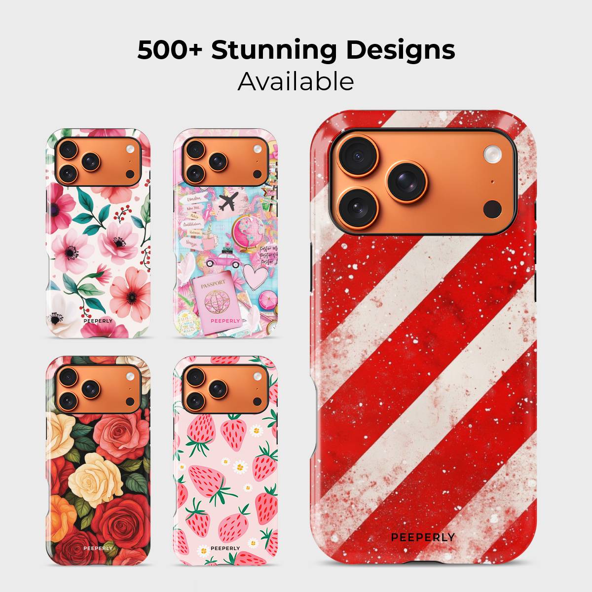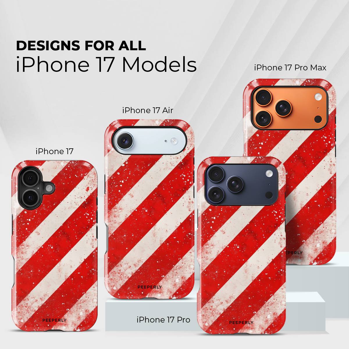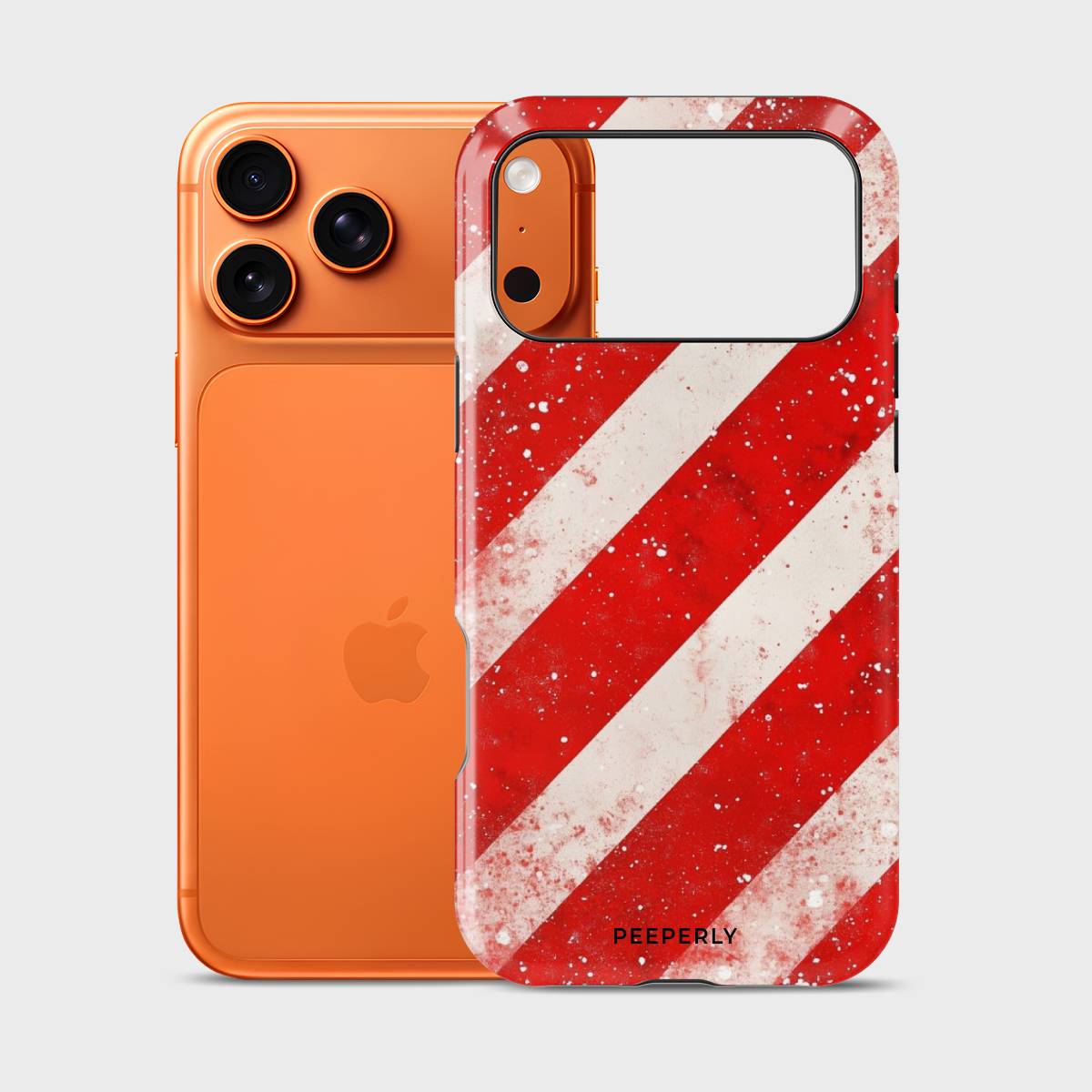 Add a burst of holiday cheer to your phone with this bold candy-cane–inspired case. Featuring vibrant red and white diagonal stripes dusted with a snowy, textured finish, it captures the sweet, playful spirit of the season.