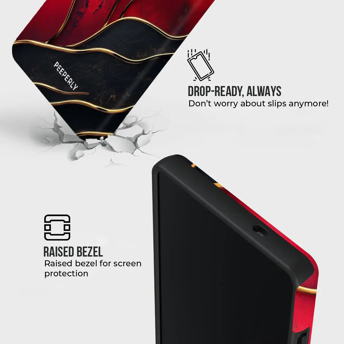 • Safety: Keeps the phone safe from accidental drops and scratches.