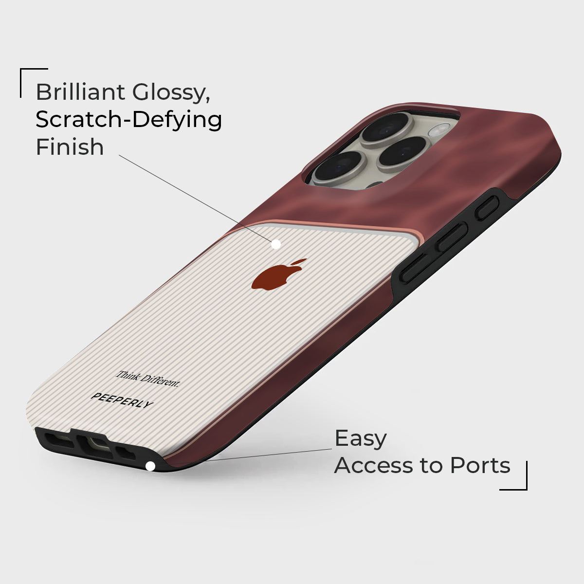 The Think Different case celebrates innovation and individuality — inspired by the spirit of creativity that dares to challenge the norm. Its dual-tone design blends a refined rose-gold metallic finish with a soft ivory striped texture, symbolizing the harmony between bold thinking and classic elegance.