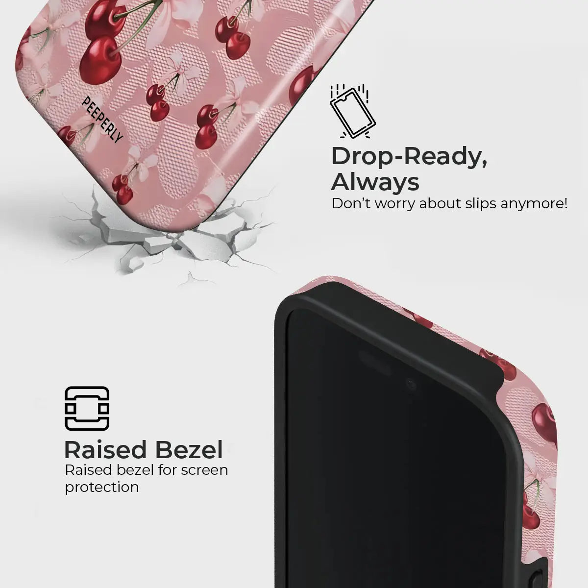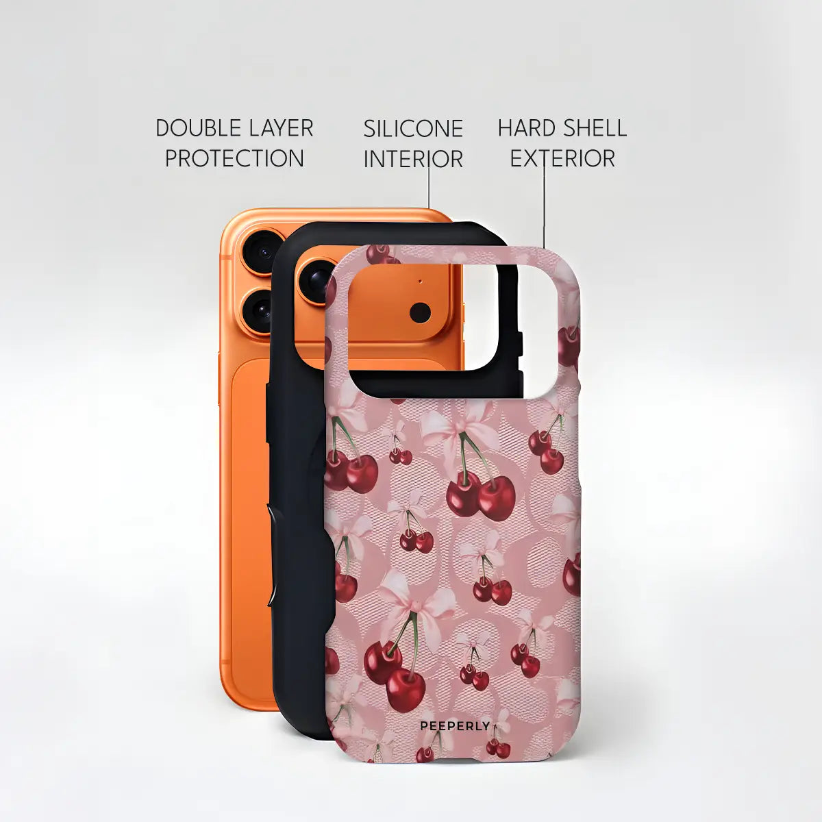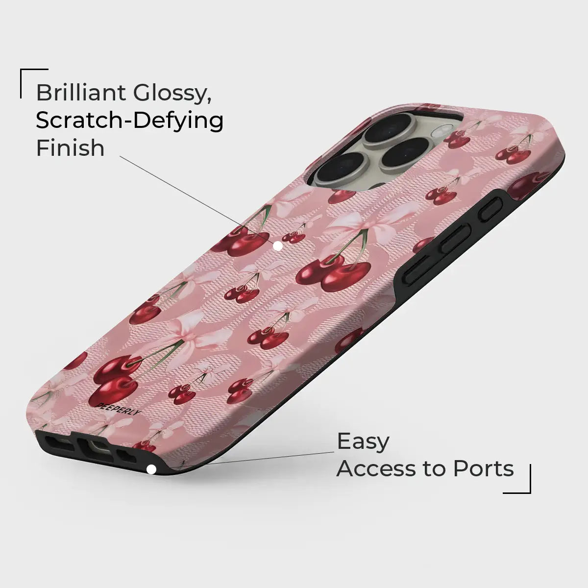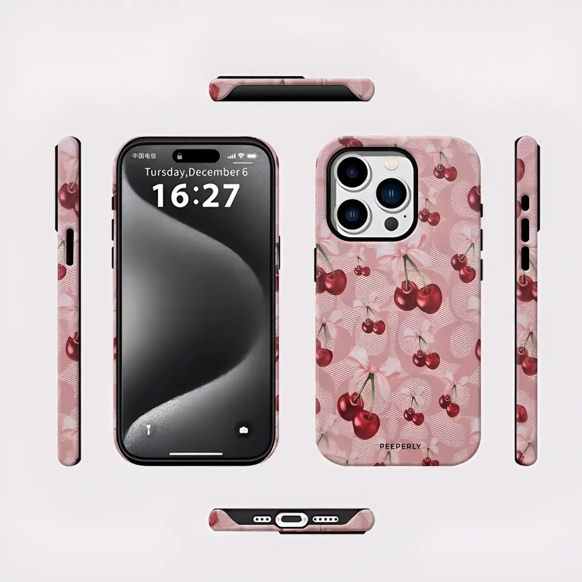 A romantic fusion of glossy cherries, soft pink bows, and a delicate lace-inspired backdrop. Lace Cherry Bows blends vintage charm with playful sweetness, creating an elegant yet whimsical look that feels both cozy and couture.