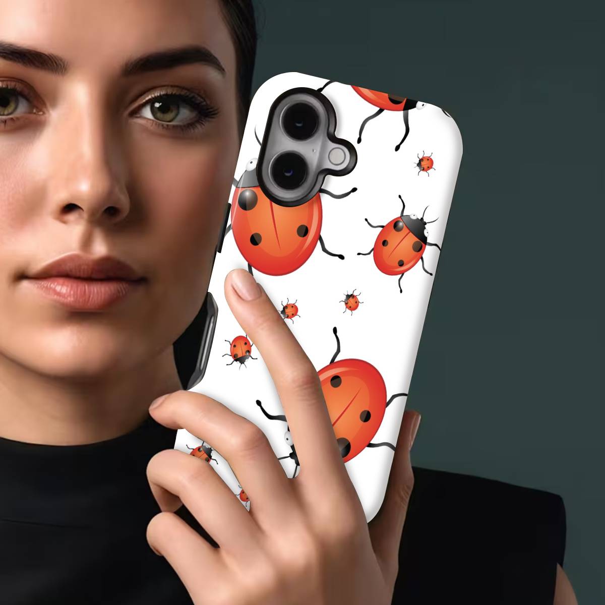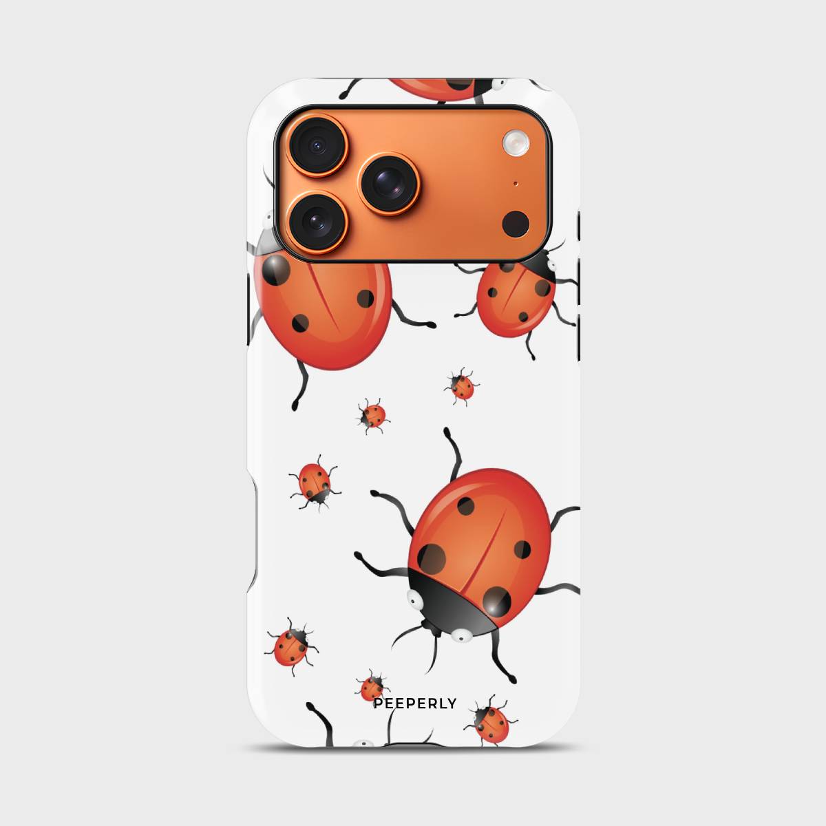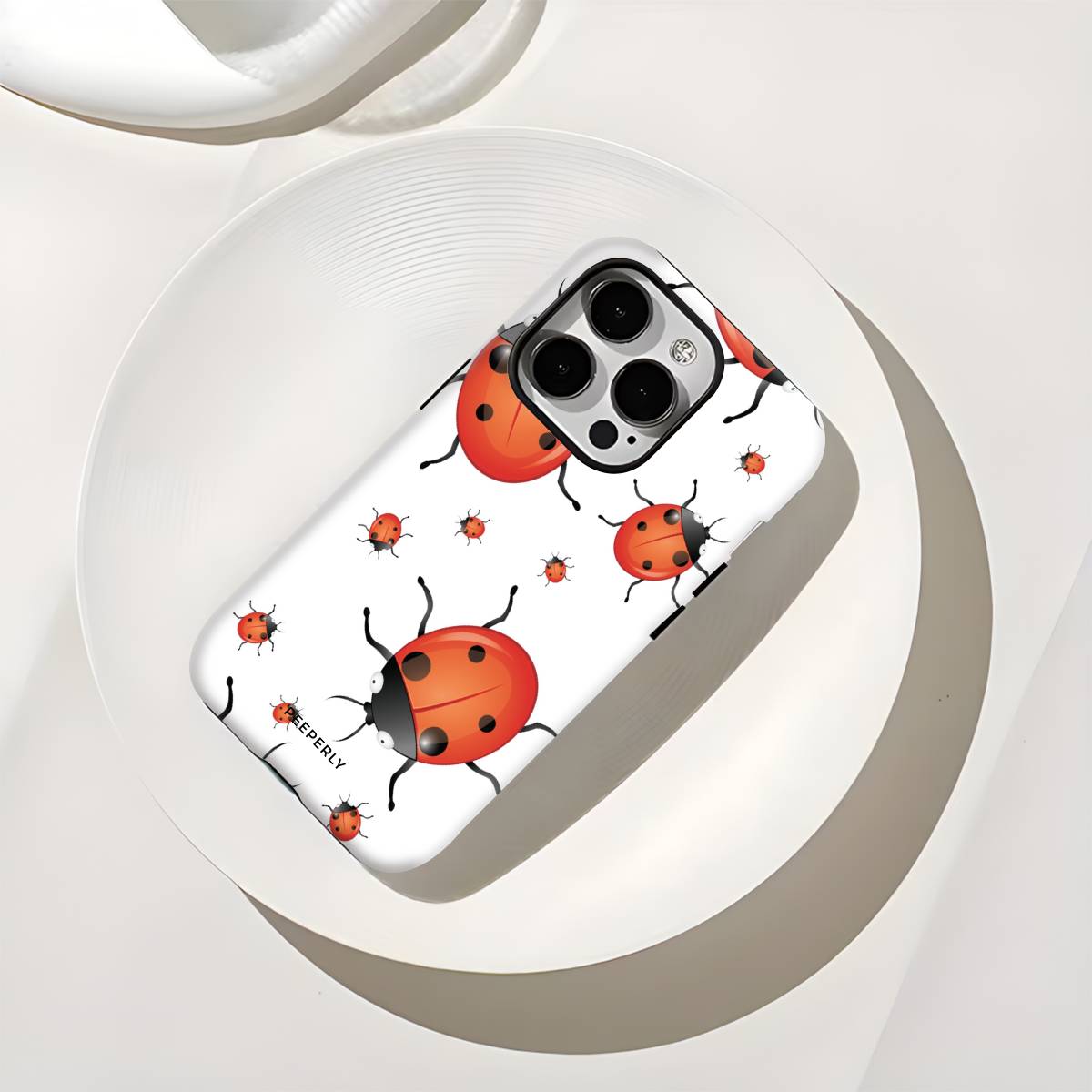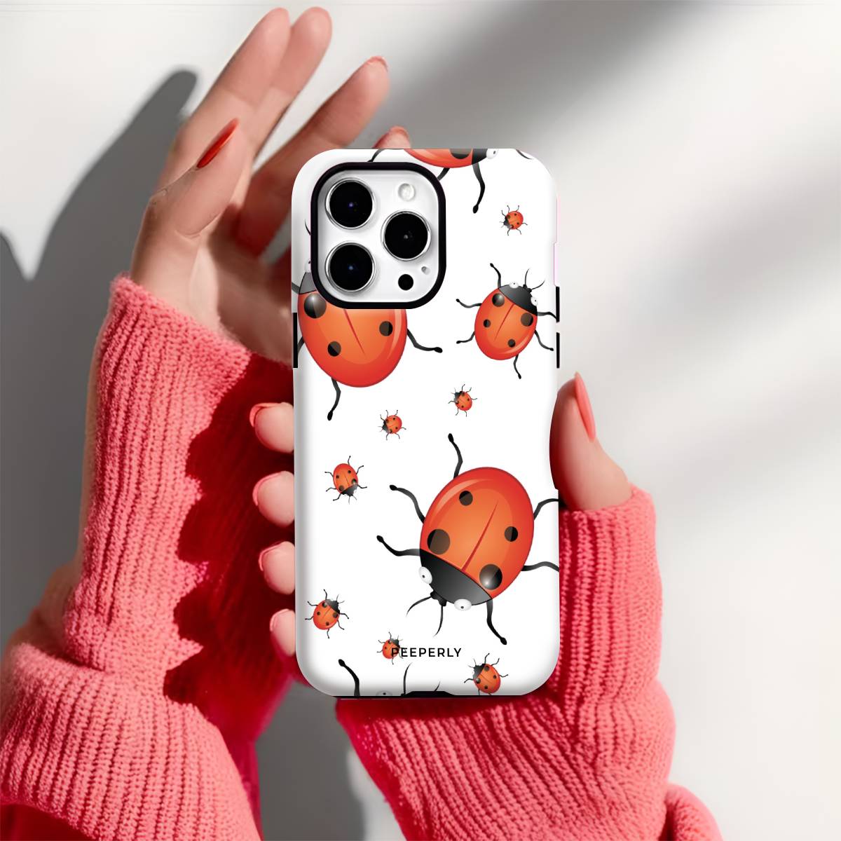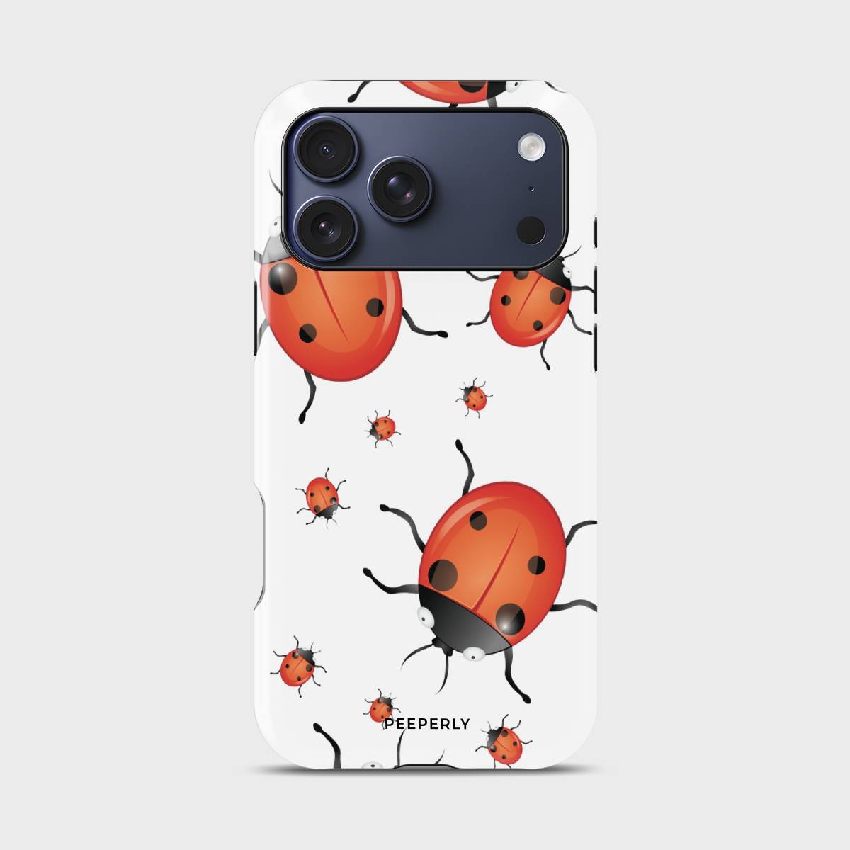 Playful and eye-catching, the Oily Bugs phone case features glossy, oil-paint–style ladybugs scattered across a crisp white background. With bold reds, smooth highlights, and a fun oversized-meets-mini pattern, this design brings a cheerful, artsy charm that feels lively yet clean.