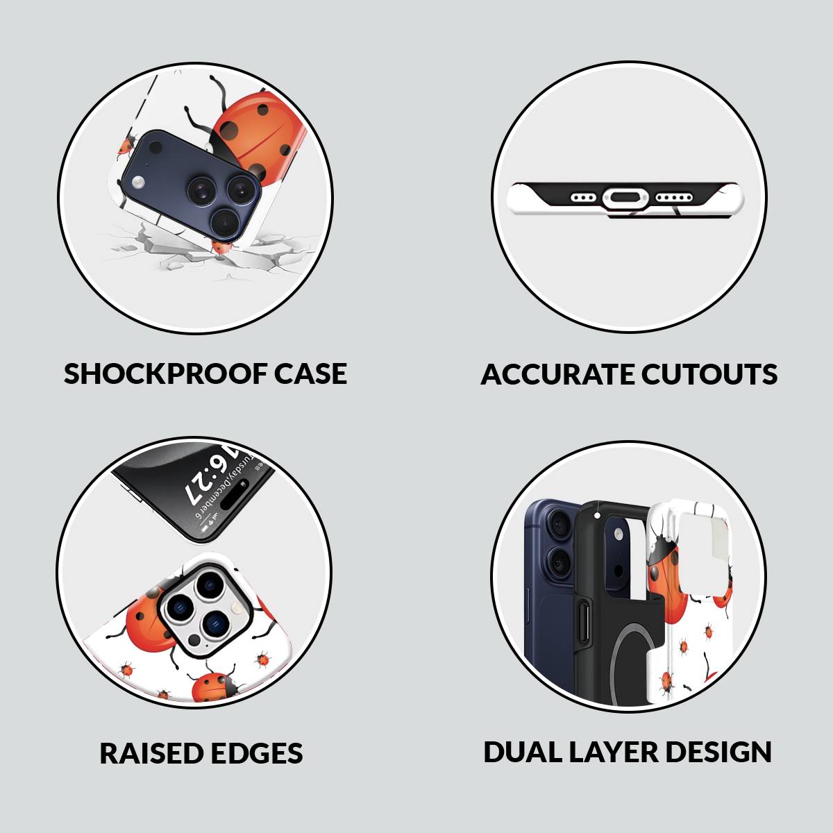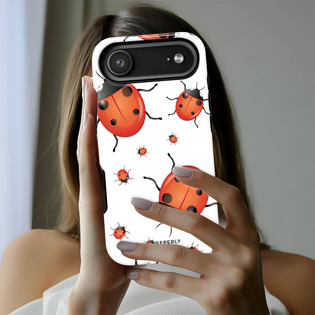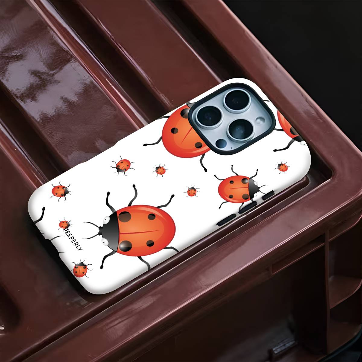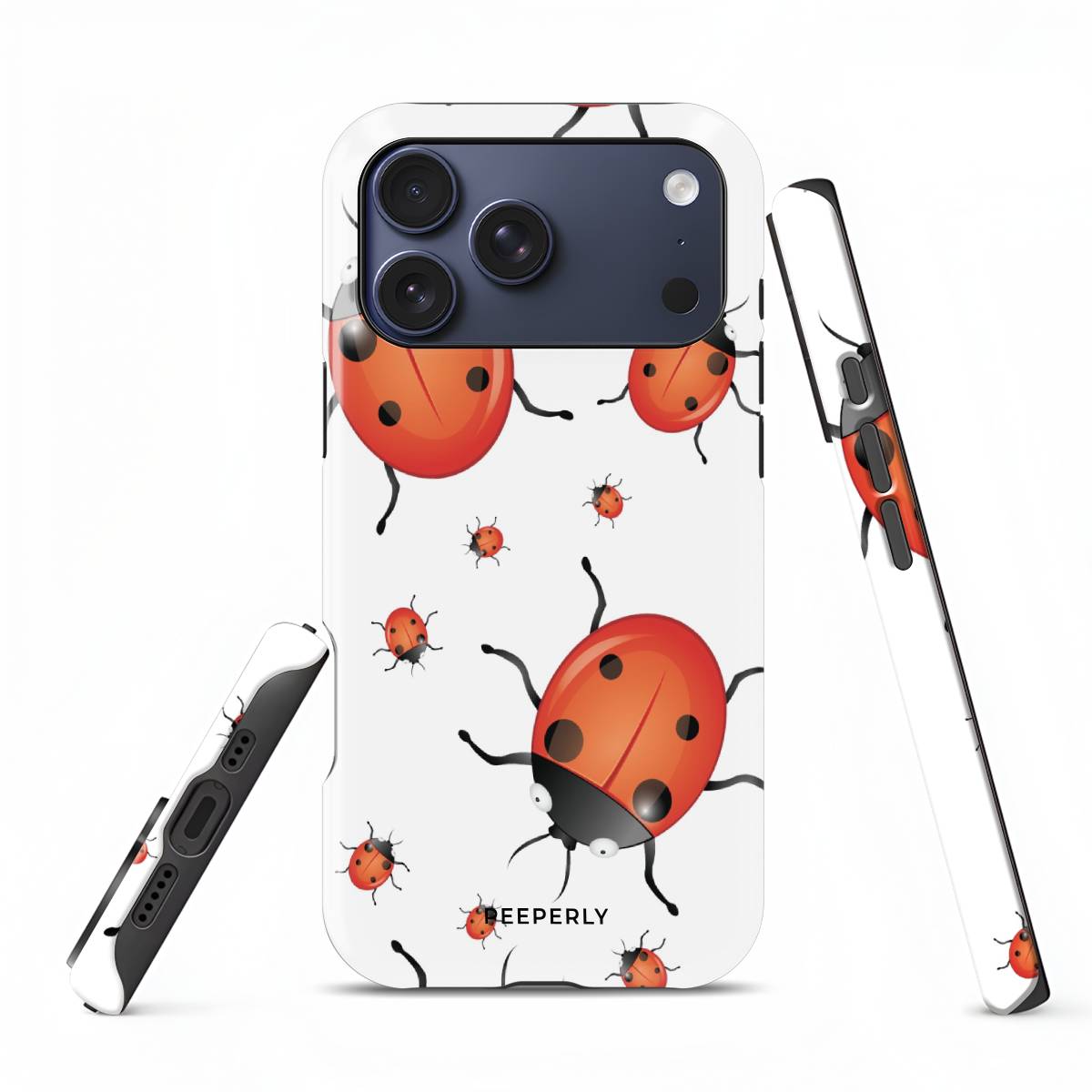 Playful and eye-catching, the Oily Bugs phone case features glossy, oil-paint–style ladybugs scattered across a crisp white background. With bold reds, smooth highlights, and a fun oversized-meets-mini pattern, this design brings a cheerful, artsy charm that feels lively yet clean.