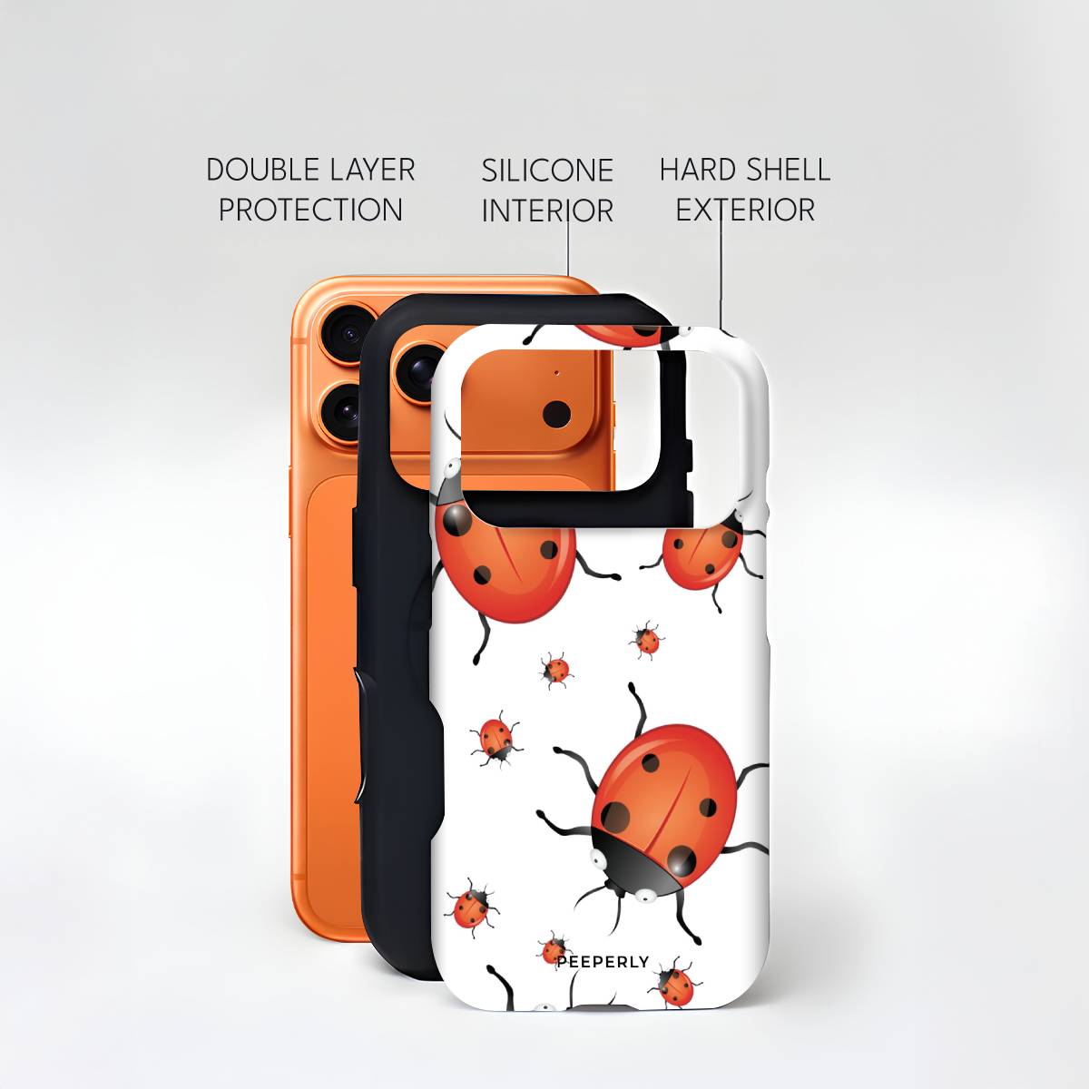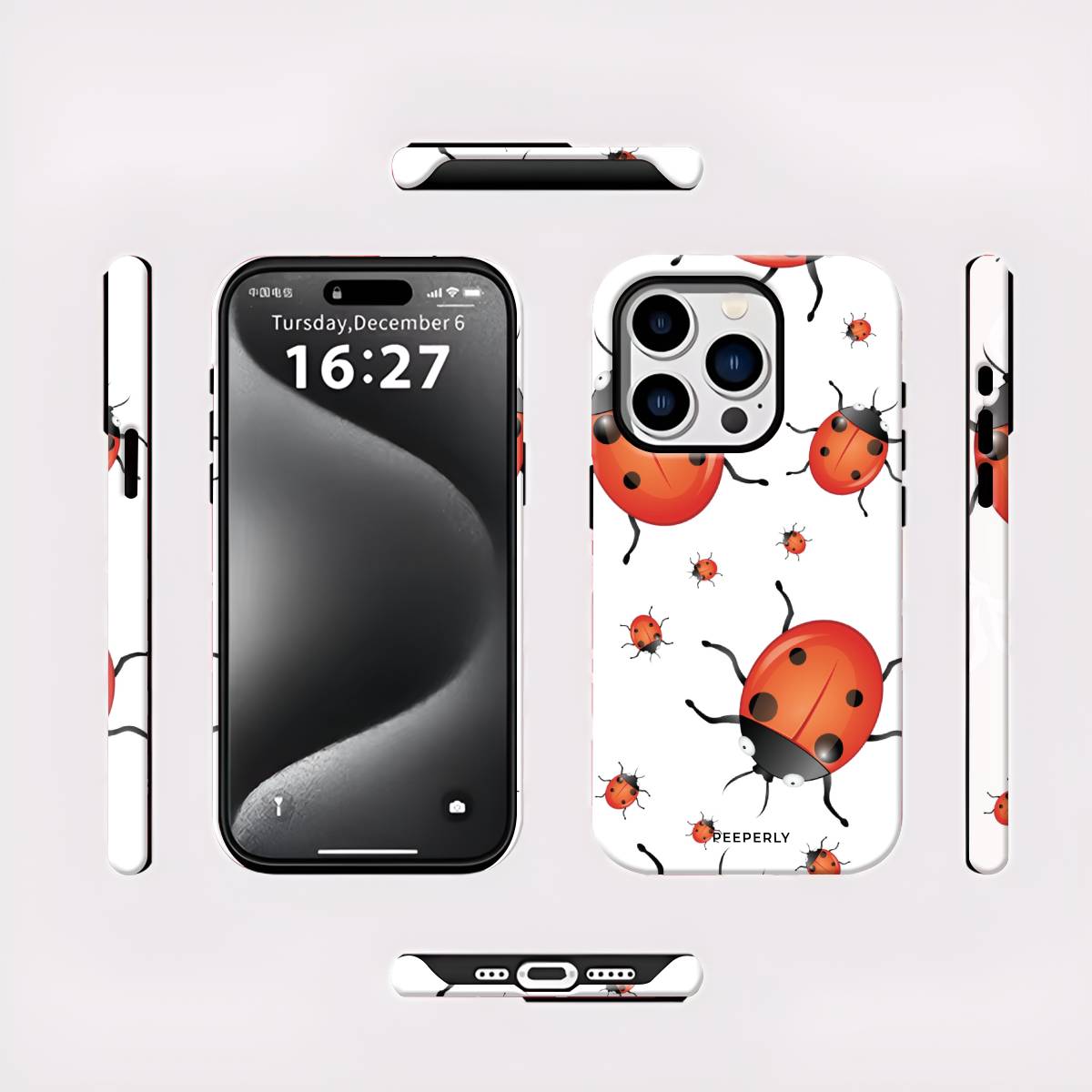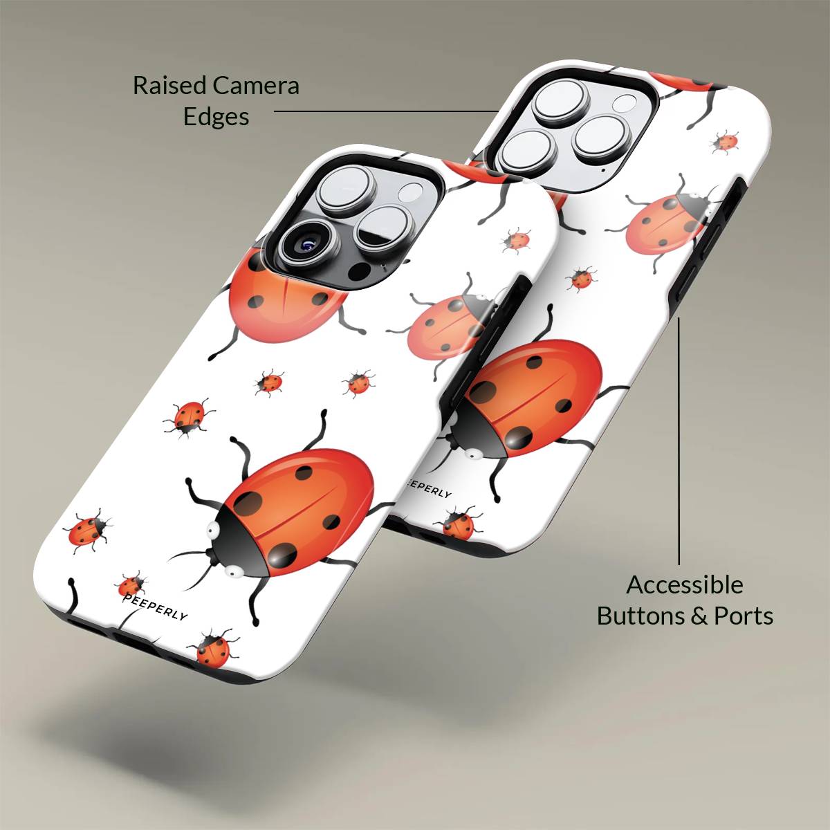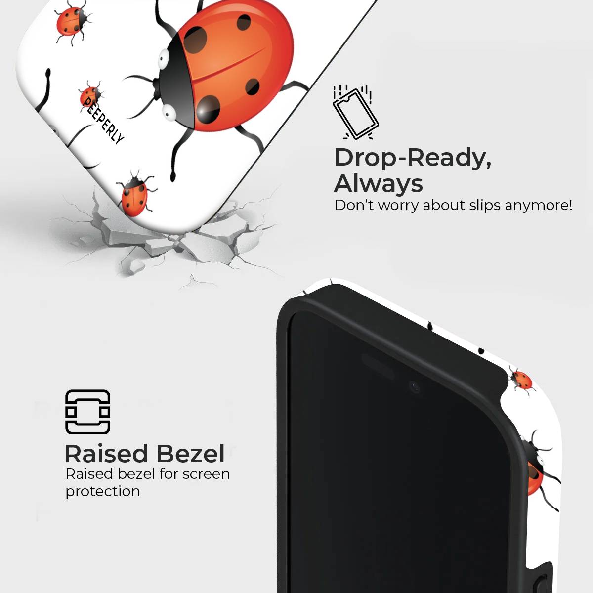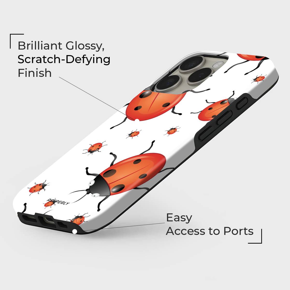 Playful and eye-catching, the Oily Bugs phone case features glossy, oil-paint–style ladybugs scattered across a crisp white background. With bold reds, smooth highlights, and a fun oversized-meets-mini pattern, this design brings a cheerful, artsy charm that feels lively yet clean.