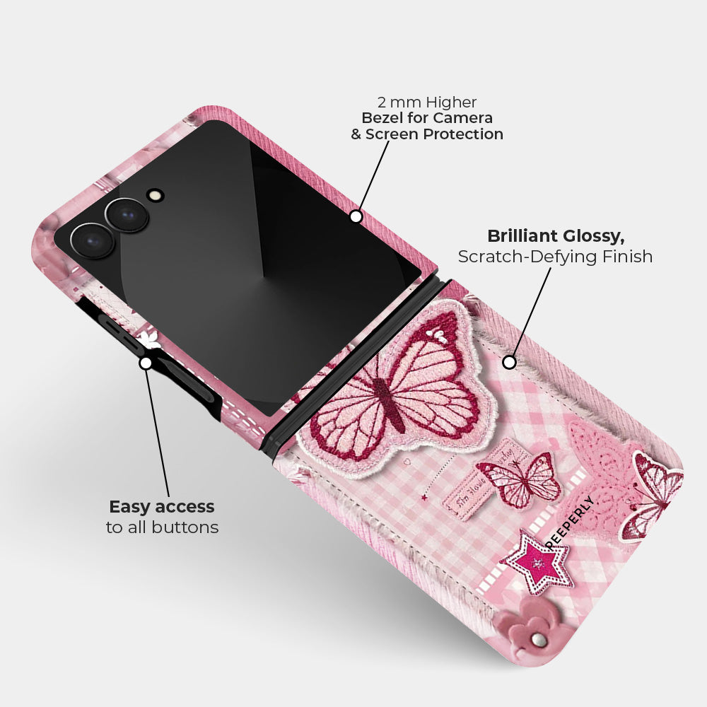 A soft pastel design featuring delicate pink butterflies in mid-flutter, layered over a gentle blush backdrop. Subtle textures and dreamy tones create a light, romantic aesthetic that feels calm, graceful, and effortlessly charming—perfect for adding a touch of elegance to your everyday style.