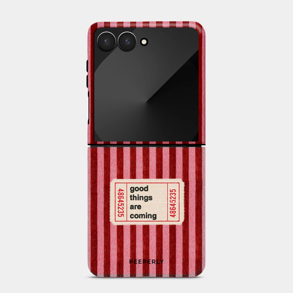 The Kind Forecast case is a gentle reminder that brighter days are on the way. Featuring a warm red striped backdrop with a charming vintage-style ticket that reads “good things are coming,” this design radiates optimism, comfort, and quiet confidence. Subtle heart details add a touch of affection, making the case feel like a small note of encouragement you carry with you every day.
