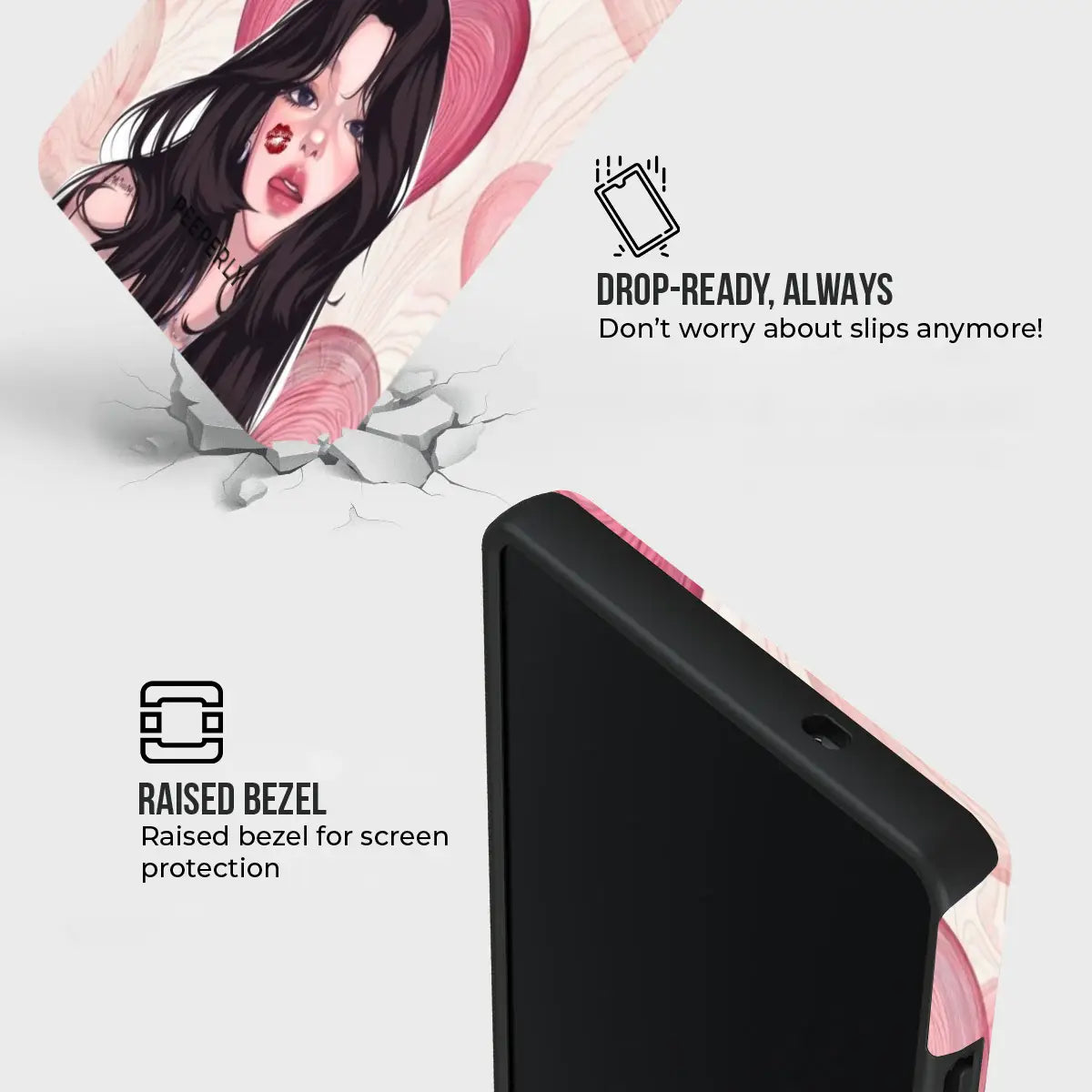 A dreamy blend of soft blush tones and romantic heart motifs, Lovestruck Glow captures the feeling of being beautifully caught in a moment of love. The elegant illustration and warm pink hues create a gentle, glowing aesthetic that’s equal parts confidence and charm—perfect for those who wear their heart with style.
