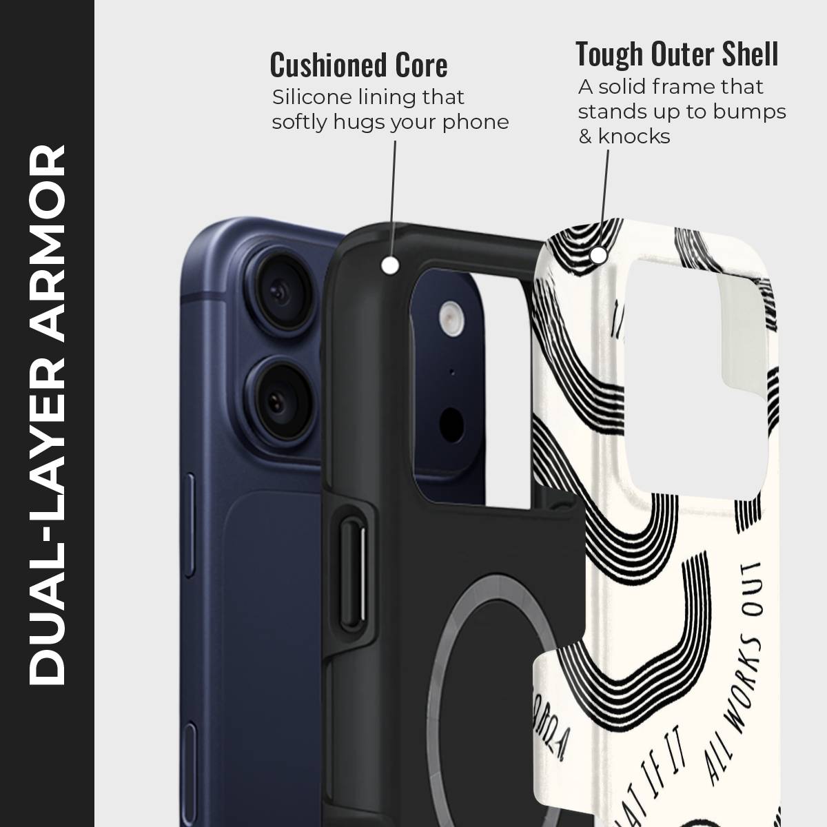 - Double-Layer Protection: Silicon interior cushions impacts + rigid PC exterior shields against drops and scratches.
