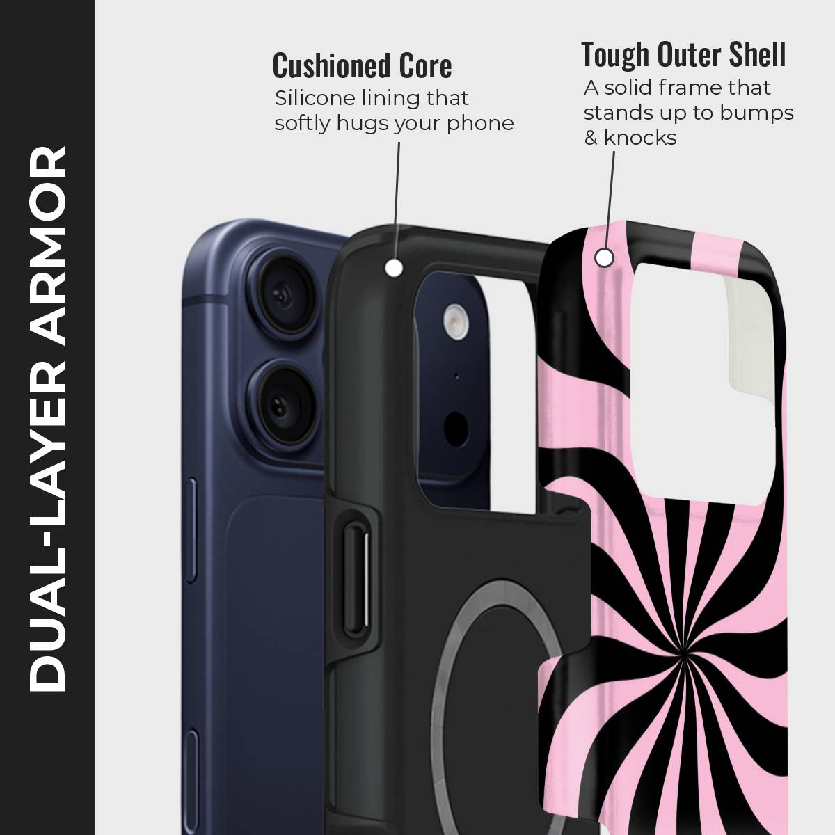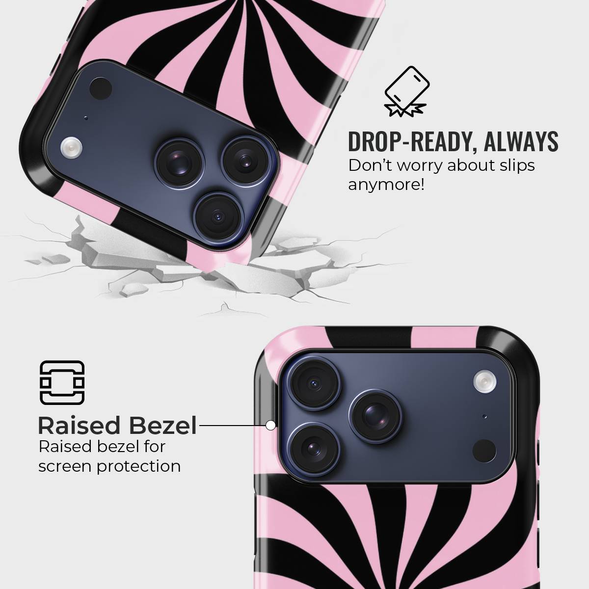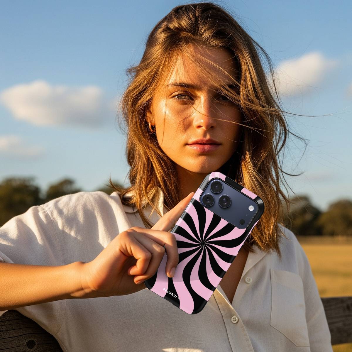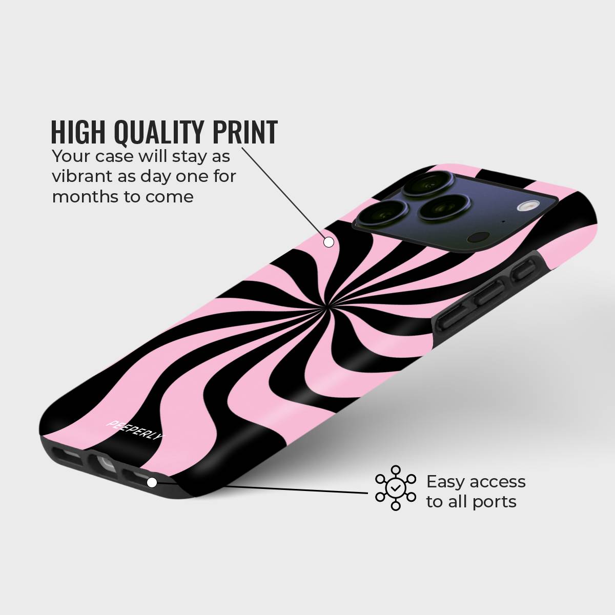 Swirled Illusion is not just a phone case — it’s a visual experience. Designed with hypnotic black and pastel pink swirls, this case creates a stunning illusion of motion that instantly grabs attention.