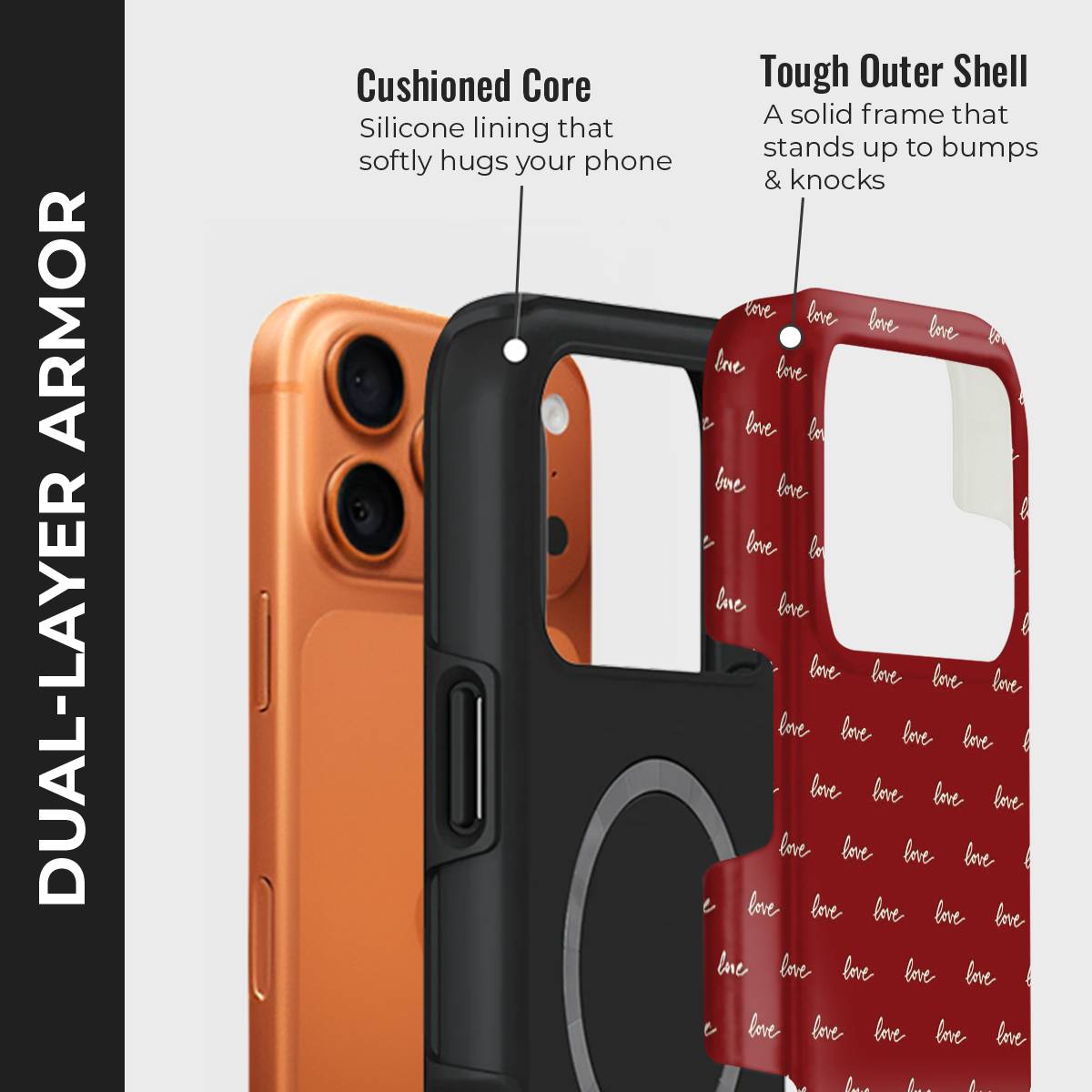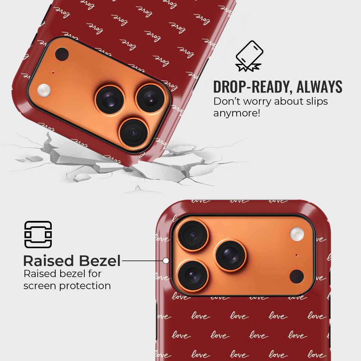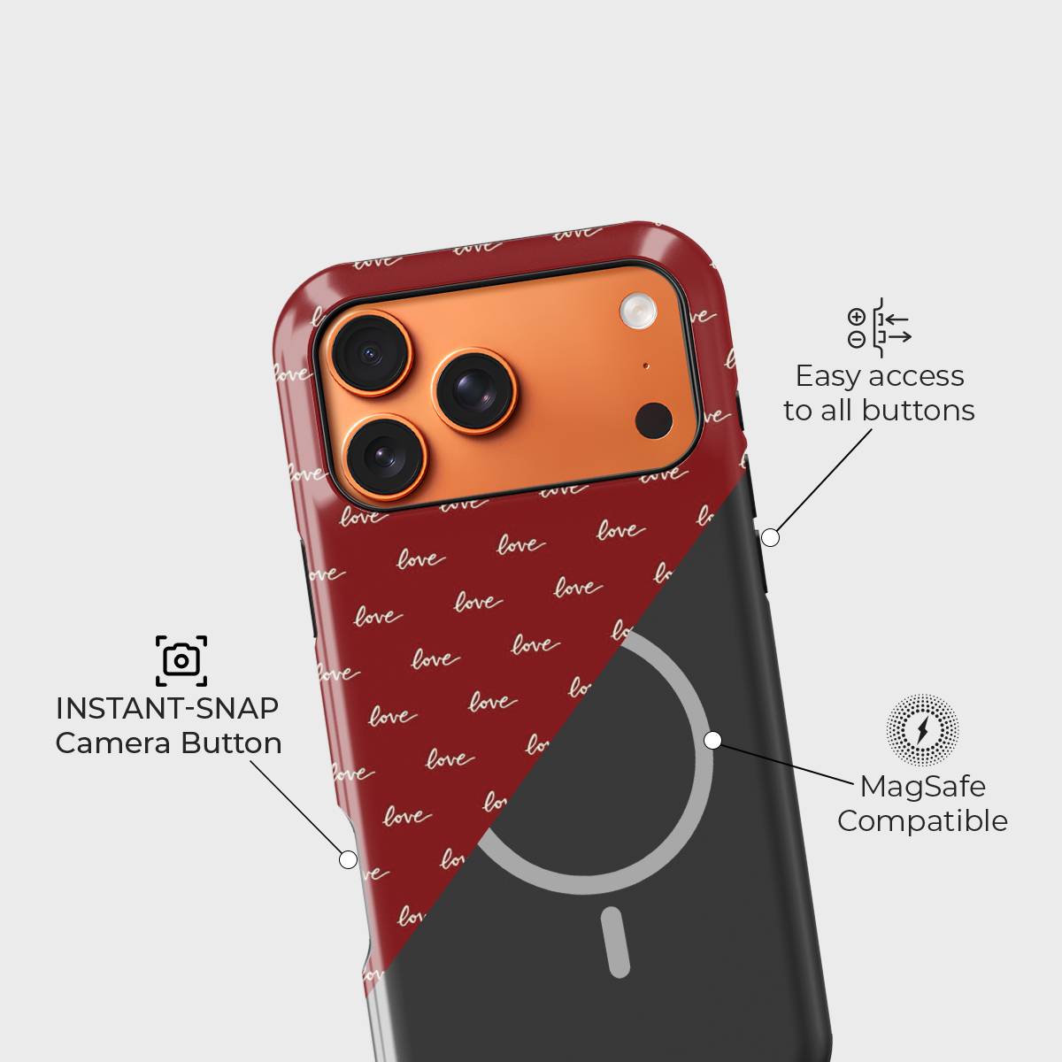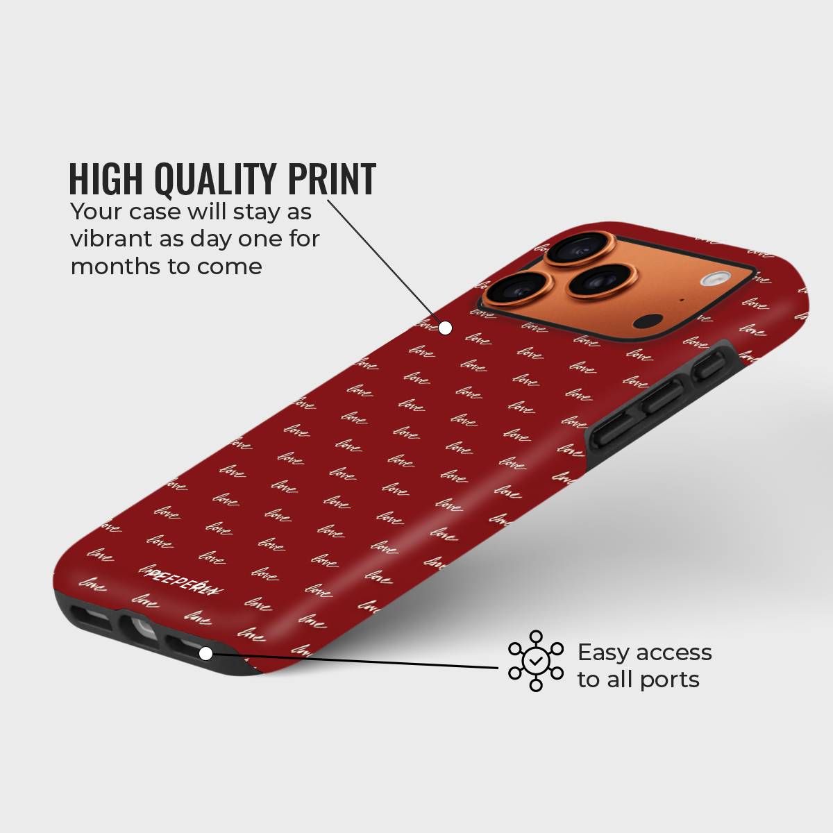 Wrap your phone in timeless affection with the Endless Love case. Featuring a rich crimson background adorned with handwritten “love” scripts, this design captures the warmth of endless passion and the elegance of simplicity.