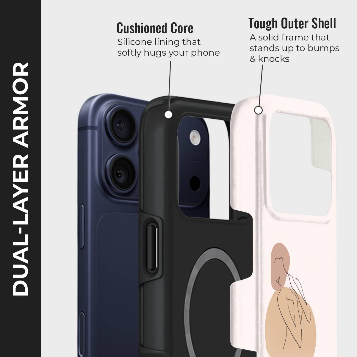 • Double-Layer Protection: Silicon interior cushions impacts + rigid PC exterior shields against drops and scratches.