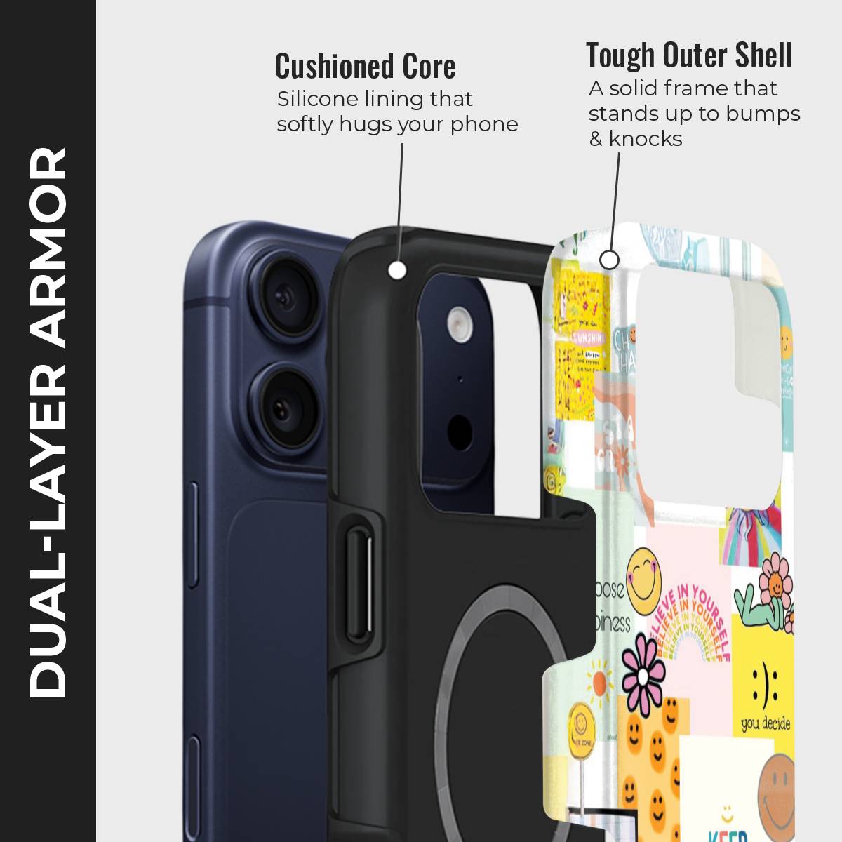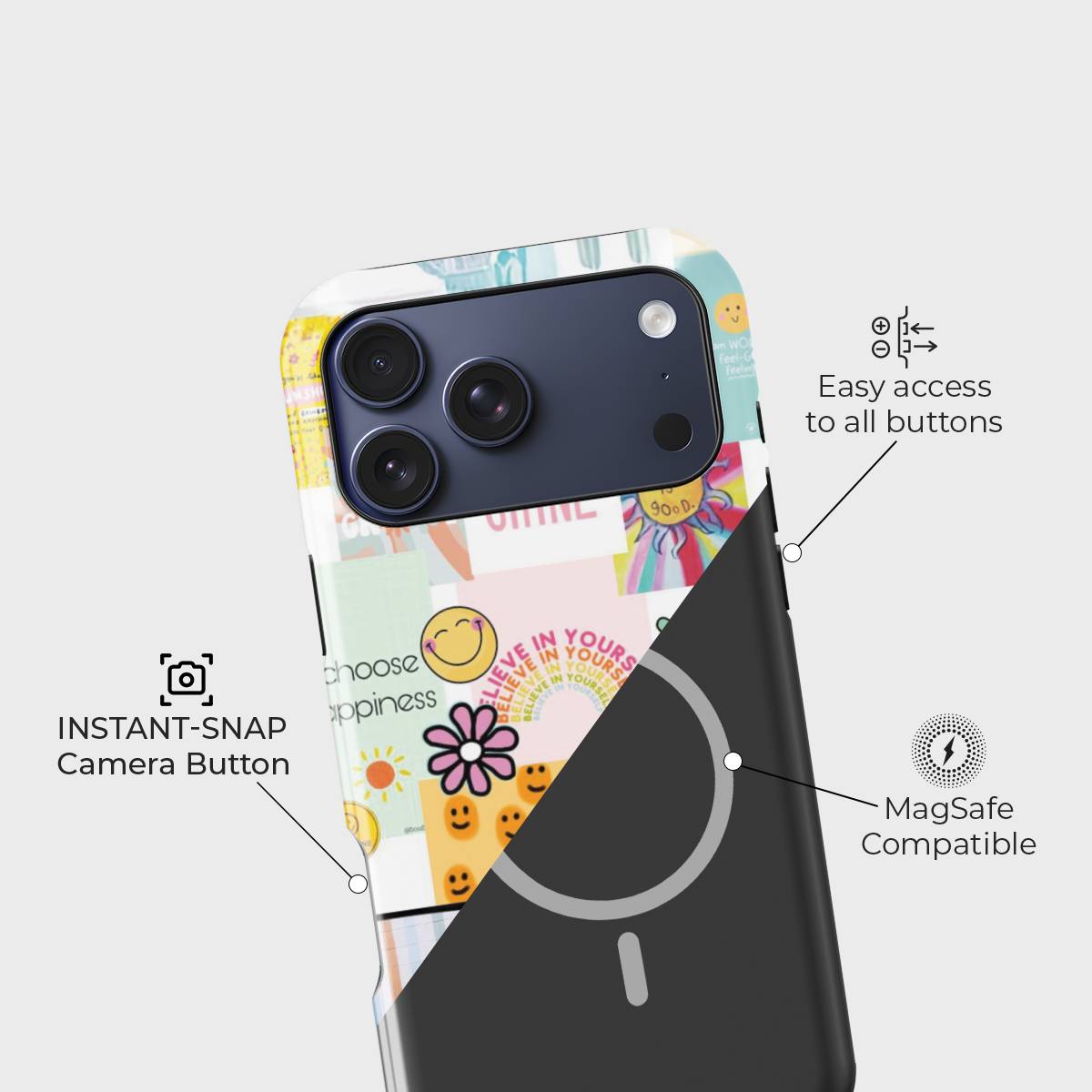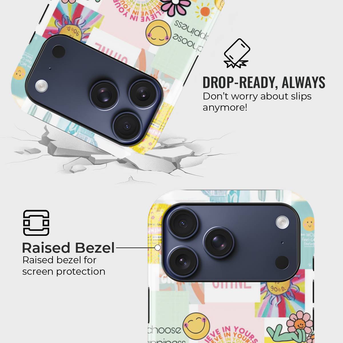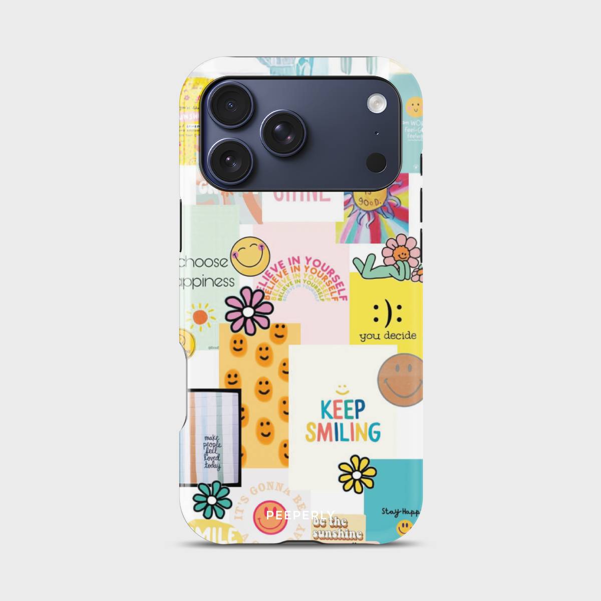 Positive Pop bursts with uplifting energy, featuring a vibrant mix of smiley faces, cheerful doodles, and inspiring notes that spread good vibes wherever you go. This playful design is a daily reminder to choose happiness and keep smiling, making your phone as joyful and expressive as your personality.
