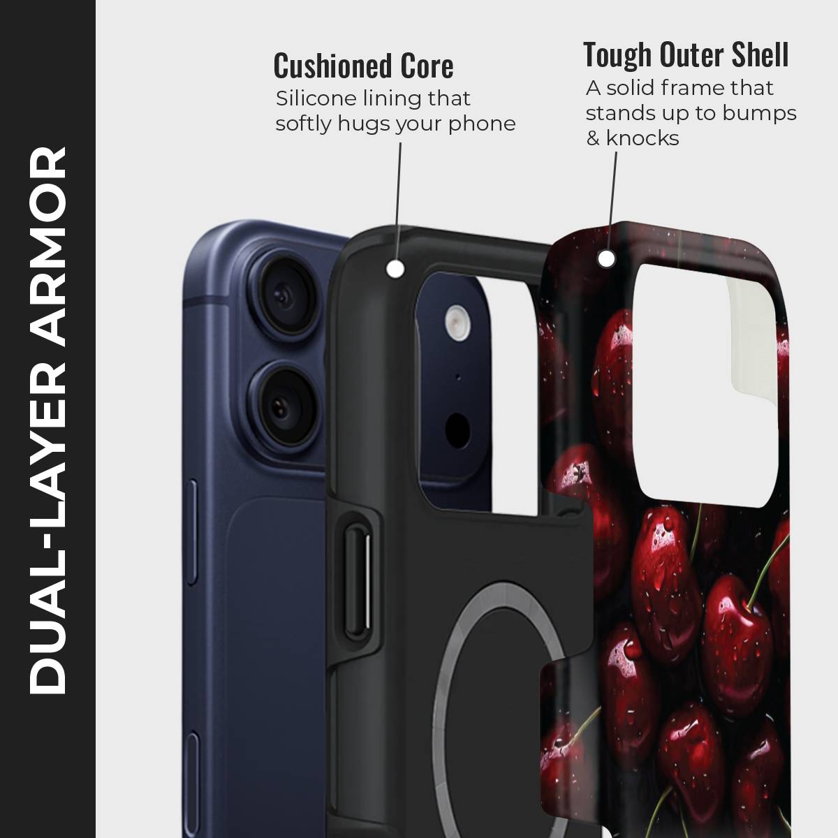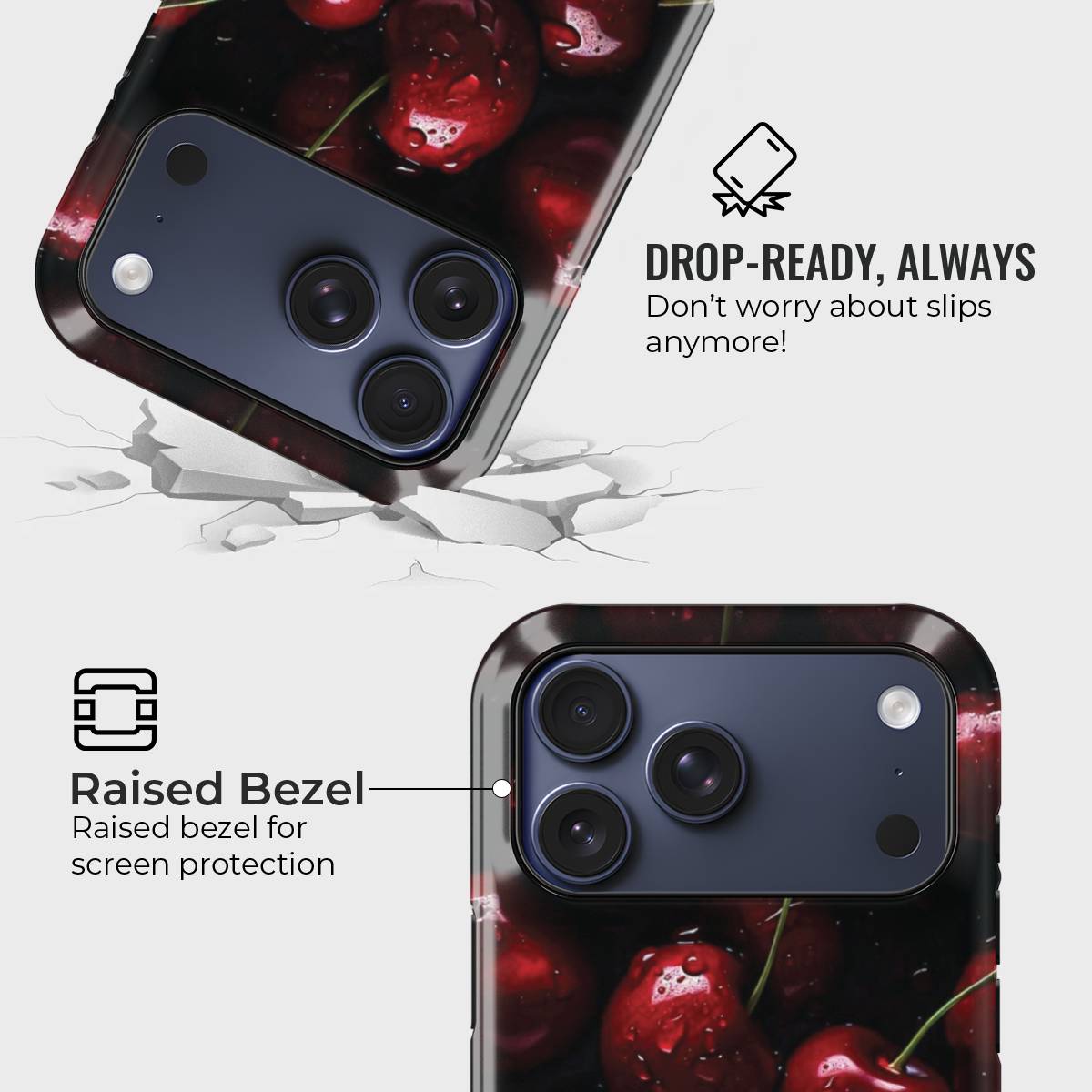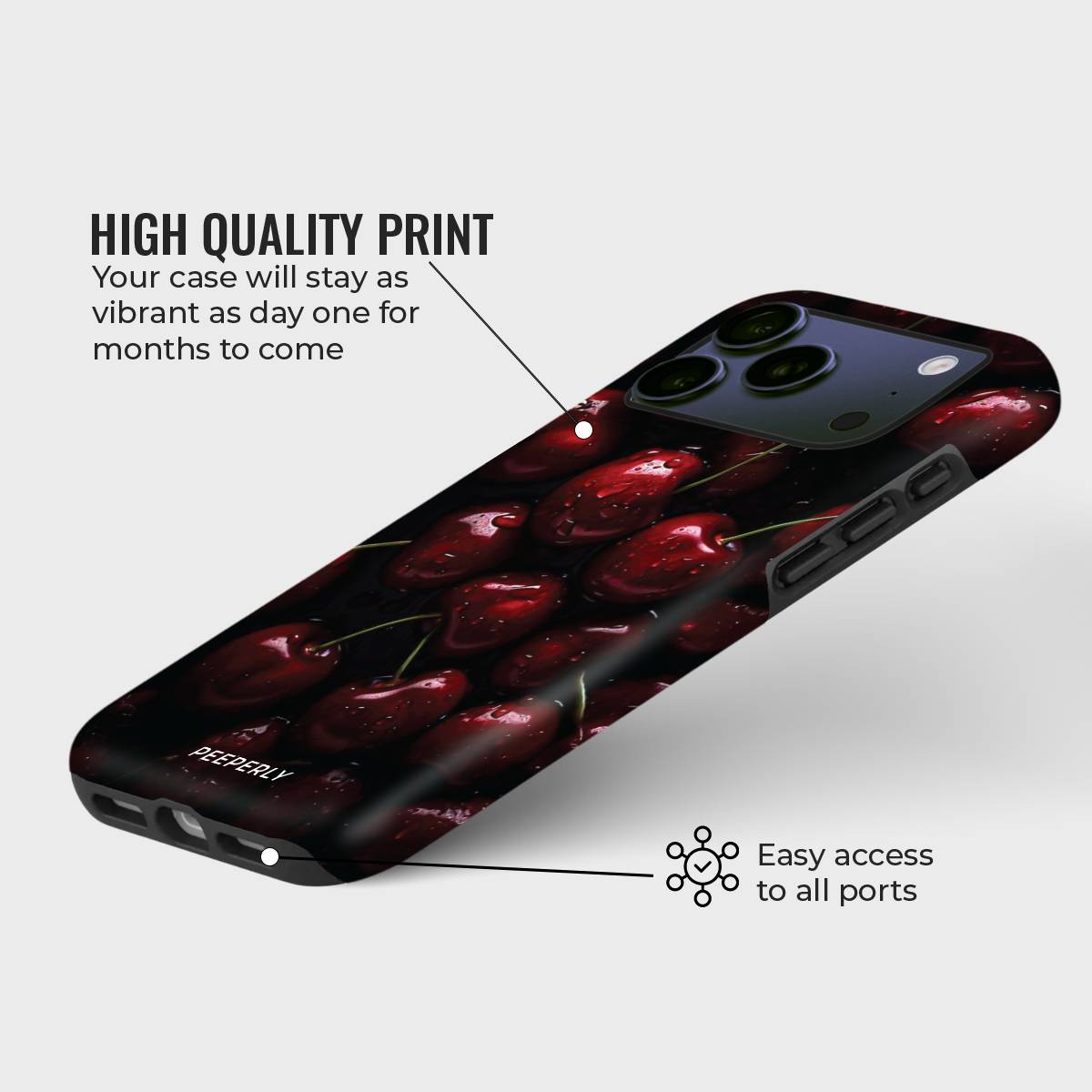 Cherry Bliss blends bold elegance with a playful twist. Featuring glossy cherries in stunning detail, this case is both striking and stylish, making it an irresistible accessory. It’s a refreshing reminder of sweetness and charm every time you hold your phone.