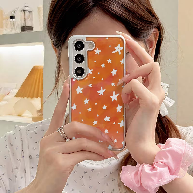 Sunny Stars radiates warmth, joy, and playful energy. A cheerful orange backdrop scattered with bright star accents creates a lively, uplifting design that feels light and happy. Perfect for adding a pop of color and positivity to your everyday look, this case is made to shine wherever you go.