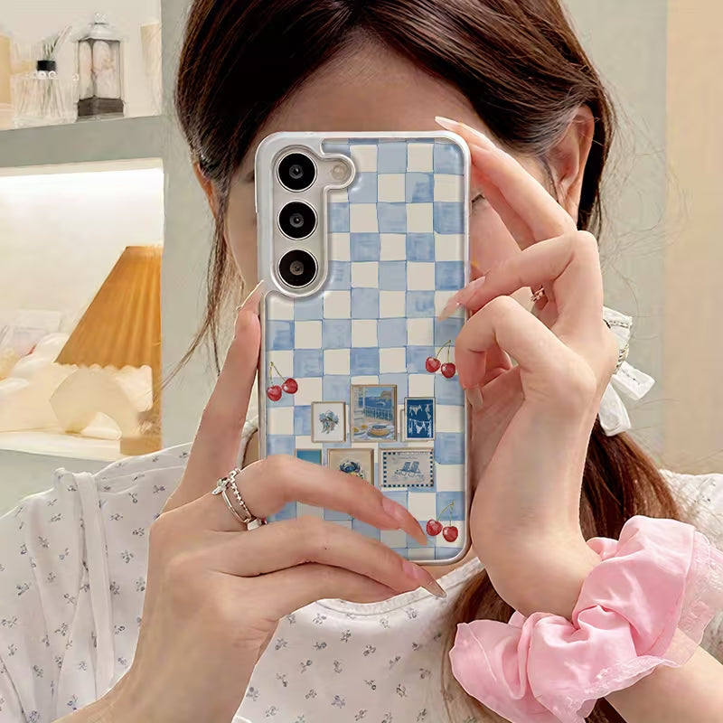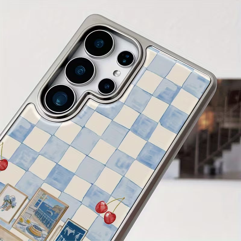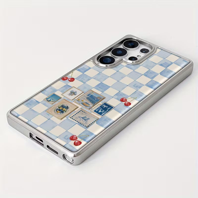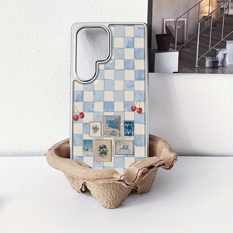Sweet Provençe captures a soft, nostalgic charm with its blue checkered backdrop, delicate cherry accents, and vintage postcard details. Inspired by sunny afternoons in the French countryside, this phone case blends cozy cottage aesthetics with timeless European elegance.