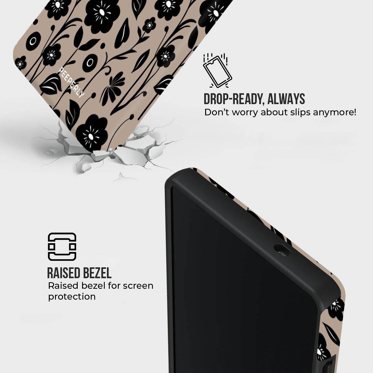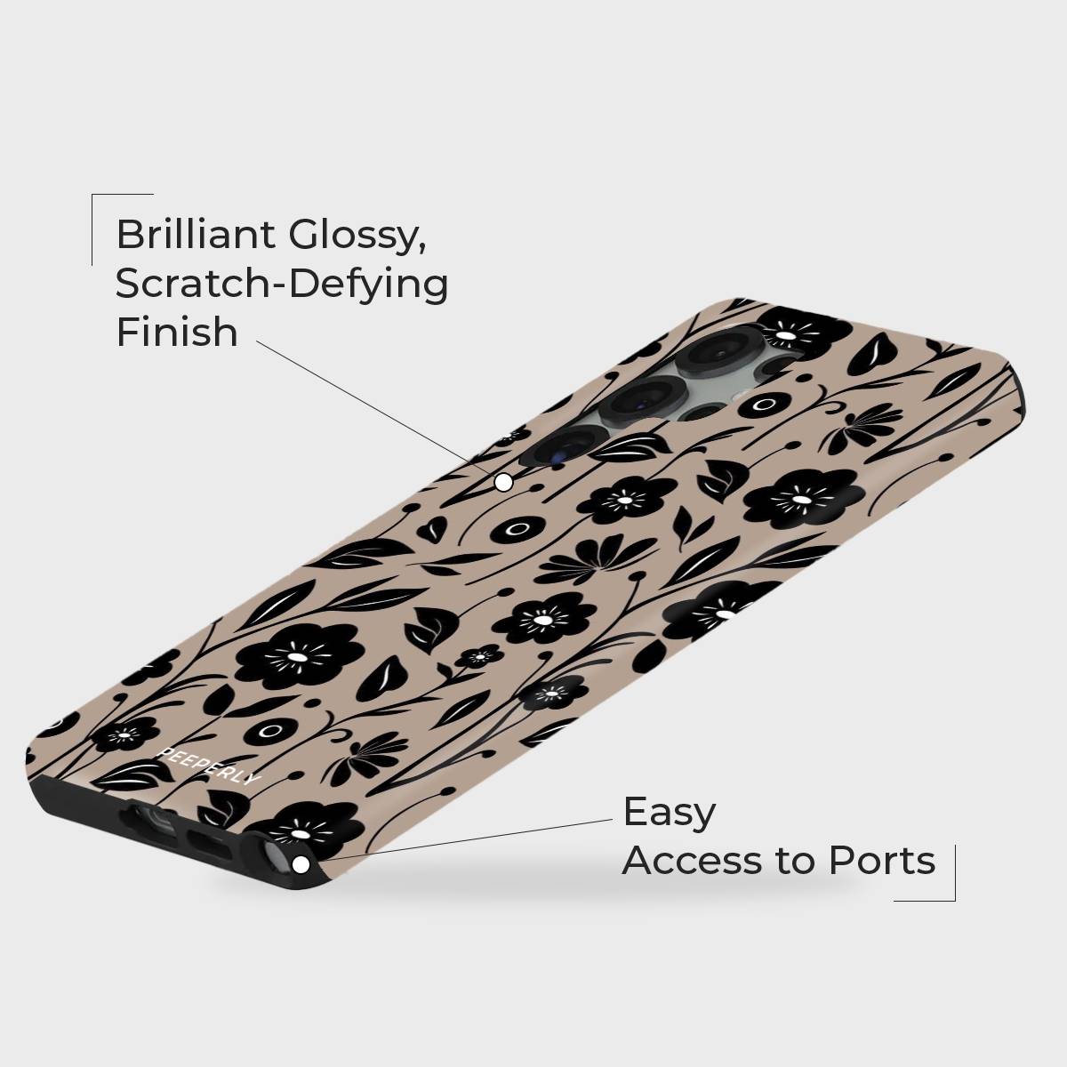 Step into subtle sophistication with Dusk & Petals, where timeless beauty meets modern minimalism. Featuring a delicate pattern of black florals against a soft, dusky beige backdrop, this design captures the quiet elegance of twilight blooms swaying in the evening breeze.