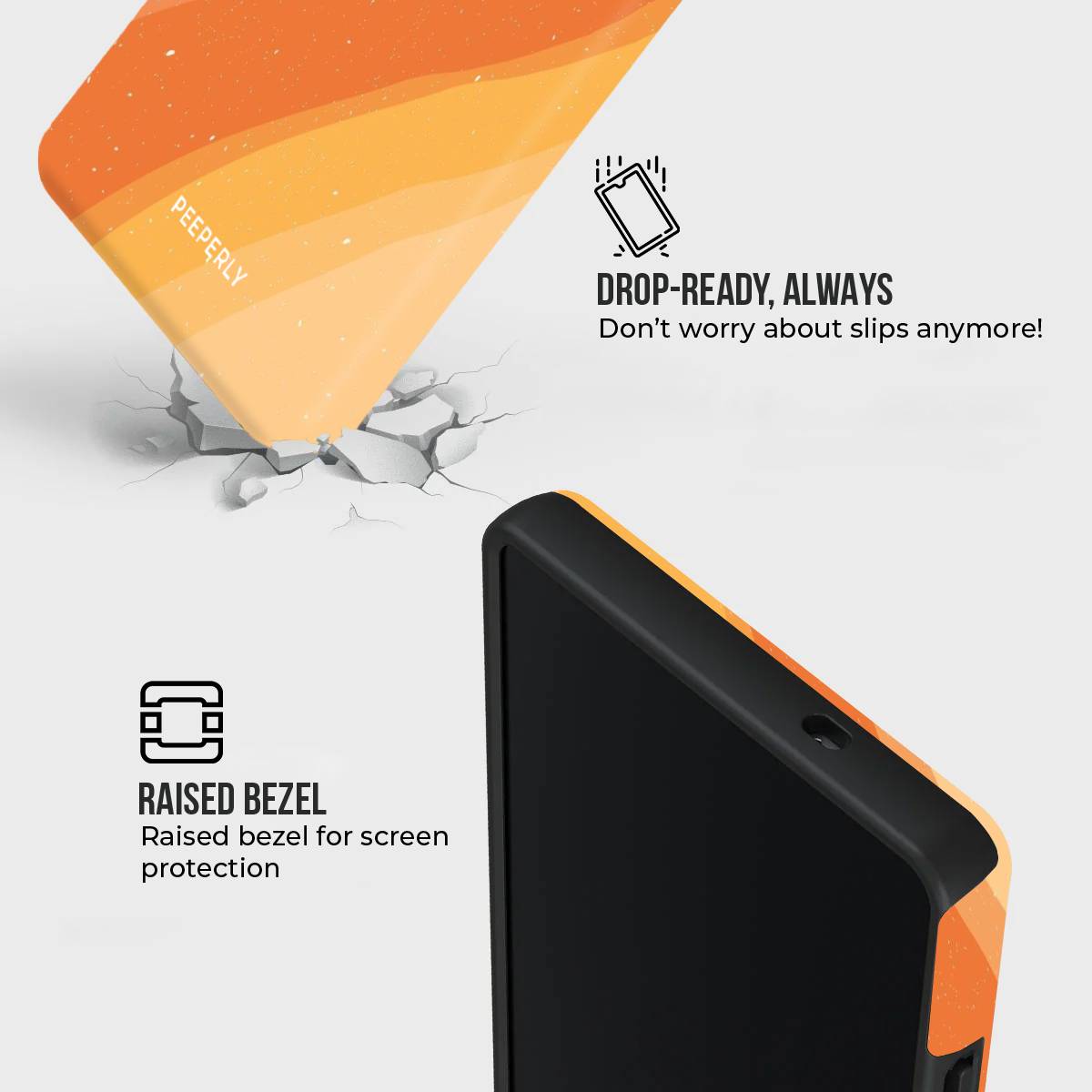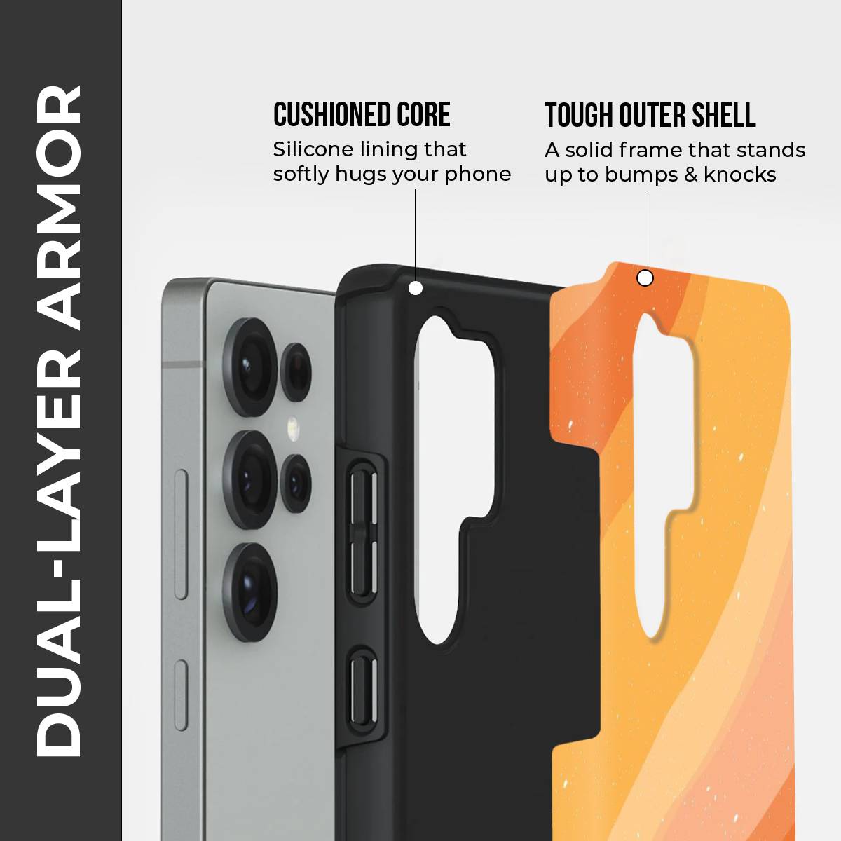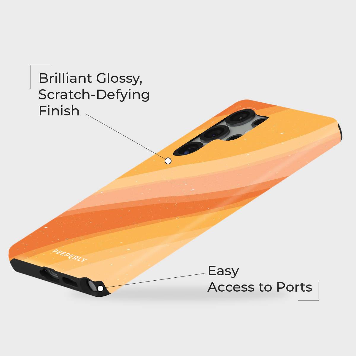 Sunset Waves captures the beauty of a golden horizon with its smooth gradient of warm orange tones flowing like gentle evening tides. Designed to bring a calming yet vibrant charm, this case mirrors the serene elegance of a sunset sky meeting the ocean waves. It’s not just a phone case—it’s a piece of art that radiates warmth and style.