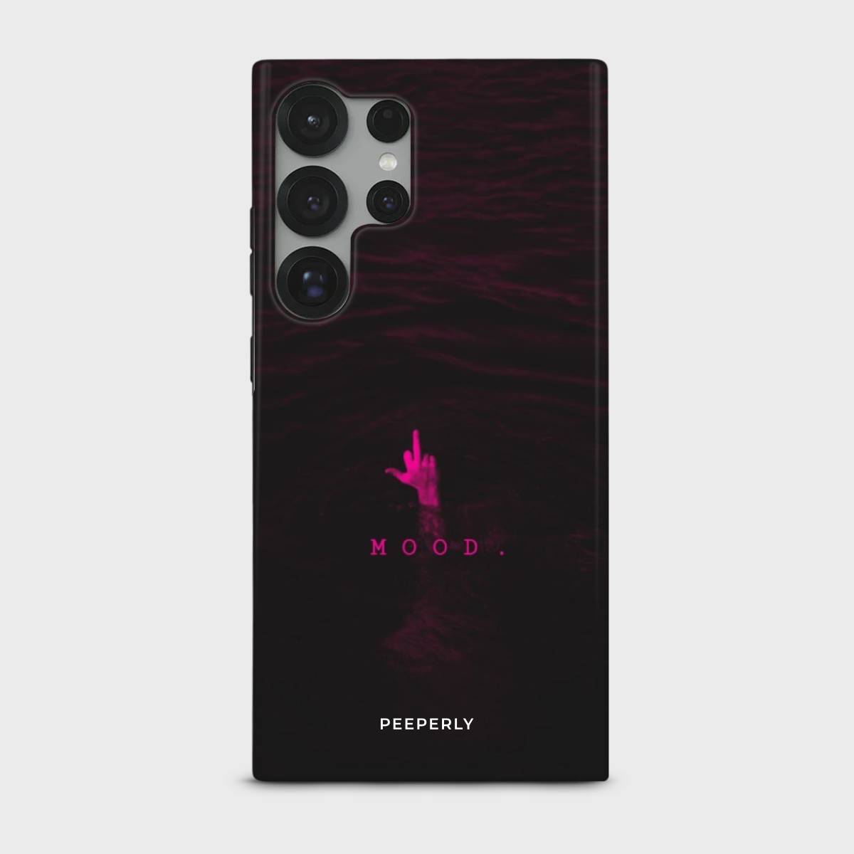 The "The Real Mood" phone case exudes a bold, edgy vibe with its dark and atmospheric design. Featuring a hand emerging from deep, mysterious waters, the case encapsulates the raw, unapologetic emotion of the modern mood.